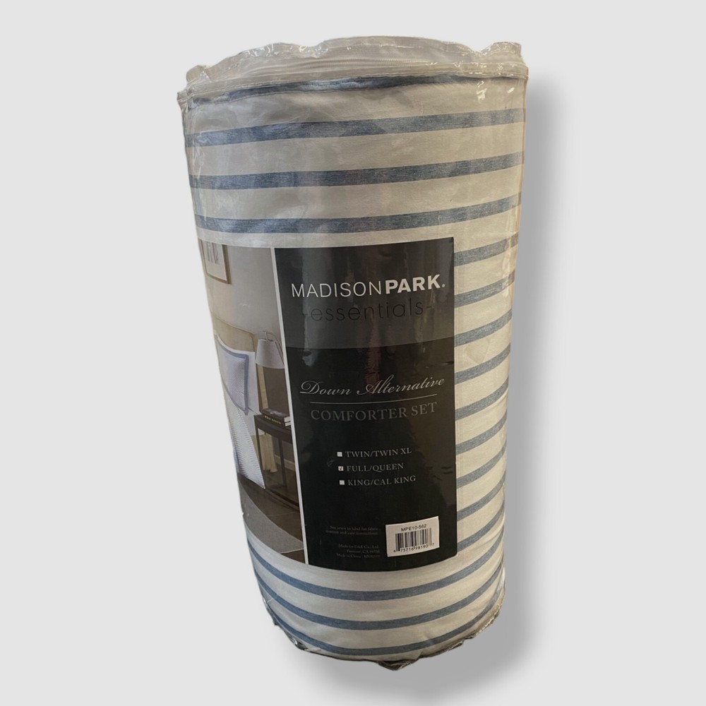 Madison Park Essentials Blue Hayden Reversible 3-Pc. Comforter Set, Full/Queen Description Set includes: comforter (90" x 90") and two standard shams (20" x 26") Down alternative fill in comforter Asian American & Pacific Islander Owned, Woman Owned Fabric: polyester; polyester fill Machine washable Imported About Us We sell only 100% authentic clothing from new with tags to gently used. We have a 100% authentic or money back guarantee on every item we sell. Items are listed daily so make sure to put us on your favorite! We have been in business for over 10 years selling tens of thousands of designer items. We strive to meet your designer needs at a quality price! Payment Shipping Returns Payment accepted via paypal, credit/debit card. Shipping is usually within 24 hours of purchase (M-F). Super fast service. Tracked delivery. 100% satisfaction guaranteed. Please review our eBay return policy for more details.
