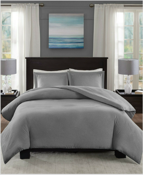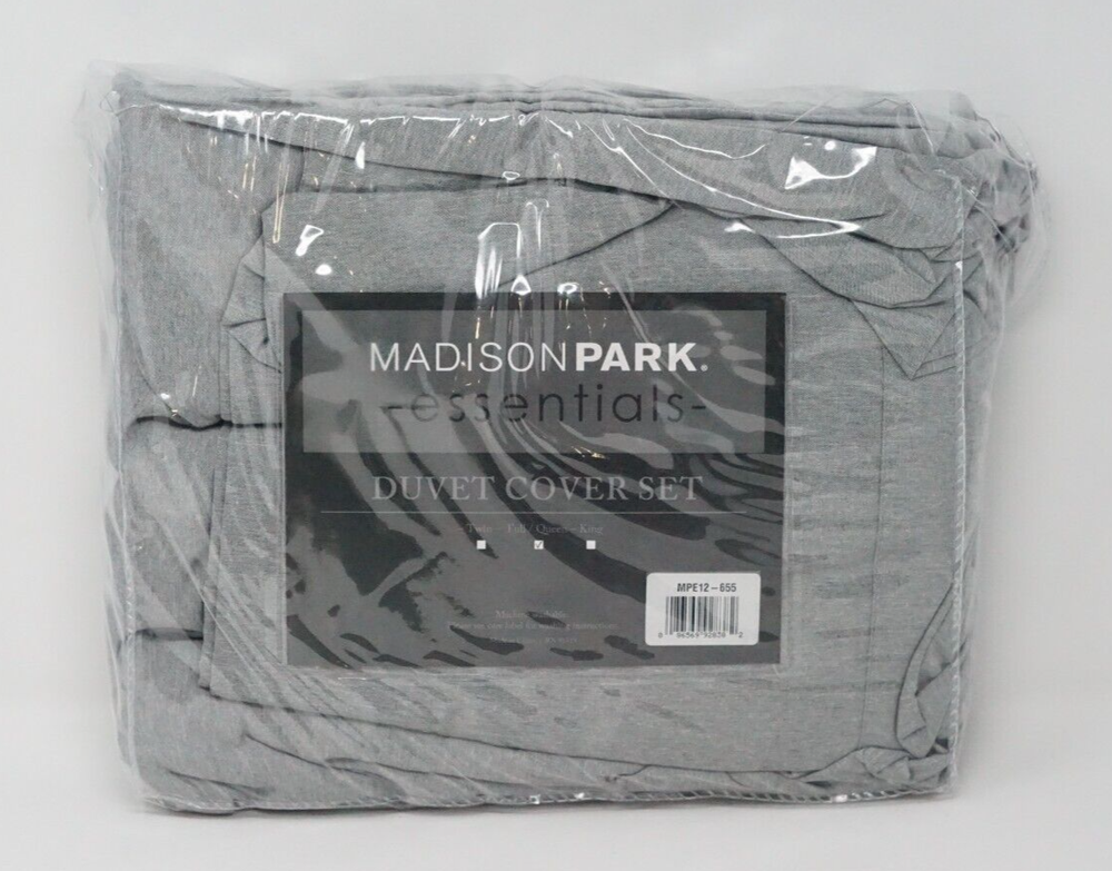 Brand New - Refolded Color: Grey Size: Full / Queen - 90" x 90" Set includes: duvet cover (90" x 90") and two standard shams (20" x 26") Update your bedroom with the handsome style of the Clay duvet cover set from Madison Park Essentials. The duvet and shams are yarn-dyed for a stylish casual look. ** Set includes: duvet cover (90" x 90") and two standard shams (20" x 26") ** Yarn-dyed ** Fabric: polyester 85 GSM ** Machine washable ** Imported