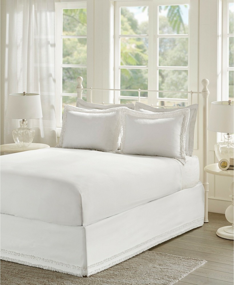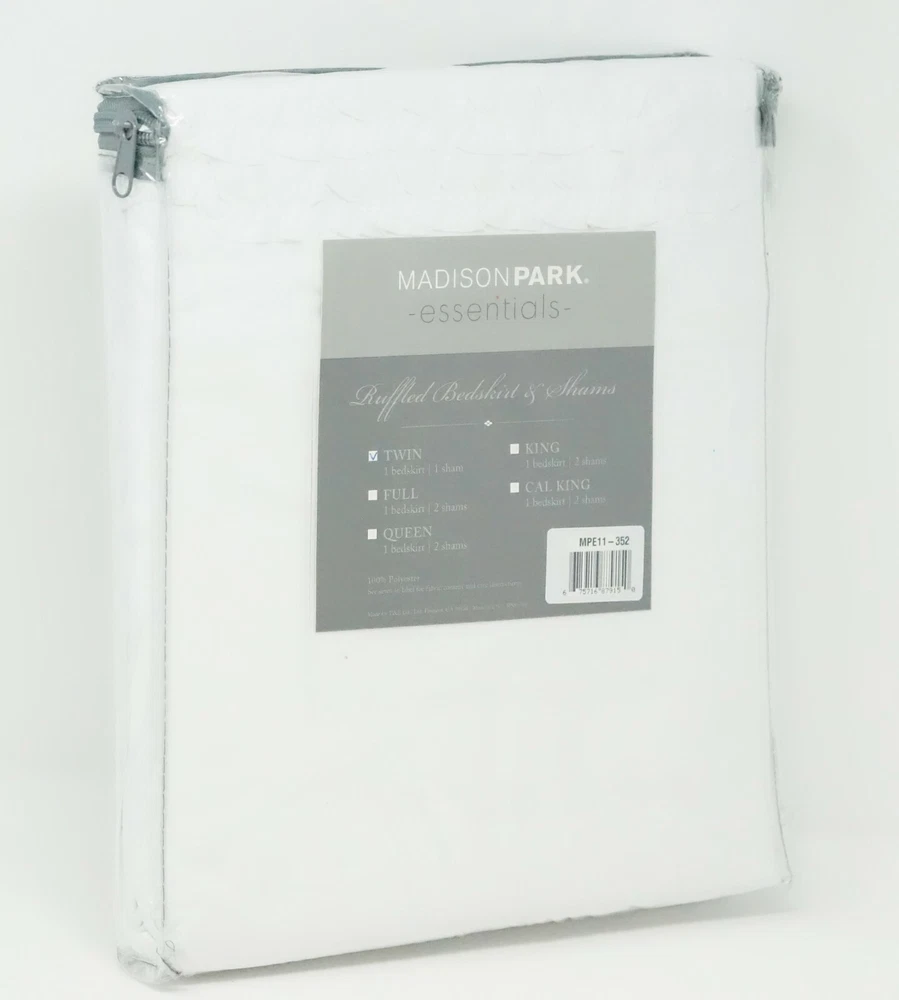Color: White Size: Twin The flirty ruffles on the bedskirt and shams create a shabby chic look that adds style to your room. The set includes bedskirt and sham and is machine washable for easy care. Bedskirt - 39" x 75" + 15", Standard Sham - 20" x 26" + 2" Includes - Bedskirt, Standard Sham Fabric Pattern - Solid 85GSM 85GSM, Polyester Microfiber Machine Washable Imported