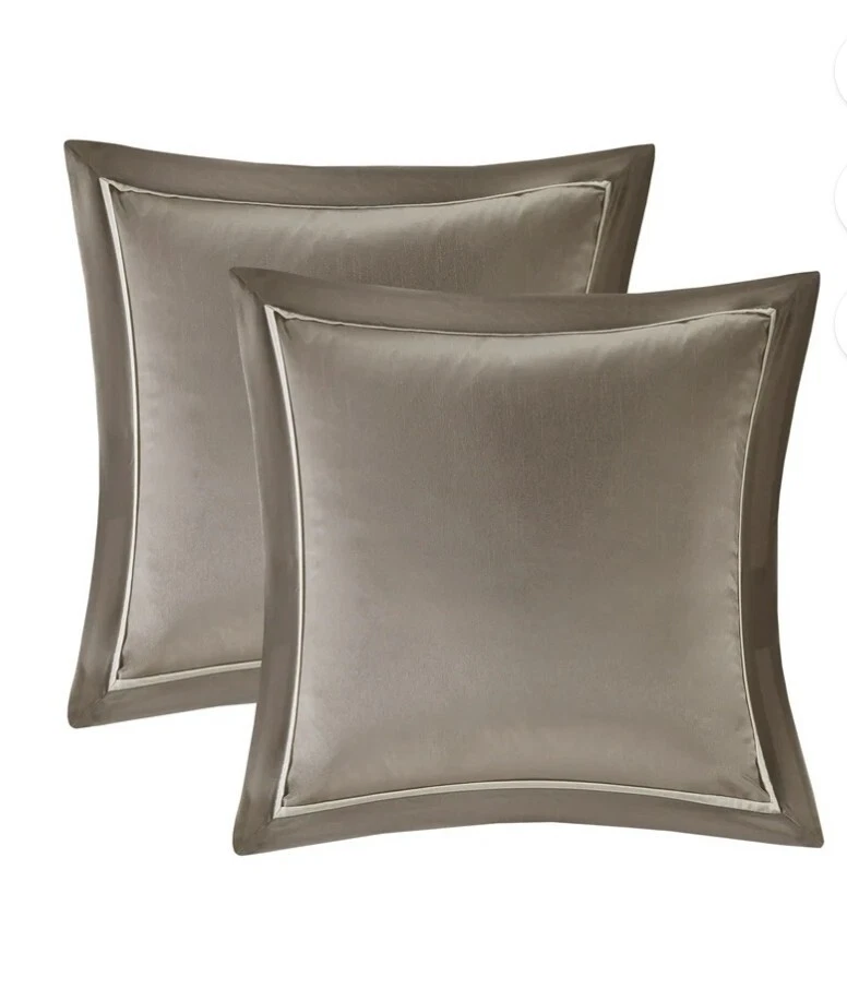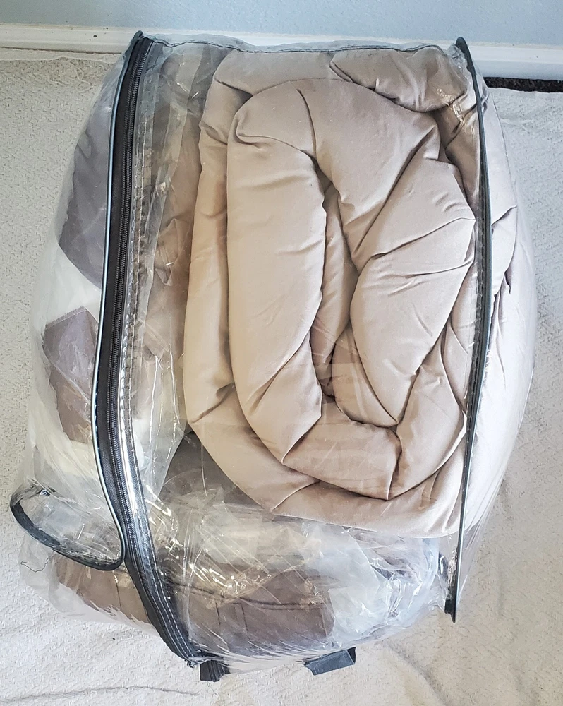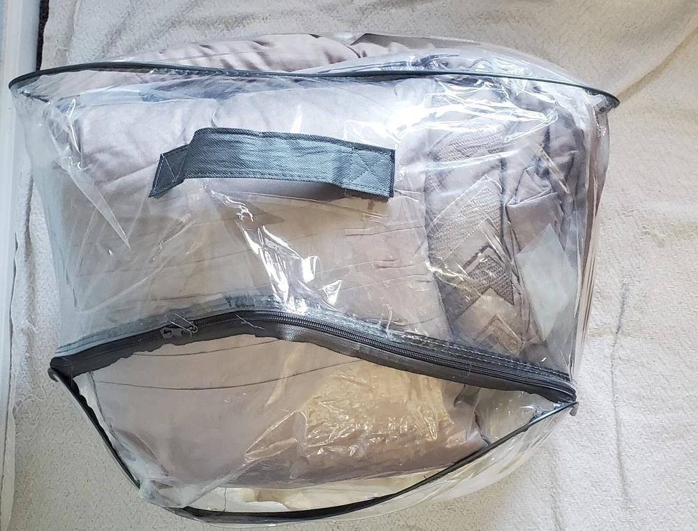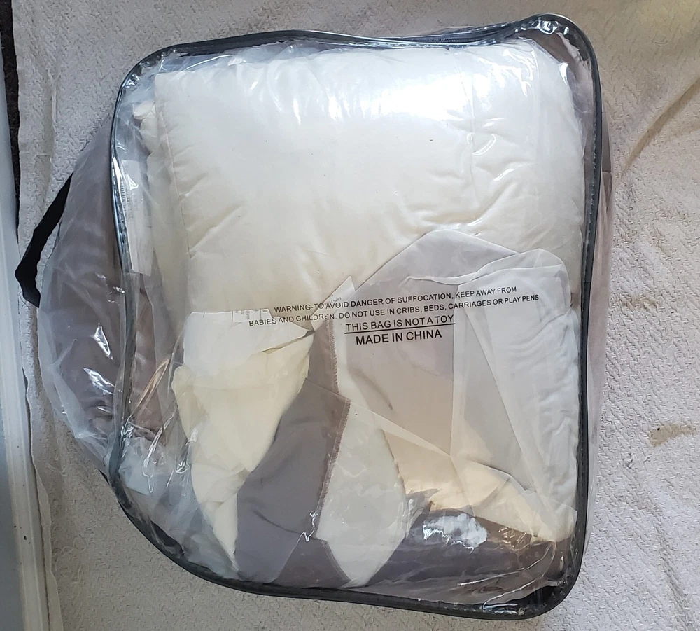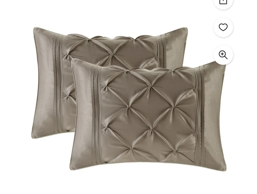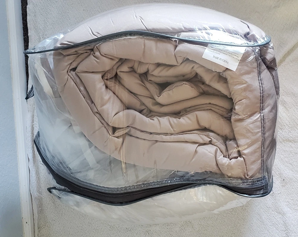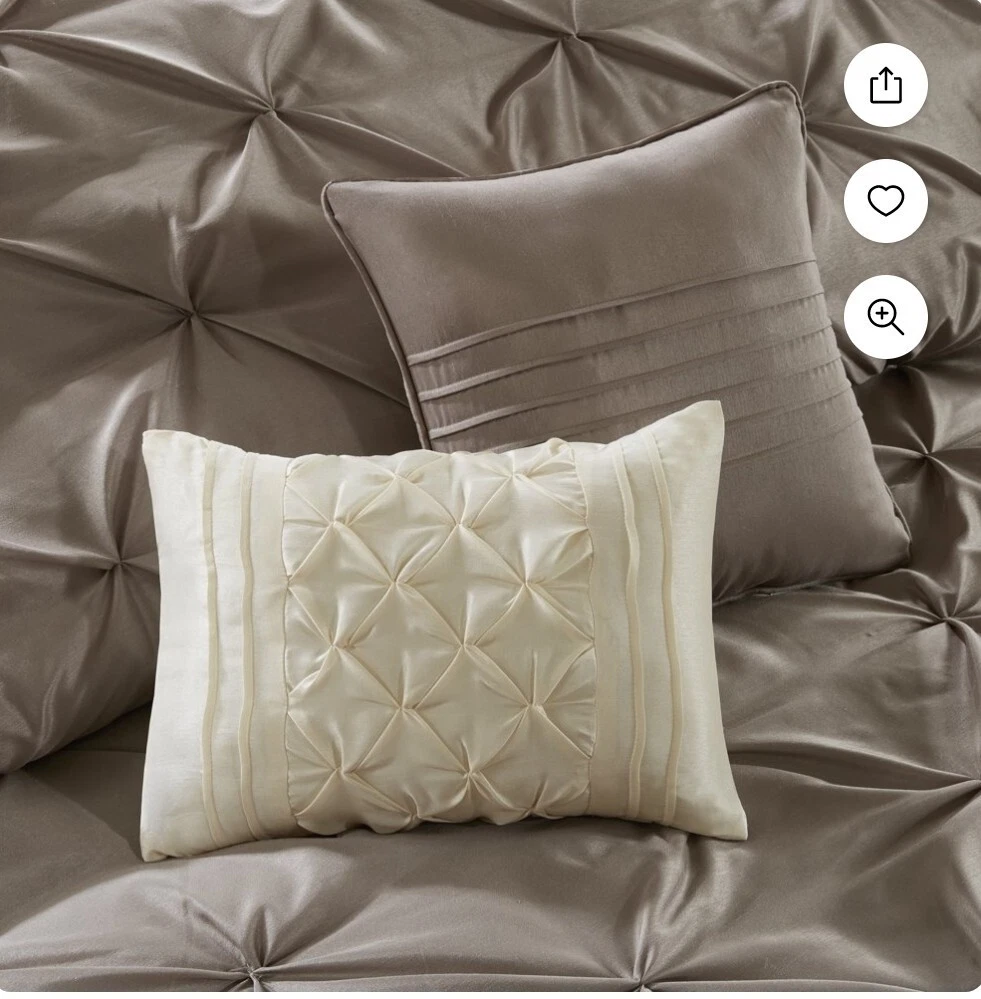 The Madison Park Essentials Joella 24 Piece Room In A Bag is a luxurious and complete bedding set in a beautiful beige color. This King-sized comforter set includes curtains, pillow shams, decorative pillows, fitted sheet, bed skirt, and flat sheet, all made of polyester material. The set is ideal for adults and perfect for winter season use in a bedroom. With its solid pattern and elegant design, this Madison Park set offers a convenient and stylish solution for dressing up a bedroom with a coordinated look. Bag coming apart, see pictures. New, taken out of bag and put back in