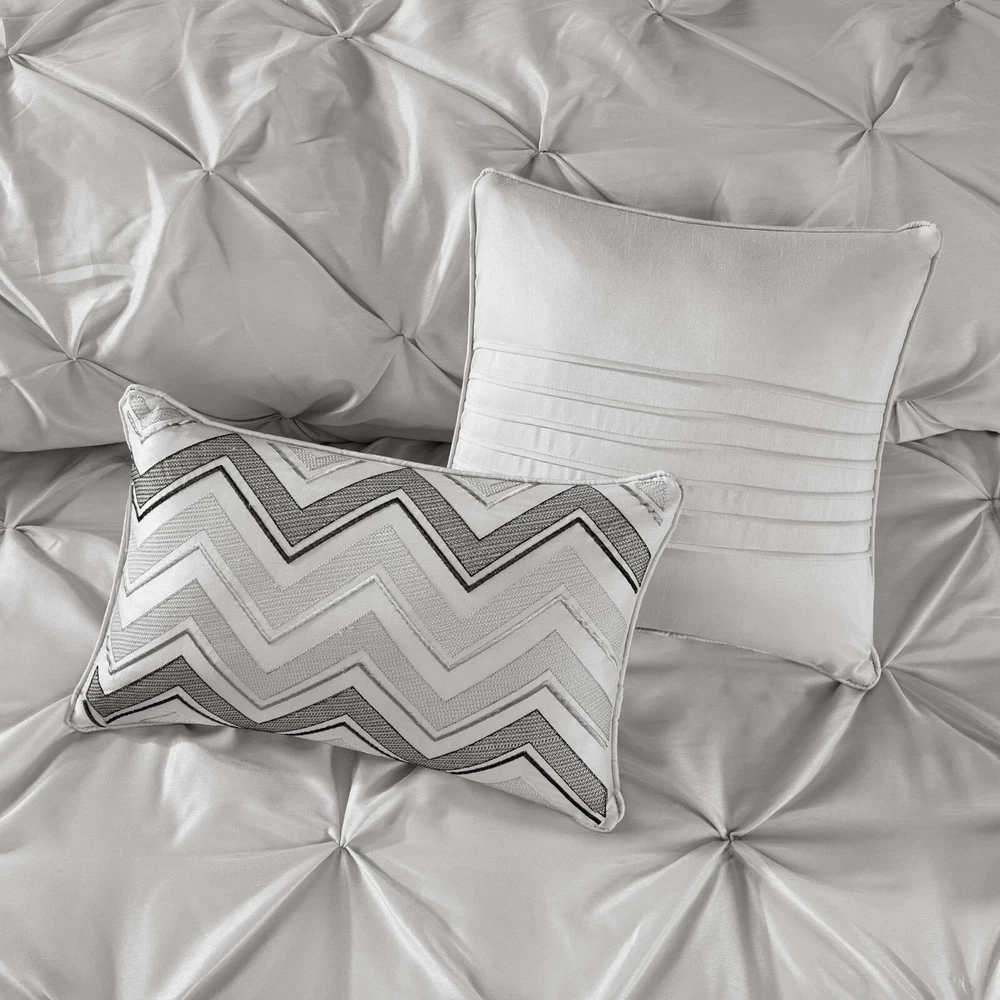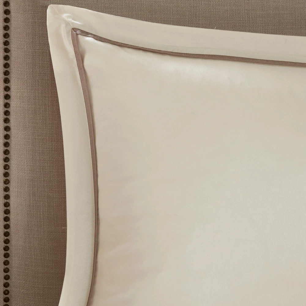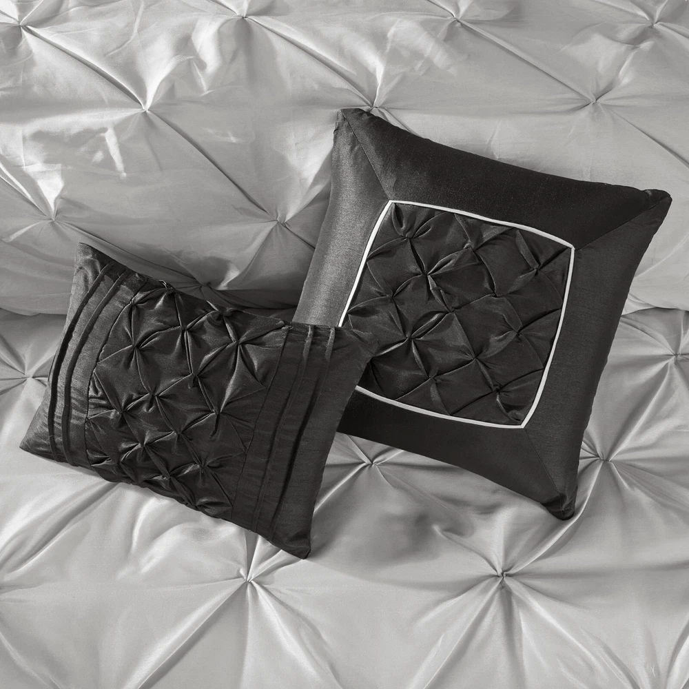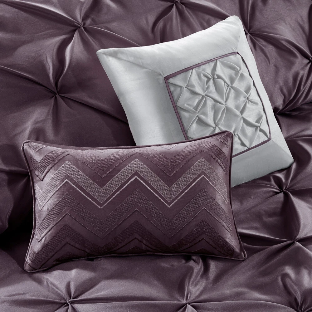 Store Categories Store Categories Bedding Comforters Decorative Pillows Duvet Covers Quilts & Coverlets Sheets Blankets & Throws Mattress Pads Pillows Home Decor Window Treatments Wall Art Home Accents Furniture Beds Dining Seating Ottomans & Benches Accent Chairs Accent Tables Dining Tables Sofas Bath Bath Robes Shower Curtains Towels Bath Rugs Bath Accessories Apparel Pajama Sets Nightgowns Rugs Rugs & Carpets Lighting Lamp Pendant Other Product Overview Details DESCRIPTION Invigorate your space with the Madison Park Essentials Joella 24 Piece Room in a Bag. The lavish tufted details flaunted on the comforter, shams, and window valances deliver an elegant statement in bold, natural hues. A large border frames the luxurious comforter, adding charm and dimension to the bedding set. Matching shams echo the motif seen on top of the bed, creating an elegant look in your space. An included microfiber sheet set and bed skirt complements the bedding collection and offers exceptional comfort and style. Two Euro shams and four embroidered decorative pillows help to complete the bedding set, giving it a finished look. Accompanying this bedroom set are four window panels with four tie backs to keep curtains drawn open, while two tufted valances provide the finishing touches to your bedroom. This bedding set may come in rolled or compressed packing and will need to be fluffed up. Use a steam iron to help remove wrinkles easier. FEATURES • Transitional 24 piece room in a bag features faux silk polyoni tufted with border frame • Set includes comforter, bedskirt, 2 shams, 2 square and 2 oblong decorative pillows, 2 euro shams, 4 piece sheet set, 4 window curtains, 4 tiebacks, 2 valances • Hypoallergenic polyester filling in the comforter and pillow (filling contains no allergens and is treated to be dustproof) • Each curtain panel is 42x84 inches with coordinating tieback and valance • 15" drop bedskirt • Fitted sheet fits up to 14 inches mattress depth (with additional 2 inch of stretch) • Decorative pillows have embroidery and pleating details • Solid coordinating Euro shams 26x26 with 2 inches flange • Machine washable for easy care; Spot Clean decorative pillow •Items in this set may come in rolled or compressed packaging and will need to be fluffed up MATERIAL Polyoni Comforter and Shams, 100% Polyester Filling; Polyoni Bedskirt, Pillows, and Euro Shams, Soft Brushed Microfiber Sheets, Polyoni Window Set Available Sizes: Queen Comforter Set includes: 1 Comforter: 90"W x 90"L 2 Standard Shams: 20"W x 26"L 1 Bedskirt: 60"W x 80"L + 15"D 2 Euro Shams: 26"W x 26"L + 2"D 1 Flat Sheet: 90"W x 102"L 2 Standard Pillowcases: 20"W x 30"L 1 Fitted Sheet: 60"W x 80"L + 14"D 4 Window Panels: 42"W x 84"L 4 Tie Backs: 4"W x 23"L 2 Valances: 54"W x 18"L 1 Decorative Pillow: 16"W x 16"L 1 Decorative Pillow: 12"W x 18"L 1 Decorative Pillow: 18"W x 18"L 1 Decorative Pillow: 12"W x 16"L King Comforter Set includes: 1 Comforter: 104"W x 92"L 2 King Shams: 20"W x 36"L 1 Bedskirt: 78"W x 80"L + 15"D 2 Euro Shams: 26"W x 26"L + 2"D 1 Flat Sheet: 108"W x 102"L 2 King Pillowcases: 20"W x 40"L 1 Fitted Sheet: 78"W x 80"L + 14"D 4 Window Panels: 42"W x 84"L 4 Tie Backs: 4"W x 23"L 2 Valances: 54"W x 18"L 1 Decorative Pillow: 16"W x 16"L 1 Decorative Pillow: 12"W x 18"L 1 Decorative Pillow: 18"W x 18"L 1 Decorative Pillow: 12"W x 16"L California King Comforter Set includes: 1 Comforter: 104"W x 92"L 2 King Shams: 20"W x 36"L 1 Bedskirt: 72"W x 84"L + 15"D 2 Euro Shams: 26"W x 26"L + 2"D 1 Flat Sheet: 108"W x 102"L 2 King Pillowcases: 20"W x 40"L 1 Fitted Sheet: 72"W x 84"L + 14"D 4 Window Panels: 42"W x 84"L 4 Tie Backs: 4"W x 23"L 2 Valances: 54"W x 18"L 1 Decorative Pillow: 16"W x 16"L 1 Decorative Pillow: 12"W x 18"L 1 Decorative Pillow: 18"W x 18"L 1 Decorative Pillow: 12"W x 16"L Bedding Comforters Decorative Pillows Duvet Covers Quilts & Coverlets Sheets Blankets & Throws Mattress Pads Pillows Home Decor Window Treatments Wall Art Home Accents Furniture Beds Dining Seating Ottomans & Benches Accent Chairs Accent Tables Dining Tables Sofas Bath Bath Robes Shower Curtains Towels Bath Rugs Bath Accessories Rugs Rugs & Carpets Lighting Lamp Pendant Product Overview Product Details DESCRIPTION Invigorate your space with the Madison Park Essentials Joella 24 Piece Room in a Bag. The lavish tufted details flaunted on the comforter, shams, and window valances deliver an elegant statement in bold, natural hues. A large border frames the luxurious comforter, adding charm and dimension to the bedding set. Matching shams echo the motif seen on top of the bed, creating an elegant look in your space. An included microfiber sheet set and bed skirt complements the bedding collection and offers exceptional comfort and style. Two Euro shams and four embroidered decorative pillows help to complete the bedding set, giving it a finished look. Accompanying this bedroom set are four window panels with four tie backs to keep curtains drawn open, while two tufted valances provide the finishing touches to your bedroom. This bedding set may come in rolled or compressed packing and will need to be fluffed up. Use a steam iron to help remove wrinkles easier. FEATURES • Transitional 24 piece room in a bag features faux silk polyoni tufted with border frame • Set includes comforter, bedskirt, 2 shams, 2 square and 2 oblong decorative pillows, 2 euro shams, 4 piece sheet set, 4 window curtains, 4 tiebacks, 2 valances • Hypoallergenic polyester filling in the comforter and pillow (filling contains no allergens and is treated to be dustproof) • Each curtain panel is 42x84 inches with coordinating tieback and valance • 15" drop bedskirt • Fitted sheet fits up to 14 inches mattress depth (with additional 2 inch of stretch) • Decorative pillows have embroidery and pleating details • Solid coordinating Euro shams 26x26 with 2 inches flange • Machine washable for easy care; Spot Clean decorative pillow •Items in this 