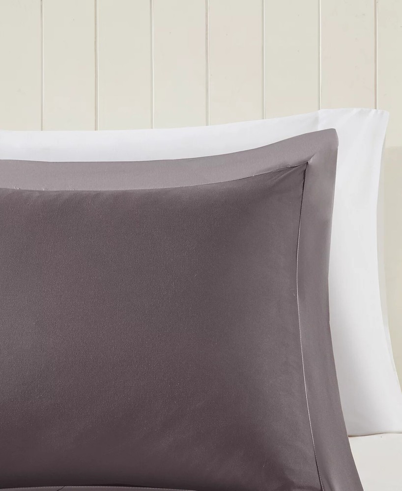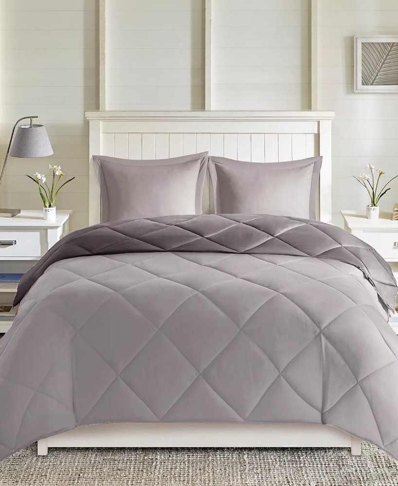Madison Park Essentials Larkspur Reversible 3-Pc. Comforter Set - King/Cal King, Charcoal/Grey Product Details: Brand: Madison Park Essentials Model: Larkspur Reversible Comforter Set Color: Charcoal/Grey Size: King/Cal King Material: Premium Microfiber and Polyester Pattern: Solid Includes: Comforter and Two Pillow Shams Features: Breathable, Hypoallergenic, Antimicrobial Treatment, Down Alternative Fill, Machine Washable, Reversible Design Certification: STANDARD 100 by OEKO-TEX Description: Experience the comfort and versatility of the Madison Park Essentials Larkspur Reversible 3-Pc. Comforter Set, tailored for King/Cal King beds. This contemporary set includes a comforter and two pillow shams, all crafted from premium microfiber and polyester materials that promise breathability and hypoallergenic properties. The charcoal and grey hues offer a sleek, versatile look that seamlessly blends with any bedroom decor. Designed for all-season use, the comforter set features a down alternative fill that provides year-round insulation. The antimicrobial treatment ensures the set remains odor-neutralizing for a healthy sleep environment. For ease of care, this machine-washable set is also reversible, doubling your design options. Certified by STANDARD 100 by OEKO-TEX, this set is a responsible choice for your bedding needs.