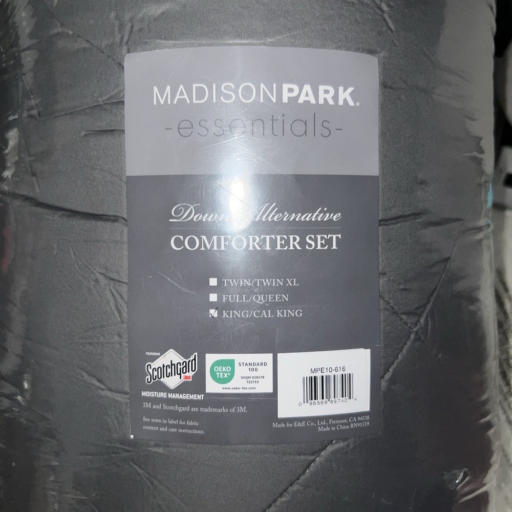 Soft and cozy, the Larkspur comforter set from Madison Park Essentials will make you never want to get out of bed. The comforter is made from ultra-soft fabric and features 3M stain resistant treatment that helps release stains easily. The down alternative filling provides extra warmth and softness, while the diamond quilting prevents it from shifting out of place. Completely reversible, the matching shams coordinate beautifully with the comforter and come with a hidden closure for a crisp finished look. Machine washable for easy care, this comforter set is perfect for staying warm throughout the night. Set includes: comforter (102" x 90") and two king shams (20" x 36") Down alternative fill in comforter Asian American & Pacific Islander Owned, Woman Owned Fabric: polyester/ fill: polyester Machine washable Imported