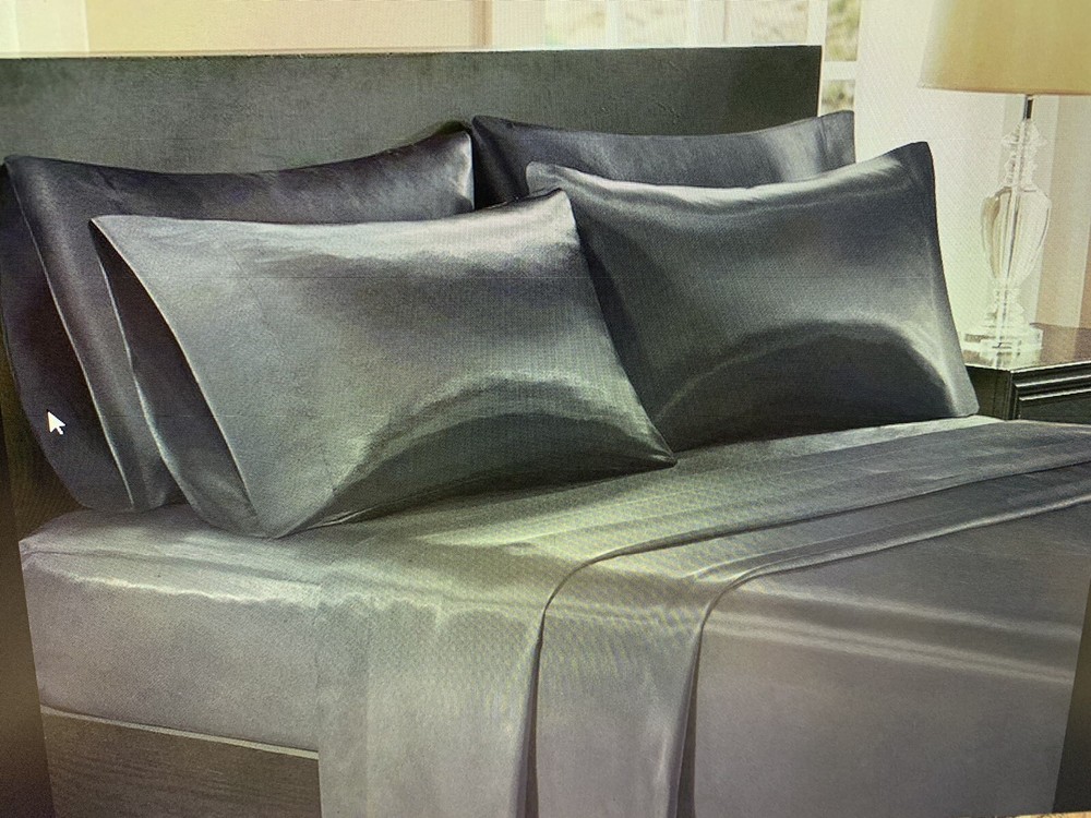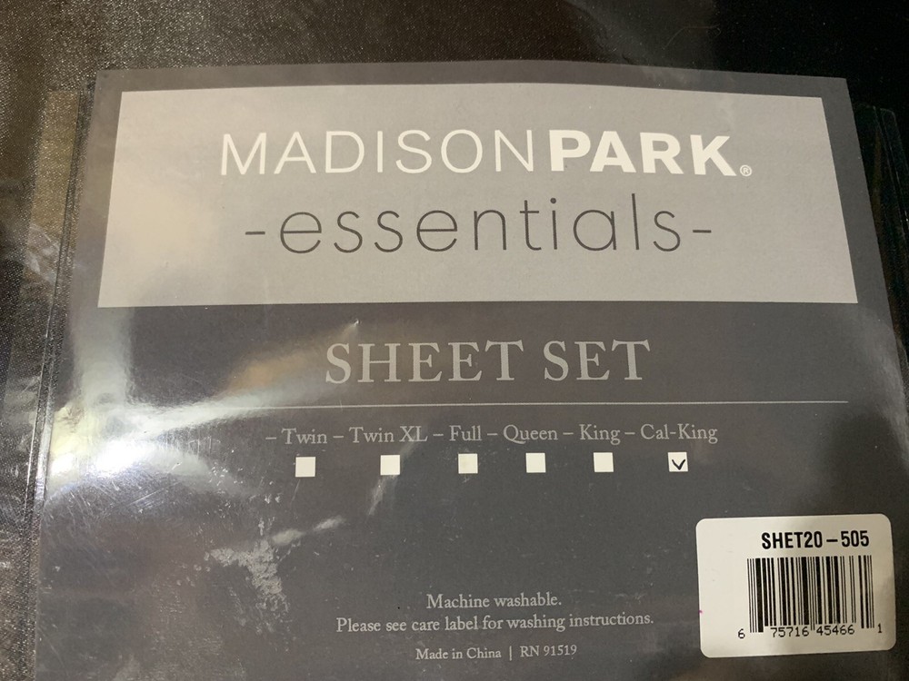 Madison Park Essentials Luxury 6pc Satin sheet Set Cal King - Wrinkle Free Includes: 1 Flat Sheet 108" x 102" 4 Pillow cases 20" x 40" 1 Fitted Sheet 72" x 84" 100 % Polyester Photos are of the actual item. Refunds are offered within 14 days if the product is misrepresented or defective. Return shipping for these items will be paid by us, but if buyer decides that does not want the item and would like to return it, buyer pays the return shipping cost and original shipping cost. Before a return can be process pictures of the item must be provided to seller before buyer ships the item. Item returned must be the same item shipped as identified by serial number or special UV/permanent markings and item must not been installed or used in any way. All non defective items returned could be subject to a 25% restocking fee. When returning an item, it must be in all of the original packaging and include all of the original accessories or items that came with it. The item and package should be in original and perfect condition.