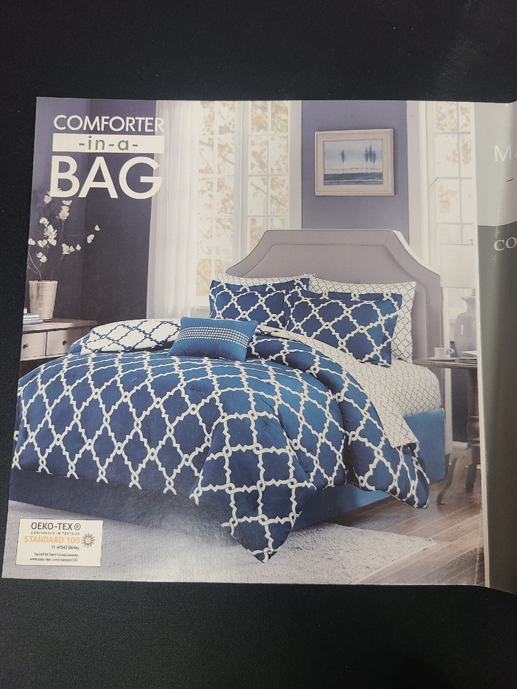 New Open Box Madison Park Essentials MPE10-091 Essentials Merritt Complete Bed and Sheet Set Queen 9 Piece Set Navy Box a little dirty from lost freight Ships in 2 business days Thanks for supporting ...