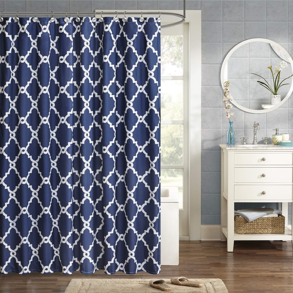 Madison Park Essentials Merritt Shower Curtain, Navy DAMAGED PACKAGING For a simple yet modern update to your bathroom, the Madison Park Essentials Merritt shower curtain is perfect for you. Several fresh colors are available for background to update your space while the classic fretwork design uses white to pop this pattern. Various sizes are available to fit any bathroom space. Features white blue patterned fabrics long size bath drapes farmhouse hotel spa family girls boys men baby kids women bathrooms luxury design pattern thick woven panel bright multicolor best quality machine washable decorative elegent material unique designs without hook Details Fast Free Shipping We get your order shipped out within 1-business day and delivered to your doorstep as quickly as possible with free shipping. Competitive Pricing With our dynamic pricing model, our prices are always competitive. Our prices are some of the lowest that you will find on the internet. Rest assured that you're getting a good deal when purchasing with us. 30-day Money Back Guarantee We are committed to making sure that you leave this transaction satisfied. If you're unhappy with the product for any reason, you may return it back for your money-back or a replacement within 30 days. No questions asked!
