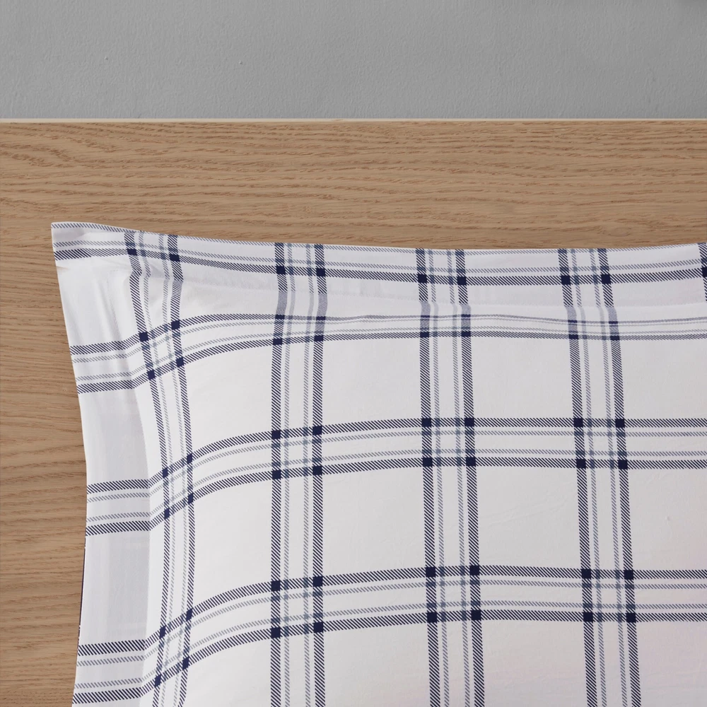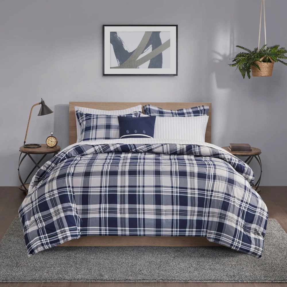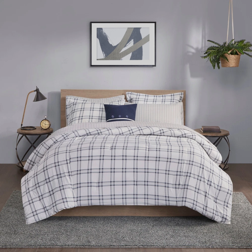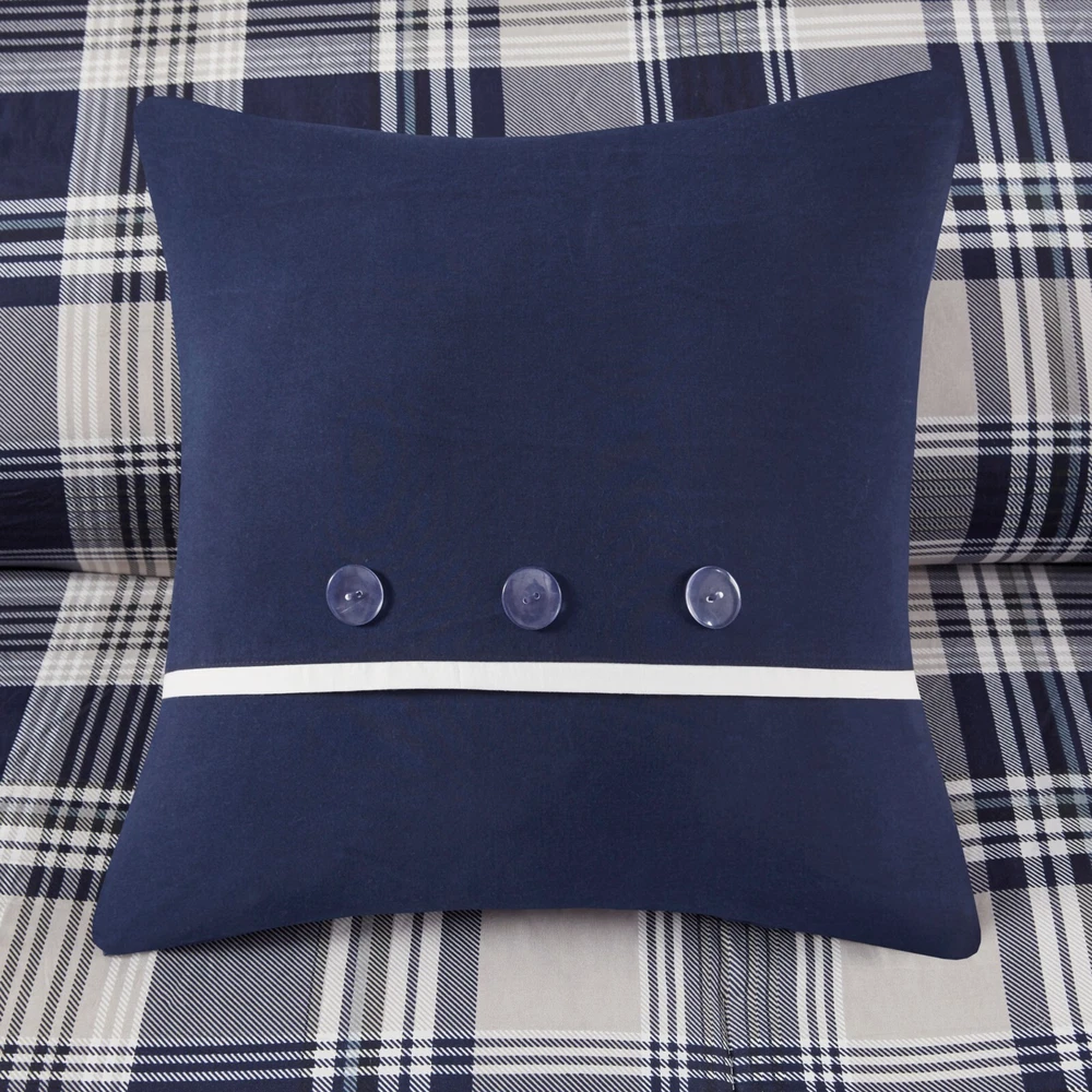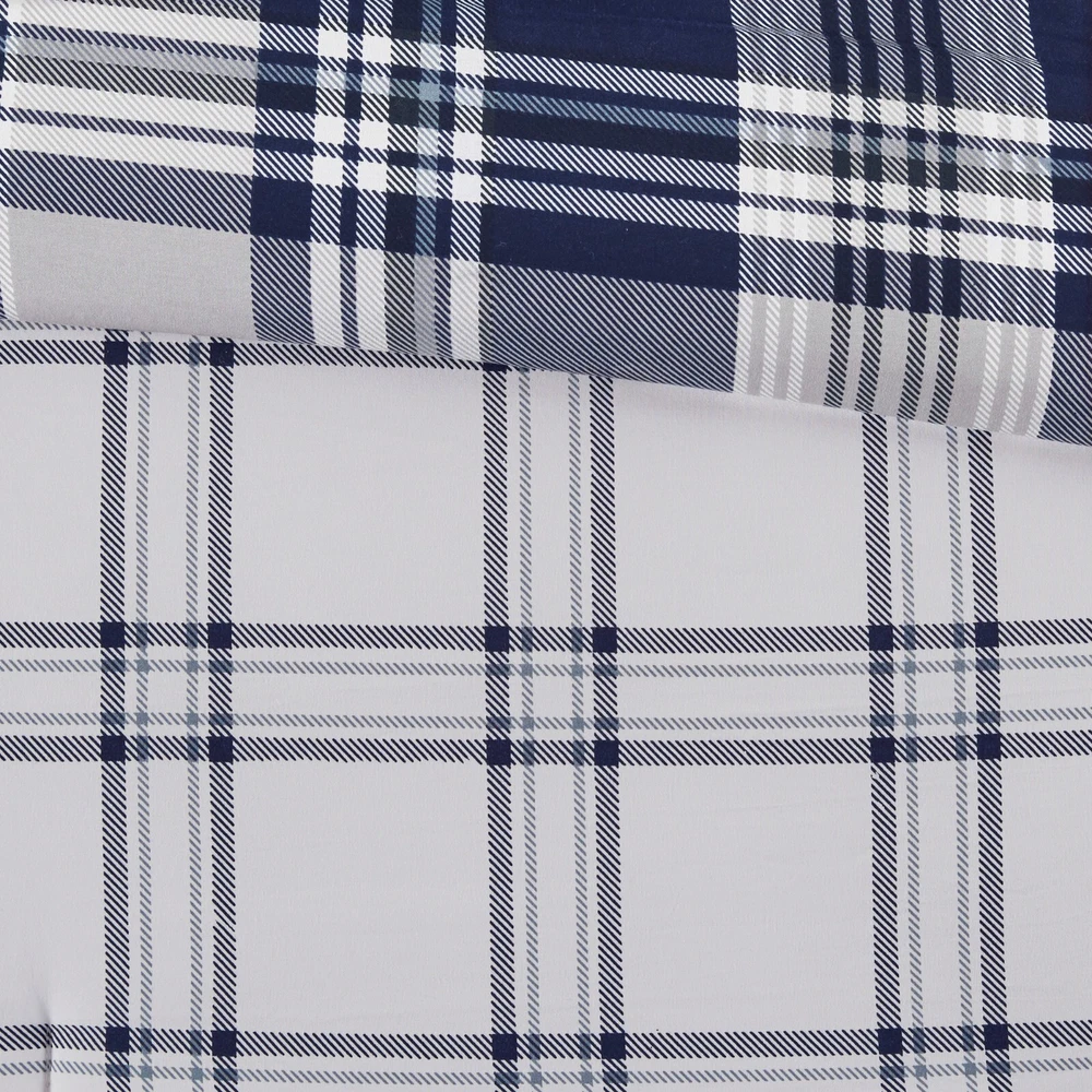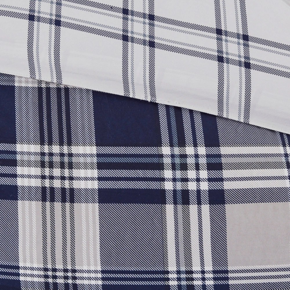 Store Categories Store Categories Bedding Comforters Decorative Pillows Duvet Covers Quilts & Coverlets Sheets Blankets & Throws Mattress Pads Pillows Home Decor Window Treatments Wall Art Home Accents Furniture Beds Dining Seating Ottomans & Benches Accent Chairs Accent Tables Dining Tables Sofas Bath Bath Robes Shower Curtains Towels Bath Rugs Bath Accessories Apparel Pajama Sets Nightgowns Rugs Rugs & Carpets Lighting Lamp Pendant Other Product Overview Details DESCRIPTION Restyle your bedroom with the Madison Park Essentials Patrick Reversible Comforter Set with Sheet Set. The reversible comforter and shams (1 in Twin Sizes) feature a navy plaid print on the face and a white plaid print on the reverse, for a charming casual look. A coordinating square decorative pillow adds a finishing touch to the comforter. Also included is a grey sheet set, complete with a flat sheet, fitted sheet, and 2 pillowcases (1 for Twin Sizes). Bringing the best in health and wellness, this bedding set also features an anti-microbial treatment that provides built-in freshness protection, reducing the growth of odor causing bacteria and keeps fabric lasting longer. This bedding set is also OEKO-TEX certified, meaning it does not contain any harmful substances or chemicals, ensuring quality comfort and wellness. This bedding set may come in rolled or compressed packing and will need to be fluffed up. Use a steam iron to help remove wrinkles easier. FEATURES • Reversible comforter set with bed sheets • SUPER VALUE - Plaid print on both sides in different colorways • Set includes comforter, 2 shams (1 in Twin), flat sheet, fitted sheet, 2 pillowcases (1 in Twin), 1 decorative pillow • Hypoallergenic polyester filling in the comforter and pillows (filling contains no allergens and is treated to be dustproof) • Fitted sheet fits up to a 14-inch (12-inch in Twin size) mattress • Features an anti-microbial treatment for odor and bacteria control, which enhances hygiene and keeps the fabric fresher, longer • OEKO-TEX certified, meaning it has no harmful substances or chemicals for quality comfort and wellness • Items in this set may come in rolled or compressed packaging and will need to be fluffed up • Machine Washable and steam iron for wrinkle removal MATERIAL Soft brushed microfiber print comforter and shams, 6oz/sqyd poly fill ; 100% polyester micro fiber sheets Available Sizes: Twin Comforter Set includes: 1 Comforter: 68"W x 86"L 1 Standard Sham: 20"W x 26"L + 2"D 1 Flat Sheet: 66"W x 96"L 1 Fitted Sheet: 39"W x 75"L + 12"D 1 Standard Pillowcase: 20"W x 30"L 1 Decorative Pillow: 16"W x 16"L Full Comforter Set includes: 1 Comforter: 78"W x 86"L 2 Standard Shams: 20"W x 26"L + 2"D 1 Flat Sheet: 81"W x 96"L 1 Fitted Sheet: 54"W x 75"L + 14"D 2 Standard Pillowcases: 20"W x 30"L 1 Decorative Pillow: 16"W x 16"L Queen Comforter Set includes: 1 Comforter: 90"W x 90"L 2 Standard Shams: 20"W x 26"L + 2"D 1 Flat Sheet: 90"W x 102"L 1 Fitted Sheet: 60"W x 80"L + 14"D 2 Standard Pillowcases: 20"W x 30"L 1 Decorative Pillow: 16"W x 16"L King Comforter Set includes: 1 Comforter: 104"W x 92"L 2 King Shams: 20"W x 36"L + 2"D 1 Flat Sheet: 108"W x 102"L 1 Fitted Sheet: 78"W x 80"L + 14"D 2 King Pillowcases: 20"W x 40"L 1 Decorative Pillow: 16"W x 16"L California King Comforter Set includes: 1 Comforter: 104"W x 92"L 2 King Shams: 20"W x 36"L + 2"D 1 Flat Sheet: 108"W x 102"L 1 Fitted Sheet: 72"W x 84"L + 14"D 2 King Pillowcases: 20"W x 40"L 1 Decorative Pillow: 16"W x 16"L Bedding Comforters Decorative Pillows Duvet Covers Quilts & Coverlets Sheets Blankets & Throws Mattress Pads Pillows Home Decor Window Treatments Wall Art Home Accents Furniture Beds Dining Seating Ottomans & Benches Accent Chairs Accent Tables Dining Tables Sofas Bath Bath Robes Shower Curtains Towels Bath Rugs Bath Accessories Rugs Rugs & Carpets Lighting Lamp Pendant Product Overview Product Details DESCRIPTION Restyle your bedroom with the Madison Park Essentials Patrick Reversible Comforter Set with Sheet Set. The reversible comforter and shams (1 in Twin Sizes) feature a navy plaid print on the face and a white plaid print on the reverse, for a charming casual look. A coordinating square decorative pillow adds a finishing touch to the comforter. Also included is a grey sheet set, complete with a flat sheet, fitted sheet, and 2 pillowcases (1 for Twin Sizes). Bringing the best in health and wellness, this bedding set also features an anti-microbial treatment that provides built-in freshness protection, reducing the growth of odor causing bacteria and keeps fabric lasting longer. This bedding set is also OEKO-TEX certified, meaning it does not contain any harmful substances or chemicals, ensuring quality comfort and wellness. This bedding set may come in rolled or compressed packing and will need to be fluffed up. Use a steam iron to help remove wrinkles easier. FEATURES • Reversible comforter set with bed sheets • SUPER VALUE - Plaid print on both sides in different colorways • Set includes comforter, 2 shams (1 in Twin), flat sheet, fitted sheet, 2 pillowcases (1 in Twin), 1 decorative pillow • Hypoallergenic polyester filling in the comforter and pillows (filling contains no allergens and is treated to be dustproof) • Fitted sheet fits up to a 14-inch (12-inch in Twin size) mattress • Features an anti-microbial treatment for odor and bacteria control, which enhances hygiene and keeps the fabric fresher, longer • OEKO-TEX certified, meaning it has no harmful substances or chemicals for quality comfort and wellness • Items in this set may come in rolled or compressed packaging and will need to be fluffed up • Machine Washable and steam iron for wrinkle removal MATERIAL Soft brushed microfiber print comforter and shams, 6oz/sqyd poly fill ; 100% polyester micro fiber sheets Available Sizes: Twin Comforter Set includes: 1 Comforter: 68"W x 86"L 1 Standard Sham: 20"W x 26"L + 2"D 1 Flat Sheet: 66"W x 96"L 1 Fitted Shee
