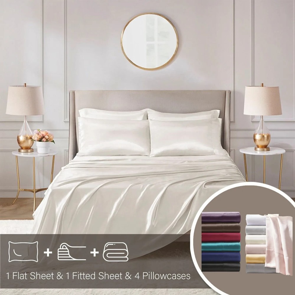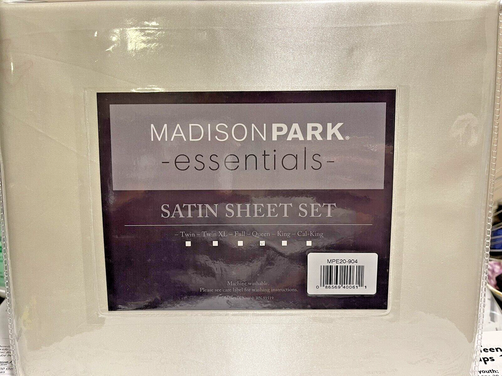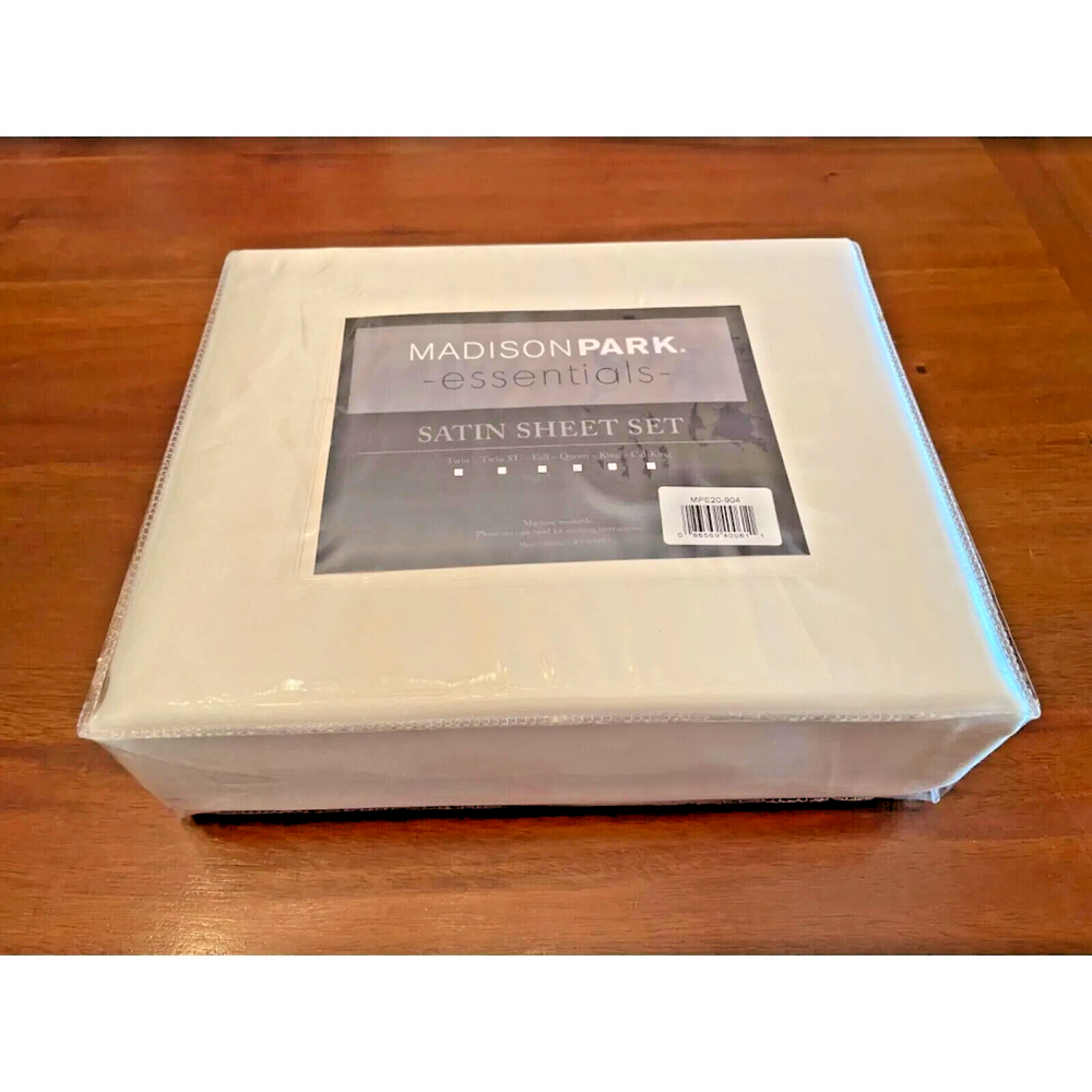 Brand new, unopened Madison Park Essentials Queen Size Satin Sheet Set. Elegant bedding set. Size Queen.