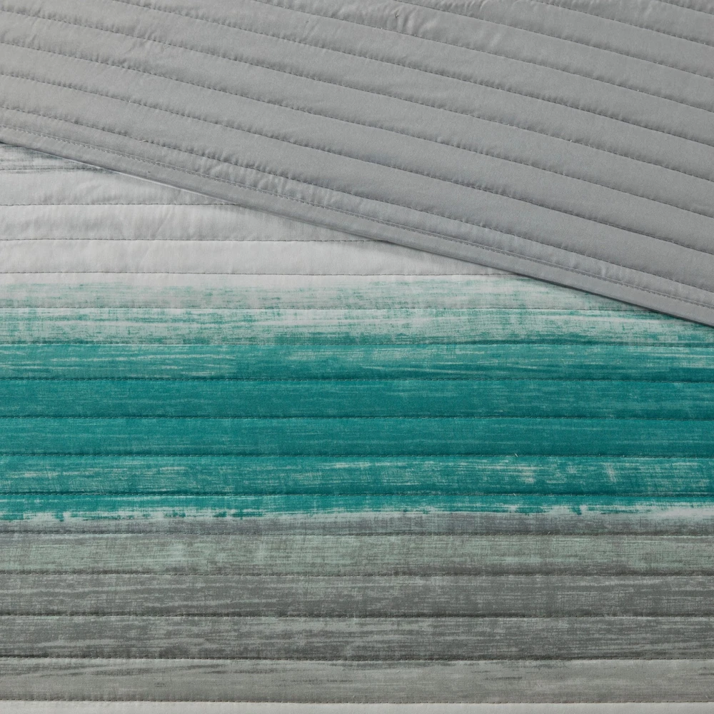 Store Categories Store Categories Bedding Comforters Decorative Pillows Duvet Covers Quilts & Coverlets Sheets Blankets & Throws Mattress Pads Pillows Home Decor Window Treatments Wall Art Home Accents Furniture Beds Dining Seating Ottomans & Benches Accent Chairs Accent Tables Dining Tables Sofas Bath Bath Robes Shower Curtains Towels Bath Rugs Bath Accessories Apparel Pajama Sets Nightgowns Rugs Rugs & Carpets Lighting Lamp Pendant Other Product Overview Details DESCRIPTION The Madison Park Essentials Saben Complete Reversible Quilt and Cotton Sheet Set provides a modern update to your bedroom. A watercolor stripe print is beautifully displayed on the ultra-soft microfiber quilt. The matching shams (1 in Twin Sizes) mirror the pattern of the quilt, while an embroidered decorative pillow completes the bedding set. A coordinating printed grey cotton sheet set is also included to complement the casual style of the quilt. Bringing the best in health and wellness, this bedding set also features an anti-microbial treatment that provides built-in freshness protection, reducing the growth of odor causing bacteria and keeps fabric lasting longer. This bedding set is OEKO-TEX certified, meaning it does not contain any harmful substances or chemicals, ensuring quality comfort and wellness. FEATURES • Casual bedding ensembles featuring water color print quilt and cotton sheet set • Features an anti-microbial treatment for odor and bacteria control, which enhances hygiene and keeps the fabric fresher, longer • Set includes quilt, 2 shams (1 in Twin), 1 oblong pillow, fitted and flat sheet and 2 pillowcases (1 in Twin) • Embroidered decorative pillow detailing • Hypoallergenic polyester filling in the quilt and pillows (filling contains no allergens and is treated to be dustproof) • Fitted sheet fits up to a 14-inch (12-inch in Twin size) mattress • OEKO-TEX certified, meaning it has no harmful substances or chemicals for quality comfort and wellness • Items in this set may come in rolled or compressed packaging and will need to be fluffed up • Machine Washable and steam iron for wrinkle removal MATERIAL Soft brushed microfiber print quilt and shams, 90%cotton 10%other fiber fil, soft brushed microfiber pillow, 100% cotton sheet set Available Sizes: Twin Quilt Set includes: 1 Quilt: 68"W x 86"L 1 Standard Sham: 20"W x 26"L 1 Flat Sheet: 66"W x 96"L 1 Fitted Sheet: 39"W x 75"L + 12"D 1 Standard Pillowcase: 20"W x 30"L 1 Decorative Pillow: 12"W x 18"L Full Quilt Set includes: 1 Quilt: 78"W x 86"L 2 Standard Shams: 20"W x 26"L 1 Flat Sheet: 81"W x 96"L 1 Fitted Sheet: 54"W x 75"L + 14"D 2 Standard Pillowcases: 20"W x 30"L 1 Decorative Pillow: 12"W x 18"L Queen Quilt Set includes: 1 Quilt: 90"W x 90"L 2 Standard Shams: 20"W x 26"L 1 Flat Sheet: 90"W x 102"L 1 Fitted Sheet: 60"W x 80"L + 14"D 2 Standard Pillowcases: 20"W x 30"L 1 Decorative Pillow: 12"W x 18"L King Quilt Set includes: 1 Quilt: 104"W x 92"L 2 King Shams: 20"W x 36"L 1 Flat Sheet: 108"W x 102"L 1 Fitted Sheet: 78"W x 80"L + 14"D 2 Pillowcases: 20"W x 40"L 1 Decorative Pillow: 12"W x 18"L California King Quilt Set includes: 1 Quilt: 104"W x 92"L 2 King Shams: 20"W x 36"L 1 Flat Sheet: 108"W x 102"L 1 Fitted Sheet: 72"W x 84"L + 14"D 2 King Pillowcases: 20"W x 40"L 1 Decorative Pillow: 12"W x 18"L Bedding Comforters Decorative Pillows Duvet Covers Quilts & Coverlets Sheets Blankets & Throws Mattress Pads Pillows Home Decor Window Treatments Wall Art Home Accents Furniture Beds Dining Seating Ottomans & Benches Accent Chairs Accent Tables Dining Tables Sofas Bath Bath Robes Shower Curtains Towels Bath Rugs Bath Accessories Rugs Rugs & Carpets Lighting Lamp Pendant Product Overview Product Details DESCRIPTION The Madison Park Essentials Saben Complete Reversible Quilt and Cotton Sheet Set provides a modern update to your bedroom. A watercolor stripe print is beautifully displayed on the ultra-soft microfiber quilt. The matching shams (1 in Twin Sizes) mirror the pattern of the quilt, while an embroidered decorative pillow completes the bedding set. A coordinating printed grey cotton sheet set is also included to complement the casual style of the quilt. Bringing the best in health and wellness, this bedding set also features an anti-microbial treatment that provides built-in freshness protection, reducing the growth of odor causing bacteria and keeps fabric lasting longer. This bedding set is OEKO-TEX certified, meaning it does not contain any harmful substances or chemicals, ensuring quality comfort and wellness. FEATURES • Casual bedding ensembles featuring water color print quilt and cotton sheet set • Features an anti-microbial treatment for odor and bacteria control, which enhances hygiene and keeps the fabric fresher, longer • Set includes quilt, 2 shams (1 in Twin), 1 oblong pillow, fitted and flat sheet and 2 pillowcases (1 in Twin) • Embroidered decorative pillow detailing • Hypoallergenic polyester filling in the quilt and pillows (filling contains no allergens and is treated to be dustproof) • Fitted sheet fits up to a 14-inch (12-inch in Twin size) mattress • OEKO-TEX certified, meaning it has no harmful substances or chemicals for quality comfort and wellness • Items in this set may come in rolled or compressed packaging and will need to be fluffed up • Machine Washable and steam iron for wrinkle removal MATERIAL Soft brushed microfiber print quilt and shams, 90%cotton 10%other fiber fil, soft brushed microfiber pillow, 100% cotton sheet set Available Sizes: Twin Quilt Set includes: 1 Quilt: 68"W x 86"L 1 Standard Sham: 20"W x 26"L 1 Flat Sheet: 66"W x 96"L 1 Fitted Sheet: 39"W x 75"L + 12"D 1 Standard Pillowcase: 20"W x 30"L 1 Decorative Pillow: 12"W x 18"L Full Quilt Set includes: 1 Quilt: 78"W x 86"L 2 Standard Shams: 20"W x 26"L 1 Flat Sheet: 81"W x 96"L 1 Fitted Sheet: 54"W x 75"L + 14"D 2 Standard Pillowcases: 20"W x 30"L 1 Decorative Pillow: 12"W x 18"L Queen Quilt Set includes: 1 Quilt: 