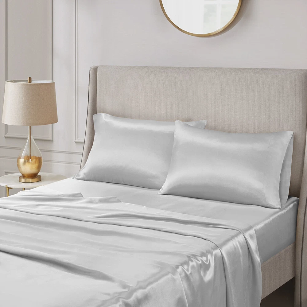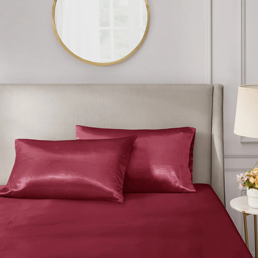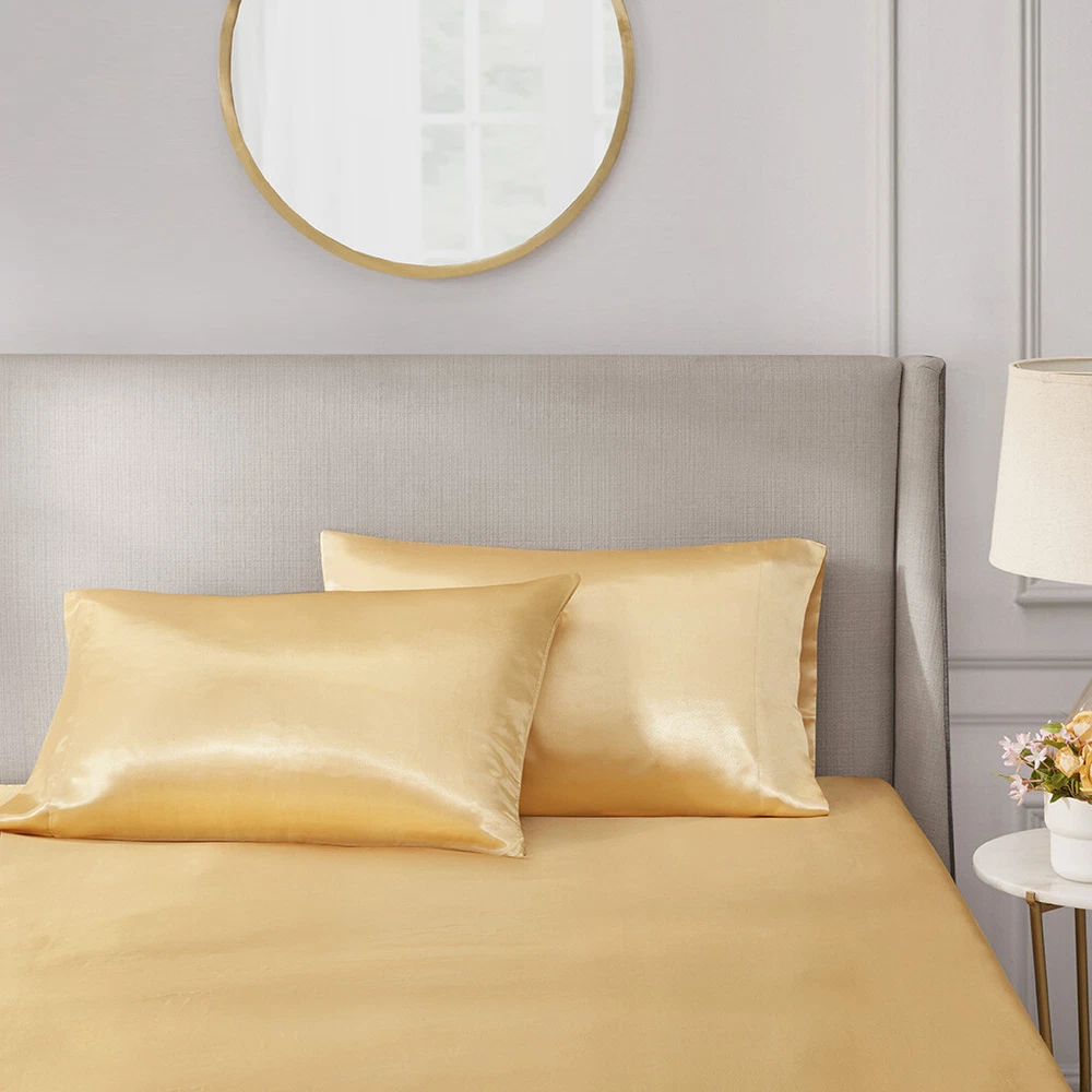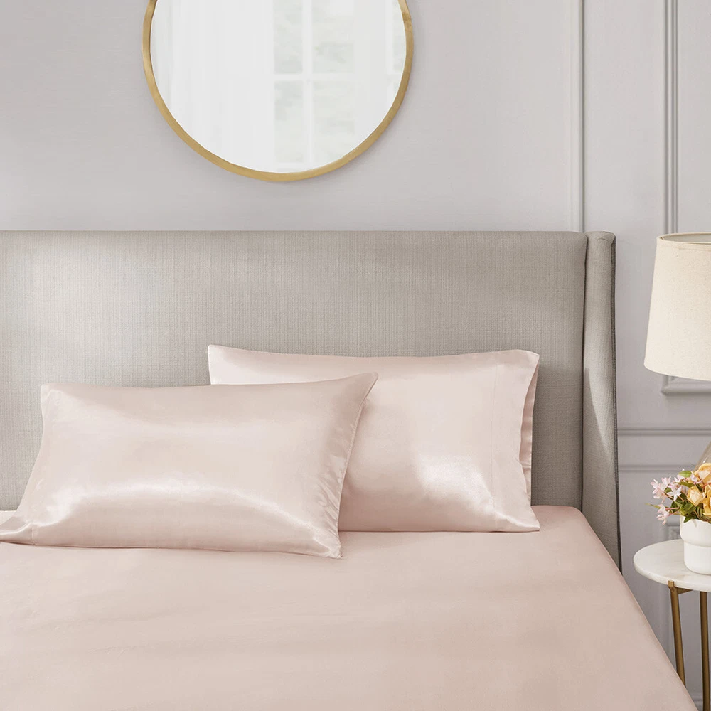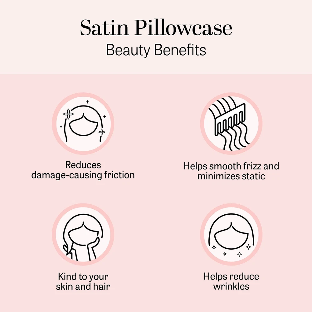 Store Categories Store Categories Bedding Comforters Decorative Pillows Duvet Covers Quilts & Coverlets Sheets Blankets & Throws Mattress Pads Pillows Home Decor Window Treatments Wall Art Home Accents Furniture Beds Dining Seating Ottomans & Benches Accent Chairs Accent Tables Dining Tables Sofas Bath Bath Robes Shower Curtains Towels Bath Rugs Bath Accessories Apparel Pajama Sets Nightgowns Rugs Rugs & Carpets Lighting Lamp Pendant Other Product Overview Details DESCRIPTION Fall asleep in smooth and luxurious comfort with our wrinkle-free satin pillowcases. These satin pillowcases are gentle on your skin and hair, while helping reduce damage causing friction, making this set an essential for your beauty self-care routine. This pack includes 2 durable pillowcases which are wrinkle-free and ready to use without additional ironing or steaming. These pillowcases are also OEKO-TEX certified, meaning they do not contain any harmful substances or chemicals, ensuring quality comfort and wellness. FEATURES • Set of 2 luxury 100% satin pillowcases • Wrinkle free • Open ended on one side • Smooth and silky texture gentle on skin and hair • Helps to tame frizz & reduce breakage while sleeping • Matching sheet sets available and sold separately • To prevent pilling, wash in cold water and sun-dry or tumble dry in low • OEKO-TEX Certified, includes no harmful substances or chemicals MATERIAL 100% polyester solid satin Available Sizes: 2 Standard Pillowcases measures: (20"W x 30"L) 2 King Pillowcases measures: (20"W x 40"L) Bedding Comforters Decorative Pillows Duvet Covers Quilts & Coverlets Sheets Blankets & Throws Mattress Pads Pillows Home Decor Window Treatments Wall Art Home Accents Furniture Beds Dining Seating Ottomans & Benches Accent Chairs Accent Tables Dining Tables Sofas Bath Bath Robes Shower Curtains Towels Bath Rugs Bath Accessories Rugs Rugs & Carpets Lighting Lamp Pendant Product Overview Product Details DESCRIPTION Fall asleep in smooth and luxurious comfort with our wrinkle-free satin pillowcases. These satin pillowcases are gentle on your skin and hair, while helping reduce damage causing friction, making this set an essential for your beauty self-care routine. This pack includes 2 durable pillowcases which are wrinkle-free and ready to use without additional ironing or steaming. These pillowcases are also OEKO-TEX certified, meaning they do not contain any harmful substances or chemicals, ensuring quality comfort and wellness. FEATURES • Set of 2 luxury 100% satin pillowcases • Wrinkle free • Open ended on one side • Smooth and silky texture gentle on skin and hair • Helps to tame frizz & reduce breakage while sleeping • Matching sheet sets available and sold separately • To prevent pilling, wash in cold water and sun-dry or tumble dry in low • OEKO-TEX Certified, includes no harmful substances or chemicals MATERIAL 100% polyester solid satin Available Sizes: 2 Standard Pillowcases measures: (20"W x 30"L) 2 King Pillowcases measures: (20"W x 40"L)