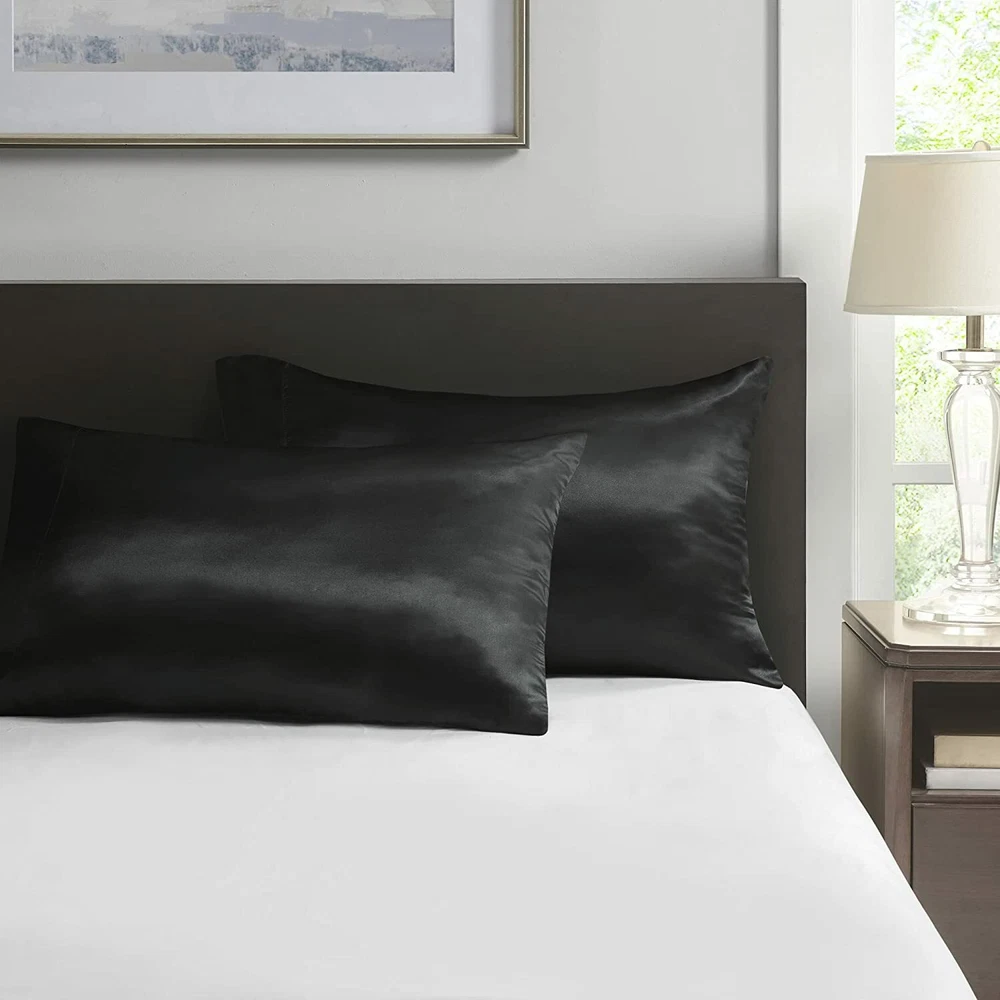 Brand new! 100% Polyester Luxurious, silky, wrinkle free, high-luster and durable satin pillowcases to rest your head at the end of the day . Perfect for any season, with a glossy surface makes you feel comfortable throughout the Year Sleeping on satin on a smooth surface that reduces friction for your hair and skin. This pillowcase protects your hair to keep it tangled and frizz free. The slip and smooth texture protects your skin against the facial sleep lines 100% polyester microfiber with long lasting strength and fade resistant 2 Standard pillowcases 20 inch(W) and 30 inch(L) each Machine washable and dries quickly on tumble dry low G3