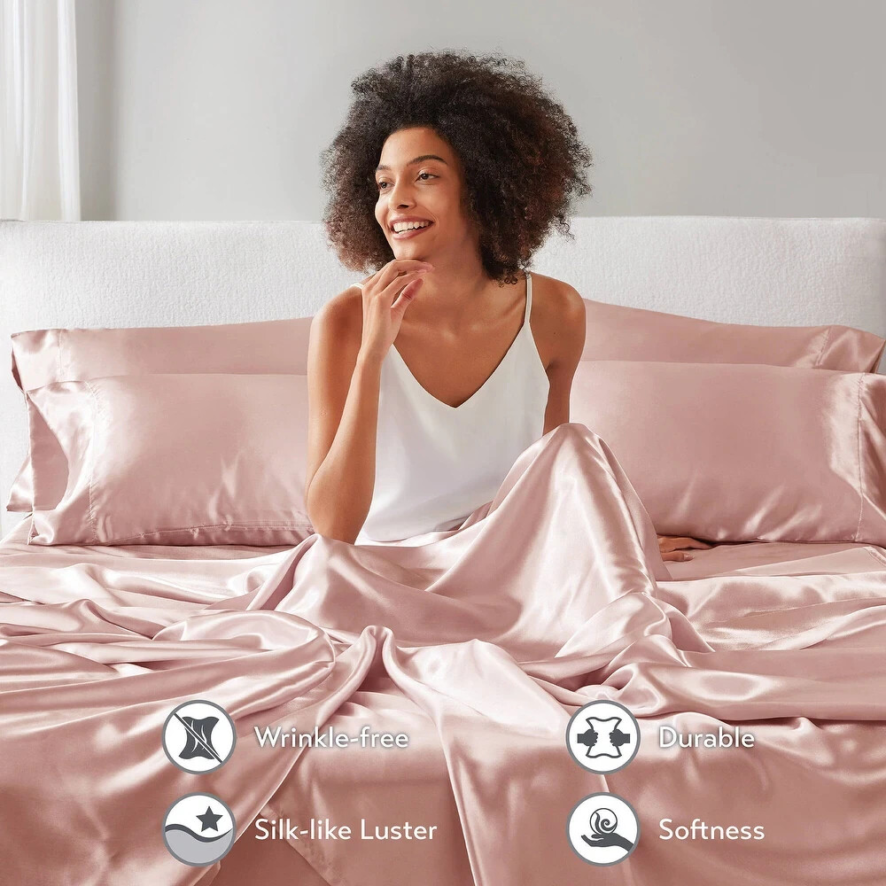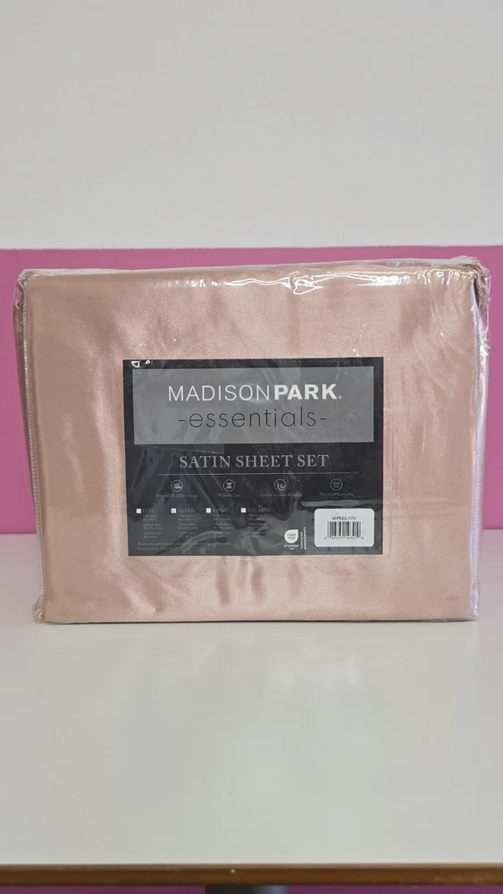 Experience the indulgent feel of Madison Park Essentials Satin Sheet Set, a luxurious addition to your bedroom decor. The set, available in a soft blush color, adds a touch of elegance and sophistication to your bedding ensemble. Designed with a natural sheen that mimics the softness of silk, the satin material promises a sumptuous feel, perfect for a restful night's sleep.Crafted for queen-sized beds, this bedding set includes all the necessary pieces to transform your sleeping space into a veritable oasis of comfort. The satin sheets are not only a pleasure to the touch but also easy to care for, ensuring that they maintain their luxurious appearance with minimal maintenance. Elevate your bedroom's ambiance with this exquisite satin sheet set from Madison Park Essentials.