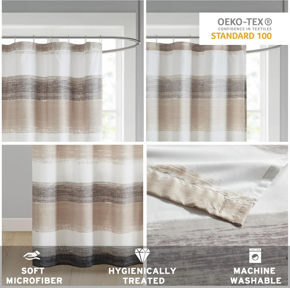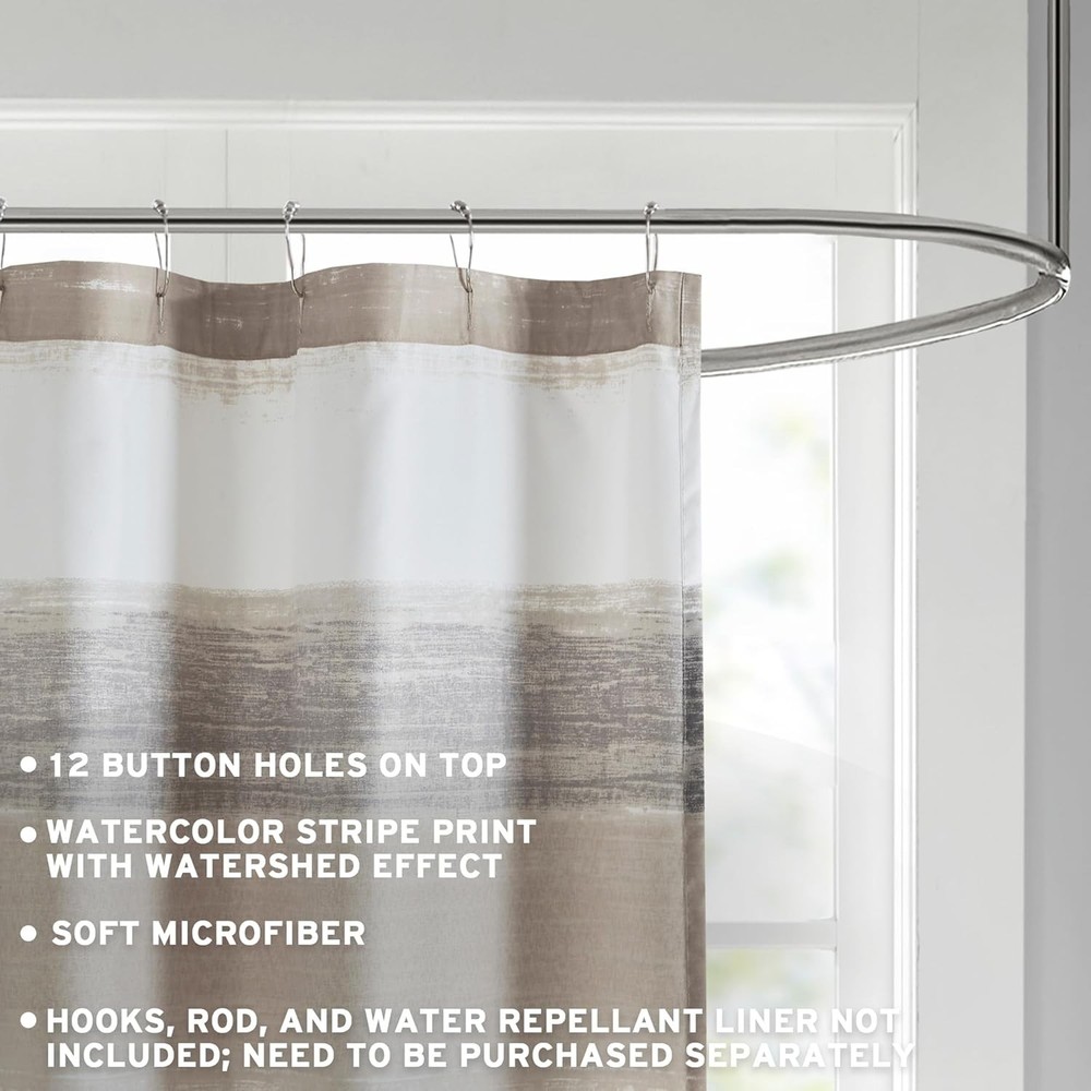 Madison Park Essentials Shower 72"W x 72"L (Pack of 1), Taupe/Black The Madison Park Essentials Saben Shower Curtain provides a modern update to your bedroom. A watercolor stripe print is beautifully displayed on the ultra-soft microfiber Shower Curtain. Bringing the best in health and wellness. This shower curtain is also OEKO-TEX certified, meaning it does not contain any harmful substances or chemicals, ensuring quality comfort and wellness. Coordinating bedding is also available and sold separately. π Product Features β¨ 100% Polyester Microfiber Printed β¨ Luxurious Bathroom DΓ©cor - Elevate your bathroom decor with a contemporary modern Saben Shower Curtain. Featuring an abstract watercolor pattern adding a touch of luxury to your modern bathroom dΓ©cor β¨ Sophisticated Design - This shower curtain showcases a stylish watercolor design creating a subtle yet striking color contrast and trendy style β¨ Functional & Decorative - The Sabe shower curtain complements your bathroom decor, provides privacy, and keeps water in the shower. A water-repellent liner is not included but recommended β¨ Set include: 1 Shower Curtain: 72"W x 72"L β¨ CARE - Machine wash cold on gentle cycle, tumble dry on low heat, wash alone, do not bleach π¦ Shipping: Shipping is complimentary within the lower 48 US States. π π« We Do Not Ship to PO/APO Boxes, HI or Alaska π We Do Not Ship Outside of the Continental US β± All items ship within 24-72 hours of Payment π For large items that require Freight shipping, a valid phone number is required to call and schedule your delivery π Terms of Sale and Feedback: β Feedback is extremely important to us and eBay π If you are satisfied with our transaction, please take a moment to leave Positive Feedback. YOUR Satisfaction is our #1 Priority! β If there are any issues, PLEASE contact us BEFORE leaving a neutral or negative rating so that we may resolve any concerns. π We PROMISE we can make you happy if you give us a fair chance. π Returns / Concerns: π All items qualify for returns within 14 - 30 days of receipt. Buyer is responsible for return shipping on any item that is not damaged. π Please be sure this is an item you want before making your purchase. Customer Satisfaction is our TOP priority! π¦ All items are IN STOCK at time of listing. π Inventory on eBay changes constantly and it is impossible to maintain a perfectly accurate count of all items. πβοΈ Please do not penalize us if we have to issue you a refund! π Thank You For Your Business!