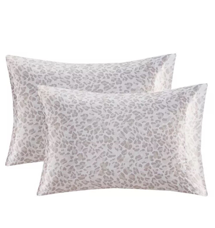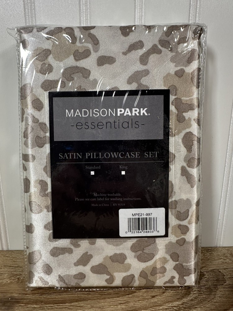 Madison Park Essentials Satin Pillowcase Pair in Standard Taupe Leopard Print