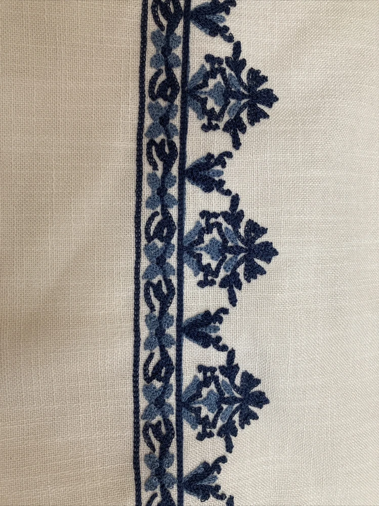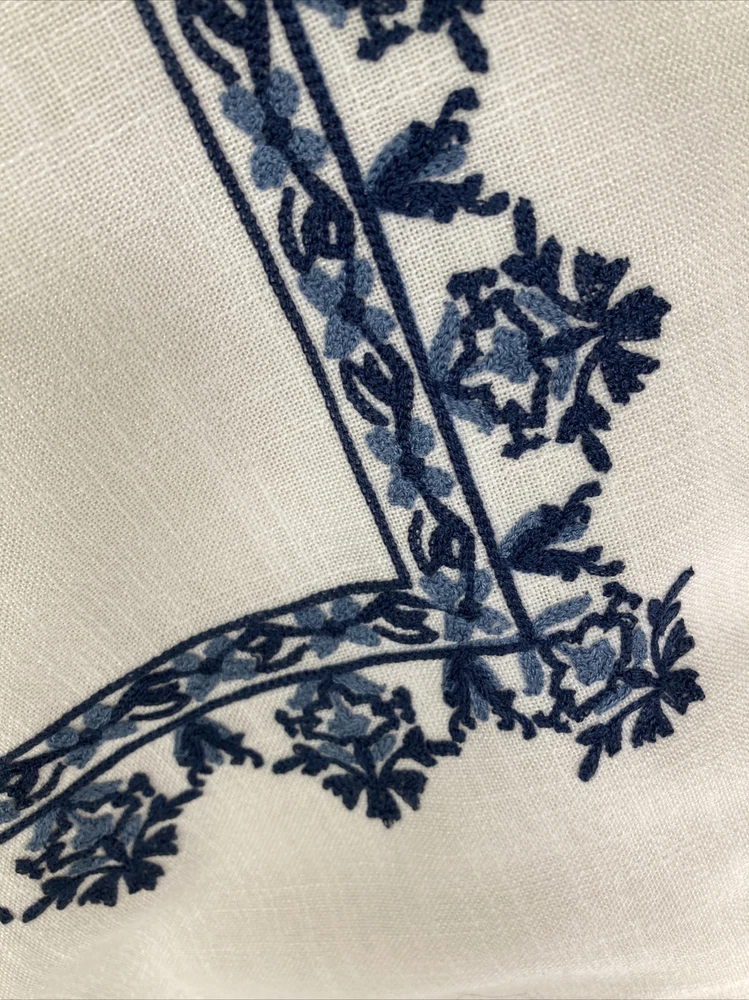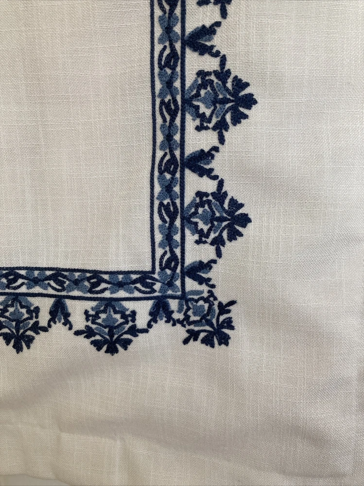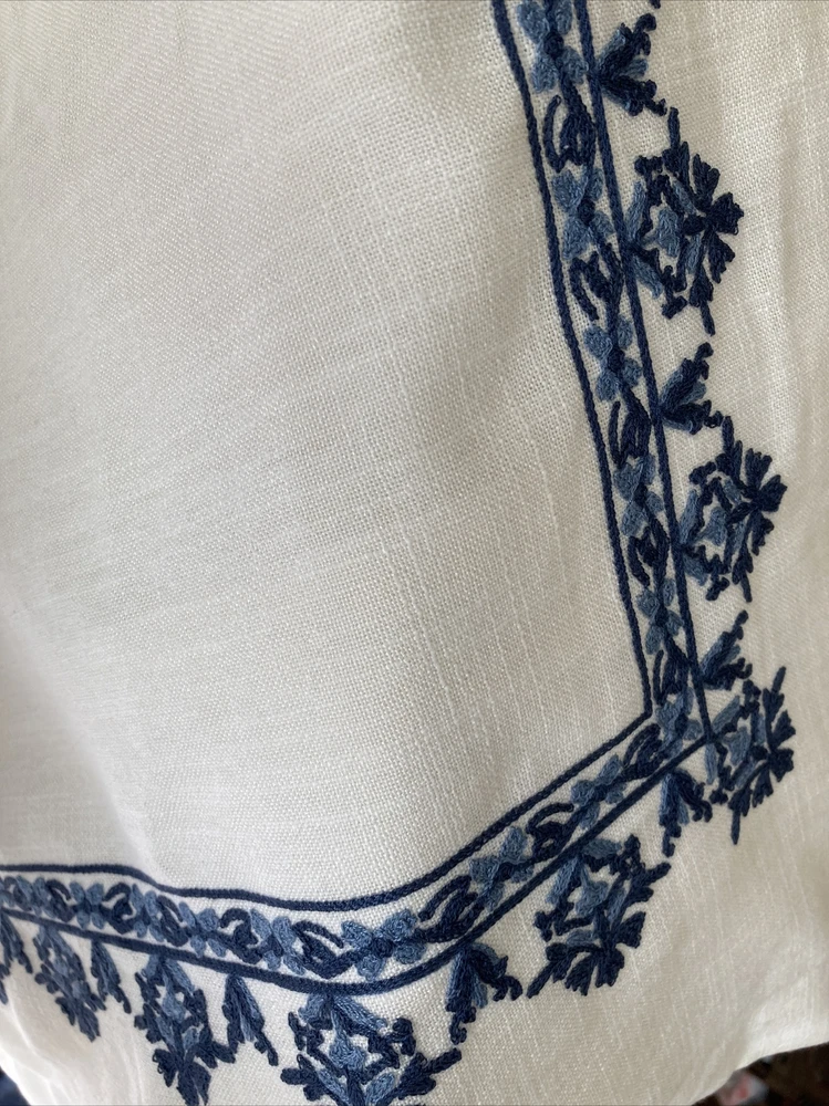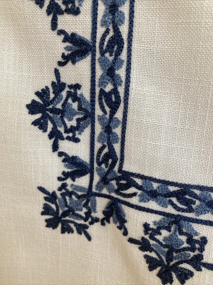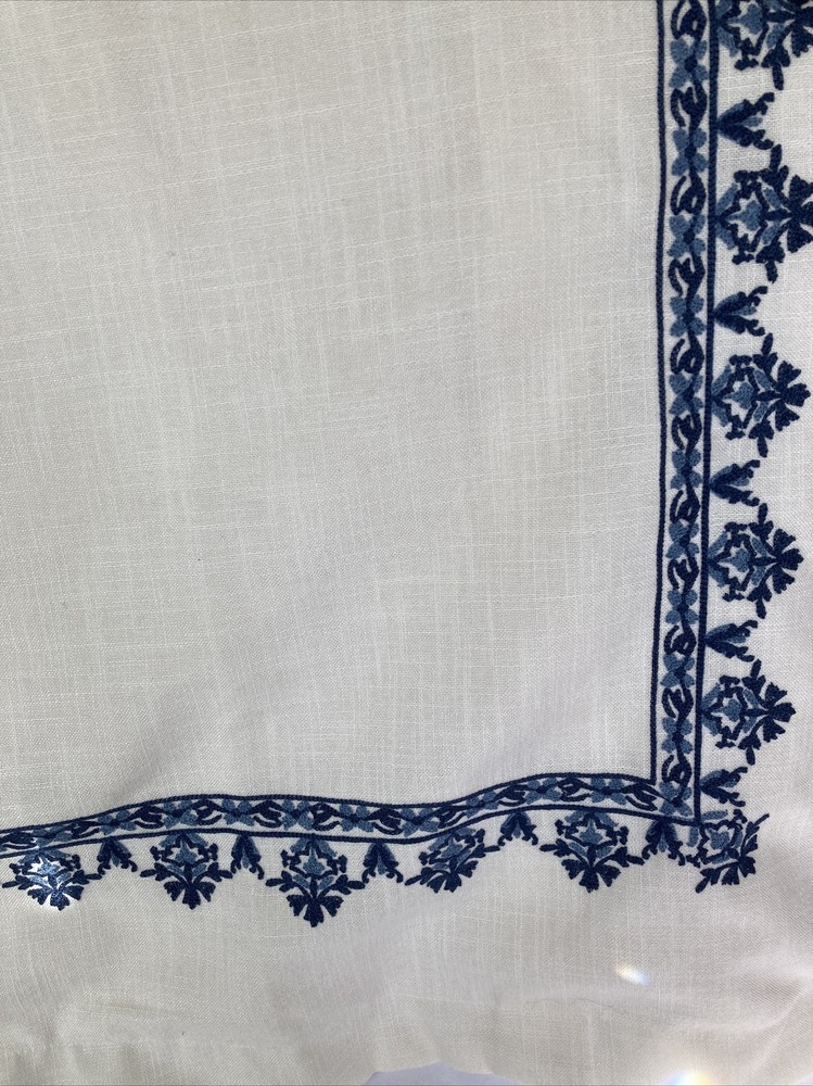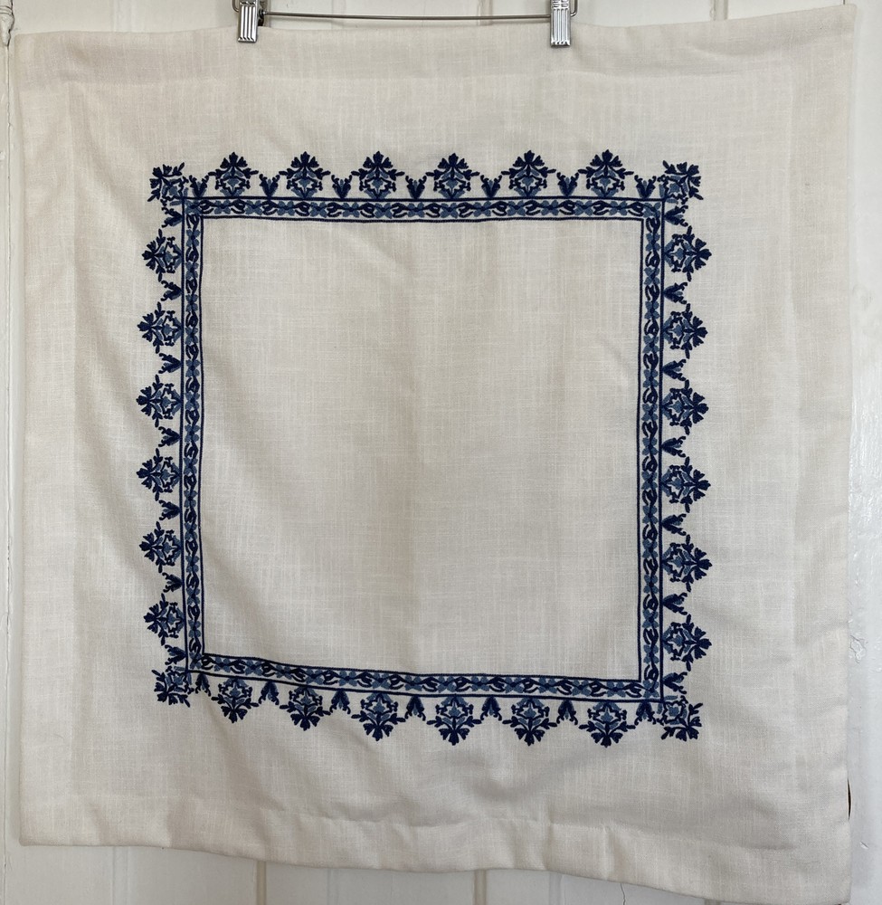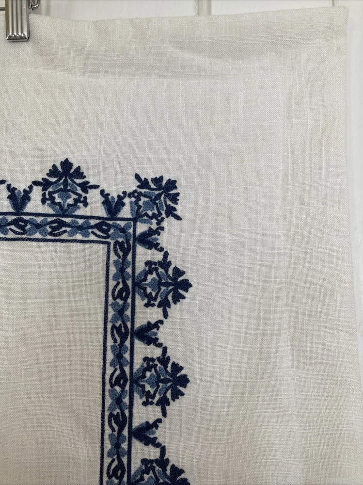 Madison Park Signature Indigo Sky Euro Sham 100% Polyester Faux Linen Blue Embroidery on Off-White/Ivory For Large Pillow 26x26" with 2" Flange Cover only Clear buttons in back for closure Stunning!!! Free returns with refund minus original shipping. Shipping discount possible when buying multiple items in same cart.