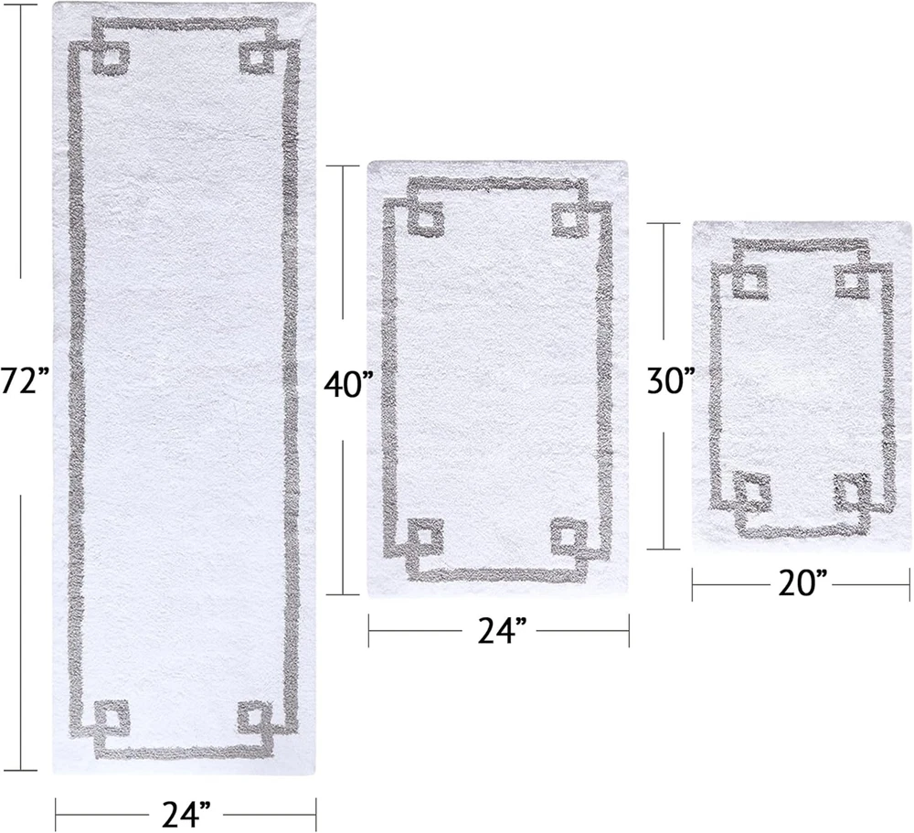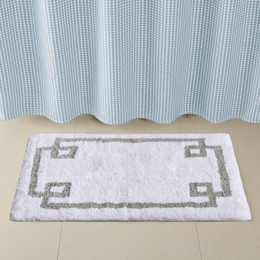 Madison Park Evan 100% Cotton Bathroom Rug Non Slip 20x30", White Product Details Brand: Madison Park Size: 20x30" Material: Cotton Weave Type: Tufted Item Weight: 2.1 Pounds Pile Height: Medium Pile Construction Type: Machine Made Back Material Type: Rubber Color: White Indoor/Outdoor Usage: Indoor Is Stain Resistant: No Product Care Instructions: Machine wash cold seperately, on gentle/delicate cycle. Use mild detergent and non-chlorine bleach when needed. Tumble dry low, remove promptly. Some linting may occur due to nature of fabric. Do not iron. Do not dry clean. Pattern: Geometric Shape: Rectangular Special Feature: Non Slip Backing-luxrurious Room Type: Bathroom Product Dimensions: 30"L x 20"W Rug Form Type: Bath Mat Style: bath_mat Occasion: Housewarming Min. Required Door Width: 0.6 Inches Number of Pieces: 1 Item Thickness: 0.25 Inches Is Autographed: No Model Name: Evan 100% Cotton Bathroom Rug Non Slip Backing-Luxrurious Tufted Plush Bath Mat Age Range (Description): Adult Item Weight: 2.1 pounds Country of Origin: India Item model number: MP72-7332 Brand: Madison Park Size: 20x30" Material: Cotton Weave Type: Tufted Item Weight: 2.1 Pounds Made from 100% cotton for a perfect balance of comfort and style to your space. Due to the nature of the fabric, some linting may occur initially, allow 3-5 washes to subside. Over time some threads may come loose; simply trim any loose threads as needed The plush medium pile weight ensures pure soft comfort for your feet, with high absorbency and a cool, striking contrast white border design for a clean hotel look right in your own home Premium shower rug that is Oeko-Tex certified to be free of any chemicals and harmful substance. And the non-skid latex backing helps keep the rug in place for better safety What's in the box? 1 Bath Rug: Size 20"W x 30"L. Medium pile 0.5" high Care instructions: Machine wash cold seperately, on gentle/delicate cycle. Use mild detergent and non-chlorine bleach when needed. Tumble dry low. Some linting may occur due to nature of fabric. Allow 3-5 washes to subside. Do not iron. Do not dry clean The Madison Park Evan Cotton Tufted Bath Rug provides the perfect balance of comfort and style to update your bathroom. This tufted bath rug features a contrasting grey border on a soft neutral ground creating a clean hotel look, while the plush medium pile weight provides pure soft comfort for your feet. The light latex coated back makes this bath rug skid resistance for better safety, while also keeping rug in place throughout the day. Machine washable for easier care, this cotton bath rug is also OEKO-TEX certified, meaning it does not contain any harmful substances or chemicals ensuring quality comfort and wellness. Bath rugs are sold separately in multiple sizes and colors, making it easy to complete any bathroom size and decor!