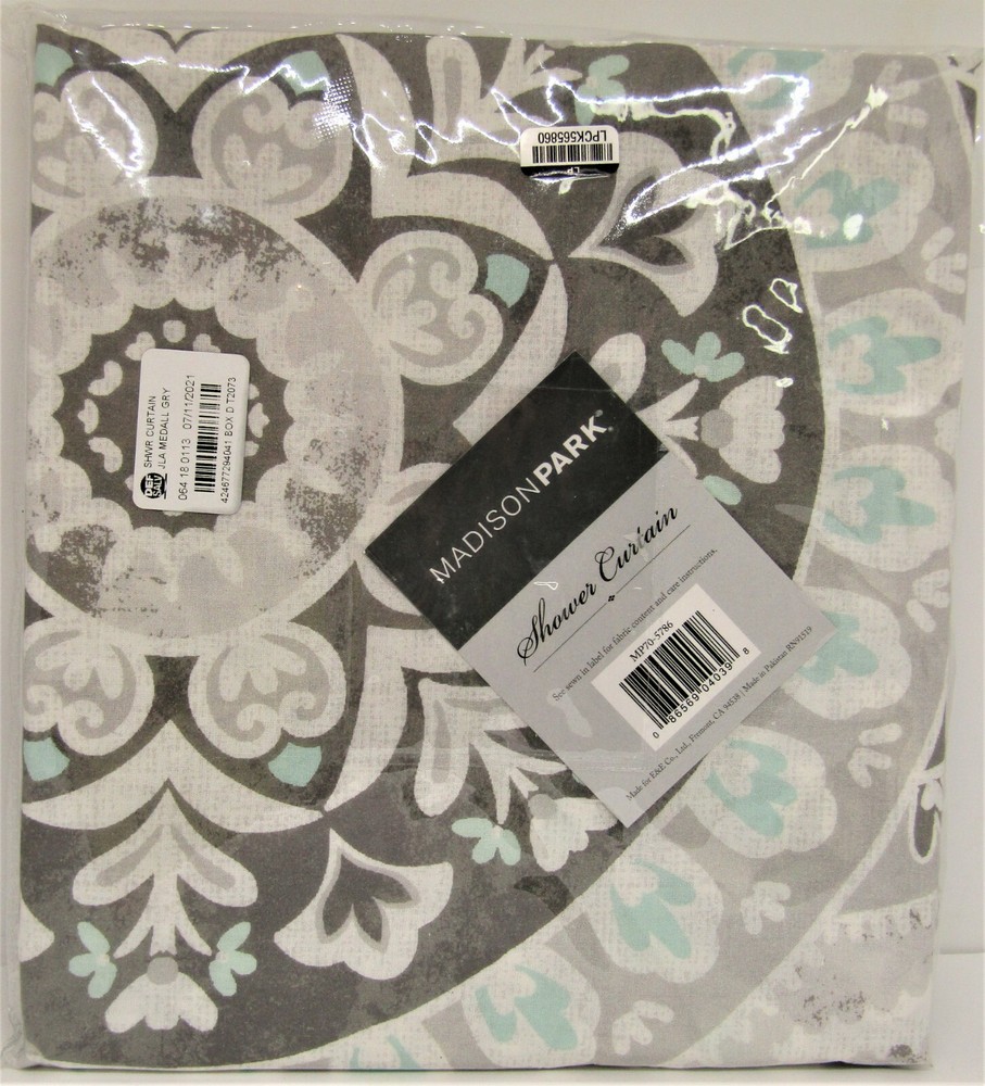 Madison Park Fabric Shower Curtain, Metal Grey Print. New, 72 X 72. Shipping to the lower 48 states only.