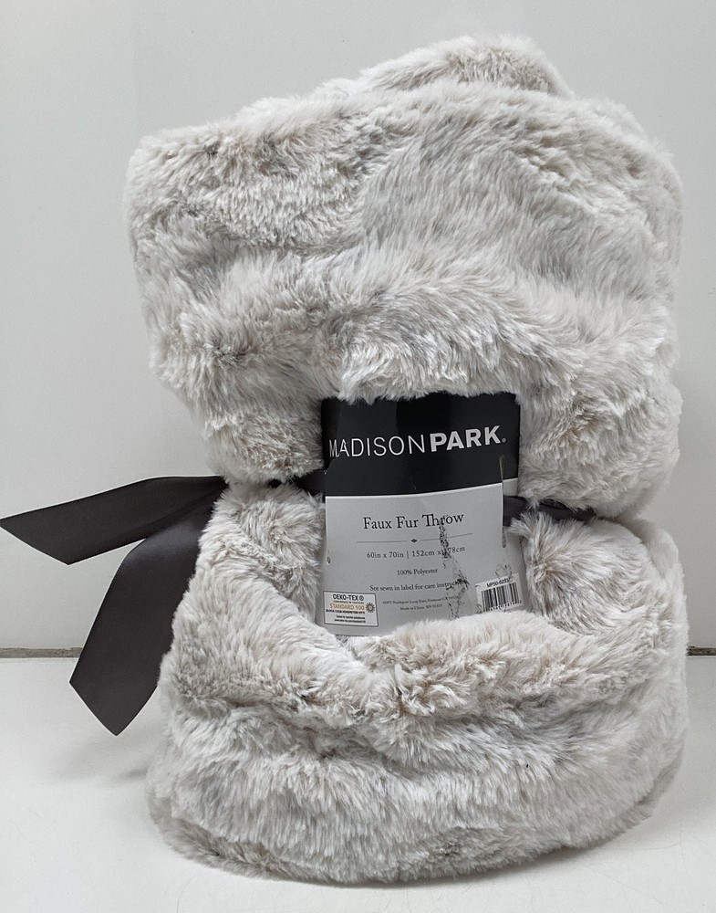 These throws are known for their ultra-soft faux fur fronts and cozy faux mink reverses, offering both warmth and elegance. The Madison Park Faux Fur Throw in the 60" x 70" size is a luxurious and cozy addition to any living space. Packaging may have wear and tear due to storage and handling. Please see pictures for details. These throws are known for their ultra-soft faux fur fronts and cozy faux mink reverses, offering both warmth and elegance. The Madison Park Faux Fur Throw in the 60" x 70" size is a luxurious and cozy addition to any living space. Packaging may have wear and tear due to storage and handling. Please see pictures for details.