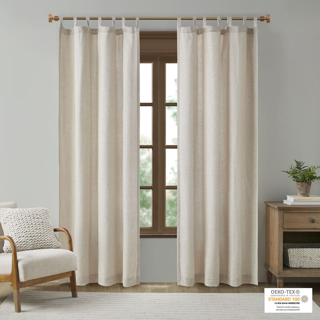 Store Categories Store Categories Bedding Comforters Decorative Pillows Duvet Covers Quilts & Coverlets Sheets Blankets & Throws Mattress Pads Pillows Home Decor Window Treatments Wall Art Home Accents Furniture Beds Dining Seating Ottomans & Benches Accent Chairs Accent Tables Dining Tables Sofas Bath Bath Robes Shower Curtains Towels Bath Rugs Bath Accessories Apparel Pajama Sets Nightgowns Rugs Rugs & Carpets Lighting Lamp Pendant Other Product Overview Details DESCRIPTION Give your home decor a casual and stylish update with our Madison Park Beals Faux Linen Tab Top Fleece Lined Panel. This natural window panel is made from a faux linen textured fabric for a cozy touch, combined with a unique fleece lining for thermal insulation to keep the warmth in during the cold seasons but still allow fresh light into your home as well. These curtains are also OEKO-TEX certified, meaning it does not contain any harmful substances or chemicals to ensure quality comfort and wellness. Machine washable for easy care; each panel is finished with tab tops that fit up to a 1.25 inch diameter rod. Panel is sold as a single; as show in image 2 curtain panels will need to be purchased to provide coverage for any standard size window. FEATURES • Faux linen textured single window panel • Added unique fleece lining for thermal insulation, keeping warmth in during winter and heat out during summer • Oeko-Tex Certified, includes no harmful substances or chemicals • Light filtering panel with privacy • Single panel item measures 50" wide; Recommended 2 panels for standard coverage • Tab top finish fits up to 1.25" diameter rod • Machine washable for easy care MATERIAL Face: 80% Polyester 20% Linen; Back: 100% polyester fleece lining CARE INSTRUCTIONS Machine Washable Available Sizes (In Inches): 84" Panel Size: Includes 1 Window Panel measuring 50"W x 84"L. Bedding Comforters Decorative Pillows Duvet Covers Quilts & Coverlets Sheets Blankets & Throws Mattress Pads Pillows Home Decor Window Treatments Wall Art Home Accents Furniture Beds Dining Seating Ottomans & Benches Accent Chairs Accent Tables Dining Tables Sofas Bath Bath Robes Shower Curtains Towels Bath Rugs Bath Accessories Rugs Rugs & Carpets Lighting Lamp Pendant Product Overview Product Details DESCRIPTION Give your home decor a casual and stylish update with our Madison Park Beals Faux Linen Tab Top Fleece Lined Panel. This natural window panel is made from a faux linen textured fabric for a cozy touch, combined with a unique fleece lining for thermal insulation to keep the warmth in during the cold seasons but still allow fresh light into your home as well. These curtains are also OEKO-TEX certified, meaning it does not contain any harmful substances or chemicals to ensure quality comfort and wellness. Machine washable for easy care; each panel is finished with tab tops that fit up to a 1.25 inch diameter rod. Panel is sold as a single; as show in image 2 curtain panels will need to be purchased to provide coverage for any standard size window. FEATURES • Faux linen textured single window panel • Added unique fleece lining for thermal insulation, keeping warmth in during winter and heat out during summer • Oeko-Tex Certified, includes no harmful substances or chemicals • Light filtering panel with privacy • Single panel item measures 50" wide; Recommended 2 panels for standard coverage • Tab top finish fits up to 1.25" diameter rod • Machine washable for easy care MATERIAL Face: 80% Polyester 20% Linen; Back: 100% polyester fleece lining CARE INSTRUCTIONS Machine Washable Available Sizes (In Inches): 84" Panel Size: Includes 1 Window Panel measuring 50"W x 84"L.