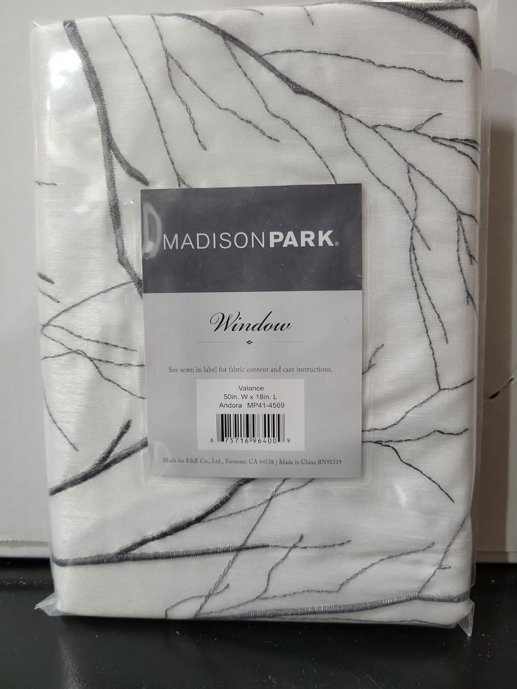 Madison Park Faux Silk Embroidered Window Valance, 50in x 18in (MP41-4569), NWT.
