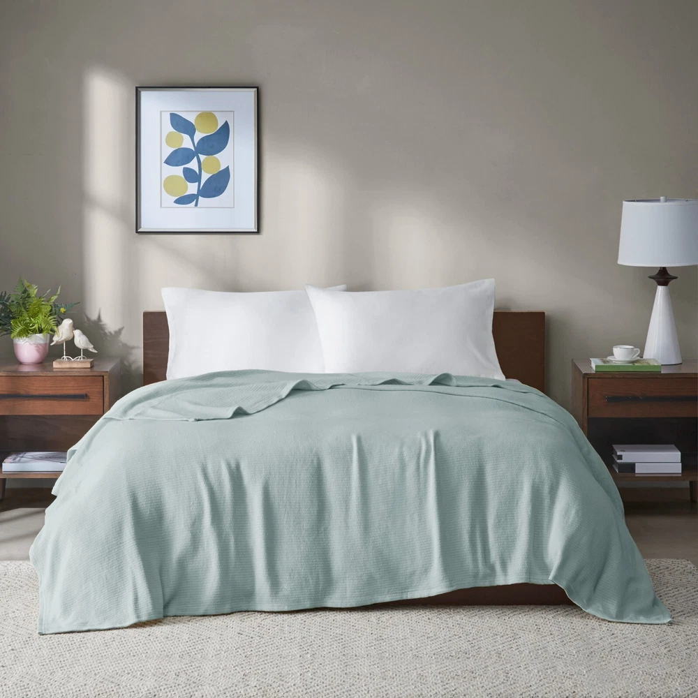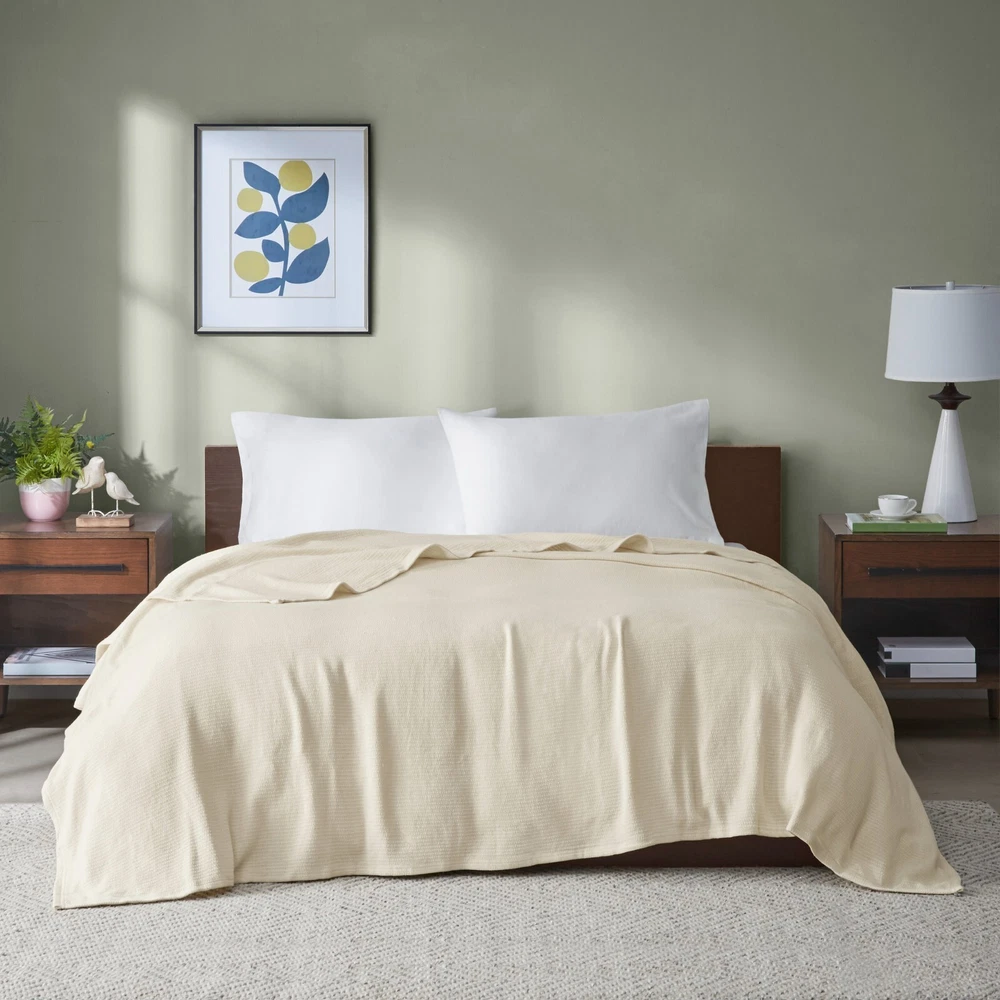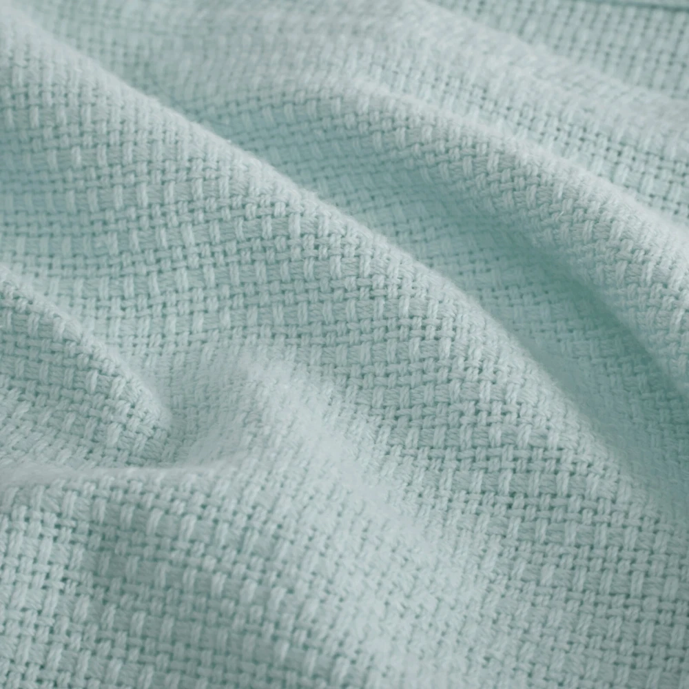 Store Categories Store Categories Bedding Comforters Decorative Pillows Duvet Covers Quilts & Coverlets Sheets Blankets & Throws Mattress Pads Pillows Home Decor Window Treatments Wall Art Home Accents Furniture Beds Dining Seating Ottomans & Benches Accent Chairs Accent Tables Dining Tables Sofas Bath Bath Robes Shower Curtains Towels Bath Rugs Bath Accessories Apparel Pajama Sets Nightgowns Rugs Rugs & Carpets Lighting Lamp Pendant Other Product Overview Details DESCRIPTION The Fresh spun blanket features a classic basket weave pattern. Made from high quality first pick upland cotton, this lightweight blanket is perfect for year round use. The cotton blanket is OEKO-TEX certified, meaning it does not contain any harmful substances or chemicals to ensure quality comfort and wellness. FEATURES • Lightweight blanket made from 100% cotton for breathable comfort • Basketweave construction adds texture to your bedding ensemble • Available in soft hues that blend easily with your existing decor • Oeko-Tex Certified, includes no harmful substances or chemicals • Machine-washable for easy care MATERIAL 100% cotton, 250gsm Available Sizes: Twin Blanket: 66x90" Full/Queen Blanket: 90x90" King Blanket: 108x90" Bedding Comforters Decorative Pillows Duvet Covers Quilts & Coverlets Sheets Blankets & Throws Mattress Pads Pillows Home Decor Window Treatments Wall Art Home Accents Furniture Beds Dining Seating Ottomans & Benches Accent Chairs Accent Tables Dining Tables Sofas Bath Bath Robes Shower Curtains Towels Bath Rugs Bath Accessories Rugs Rugs & Carpets Lighting Lamp Pendant Product Overview Product Details DESCRIPTION The Fresh spun blanket features a classic basket weave pattern. Made from high quality first pick upland cotton, this lightweight blanket is perfect for year round use. The cotton blanket is OEKO-TEX certified, meaning it does not contain any harmful substances or chemicals to ensure quality comfort and wellness. FEATURES • Lightweight blanket made from 100% cotton for breathable comfort • Basketweave construction adds texture to your bedding ensemble • Available in soft hues that blend easily with your existing decor • Oeko-Tex Certified, includes no harmful substances or chemicals • Machine-washable for easy care MATERIAL 100% cotton, 250gsm Available Sizes: Twin Blanket: 66x90" Full/Queen Blanket: 90x90" King Blanket: 108x90"