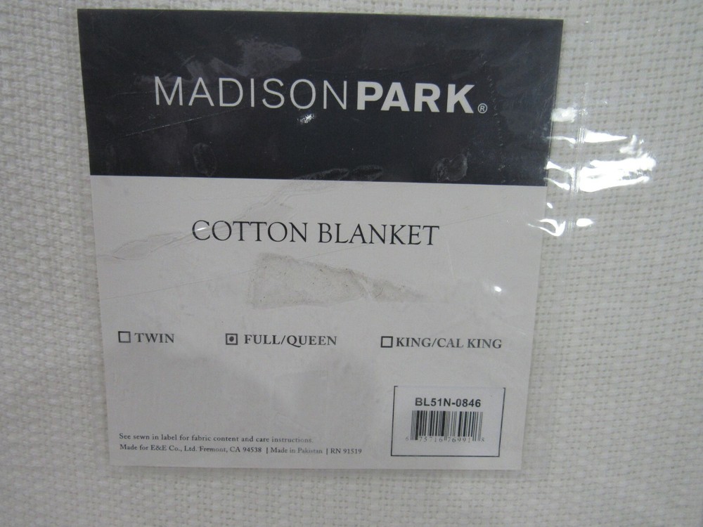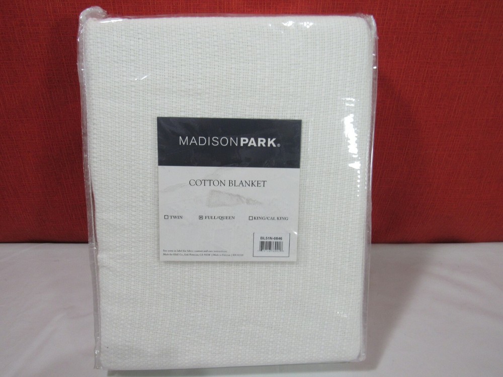 Madison Park Freshspun Cotton Basketweave Full/Queen Blanket T4102082 Get luxe lightweight warmth perfect for year-round use with this Freshspun blanket from Madison Park, featuring high quality cotton to help reduce snags and pilling and a textured basketweave design for a touch of chic style. Dimensions: 90" x 90" Fabric content: 100% cotton 250 GSM Textured basketweave design 100% cotton Machine washable Imported