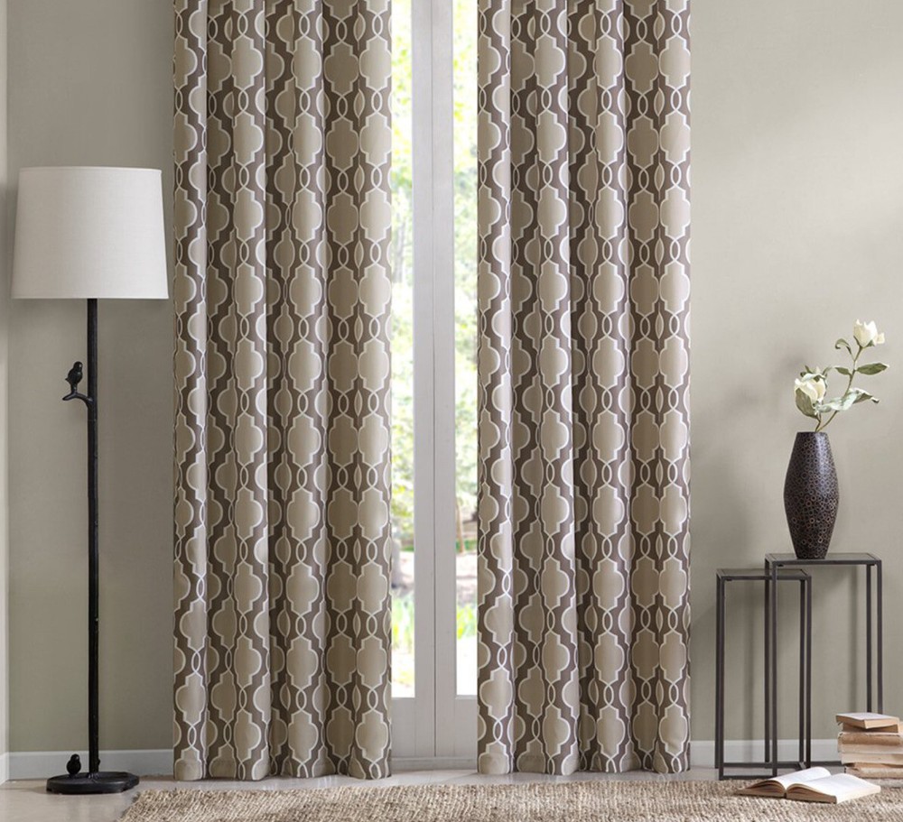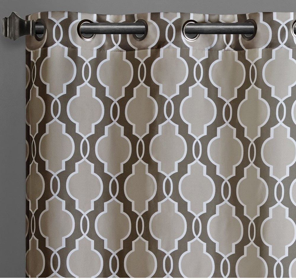 Madison Park Fret Grommet Panel Two Tone Beige Panel 63”. Condition is New. Shipped with USPS Priority Mail. Our Madison Park printed fret window panel adds the perfect amount of color and contrast to any room. A classic ogee is updated by combining two natural tones for a unique look, while the 100% cotton fabric provides texture for an organic touch. Grommet Top detail makes it easier to hang and style. Fits up to 1.25" diameter rod. Set Include:1 Window Curtain:50x84”