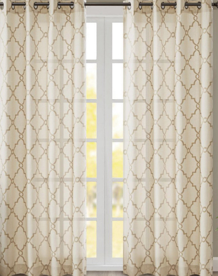 71✅ Madison Park Fretwork Print Grommet Top Window Curtain 50x63”, ‼️one Panel‼️. Condition is New. Shipped with USPS First Class. any offer please let me know?