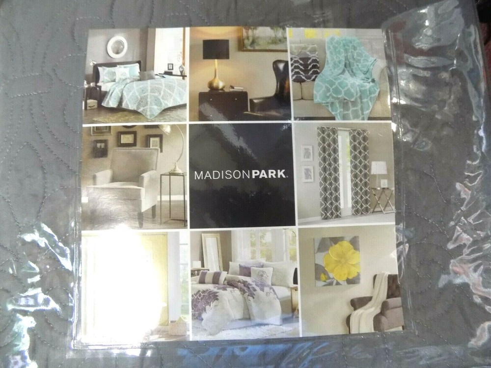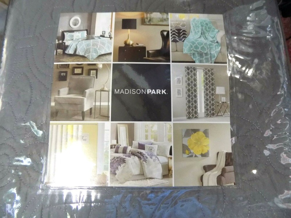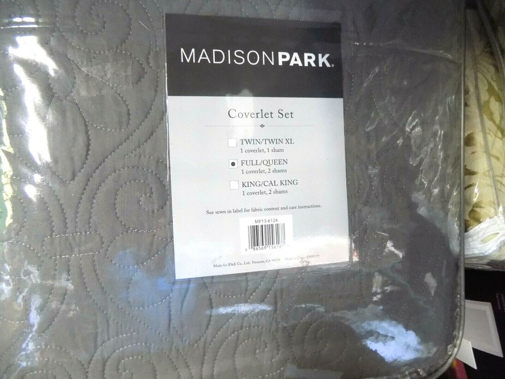 Madison Park Full /Queen 3Piece Reversible Coverlet Set In Grey Finish New in package Create a shabby chic look in your bedroom with the Madison Park Celeste Collection. This solid white coverlet has ruffles and quilting paired with a contrasting embroidered decorative pillow for a clean update for your space. Features Color: Grey Material: Polyester Microfiber 1 Coverlet: 90x90" 2 Standard Shams: 20x26+2"(2) Made in China Care Instructions: Machine Wash Cold, Gentle Cycle, And Separately.