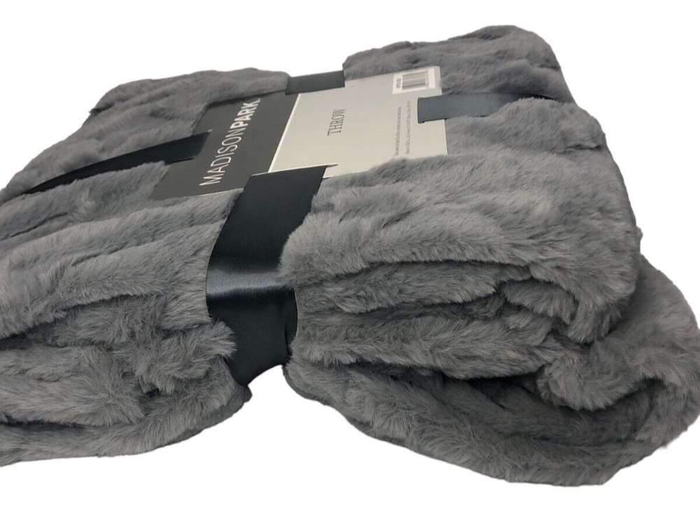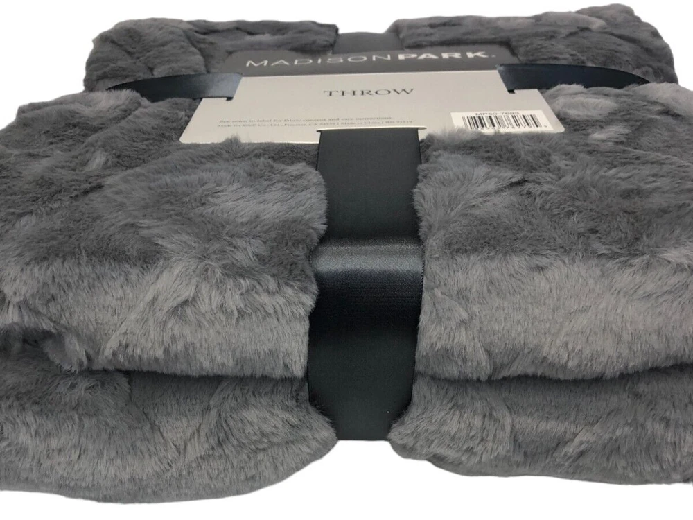 Madison Park Claire Luxury Basketweave Faux Fur Throw Blanket Color: Gray Size: 50x60" PRODUCT FEATURES 50"W x 60"L Contains faux fur Cozy solid plush reverse Carved basketweave pattern adds dimension CONSTRUCTION & CARE Polyester Machine wash Imported Actual item Photos. Don't hesitate to contact us before purchasing if you have questions about the item's condition and shipping cost. If you receive an item with a noticeable flaw not shown in the photos, please contact us before leaving feedback. We strive to describe all items thoroughly and accurately. Please ask any questions you have before offering or buying. We will do our best to return your messages within 24 hours. Happy Shopping!
