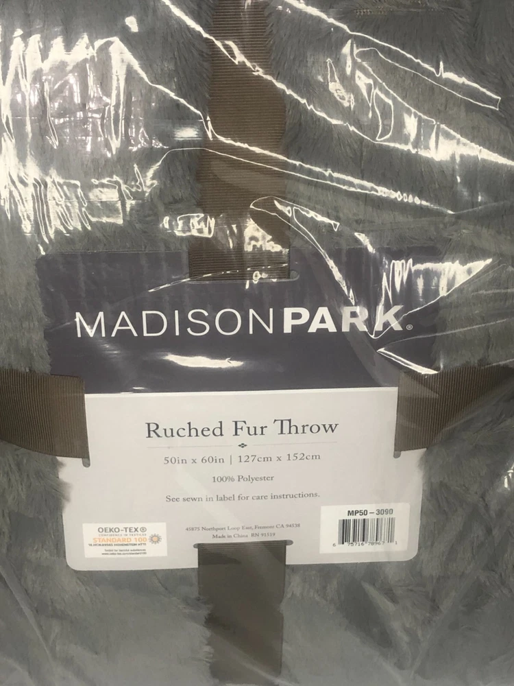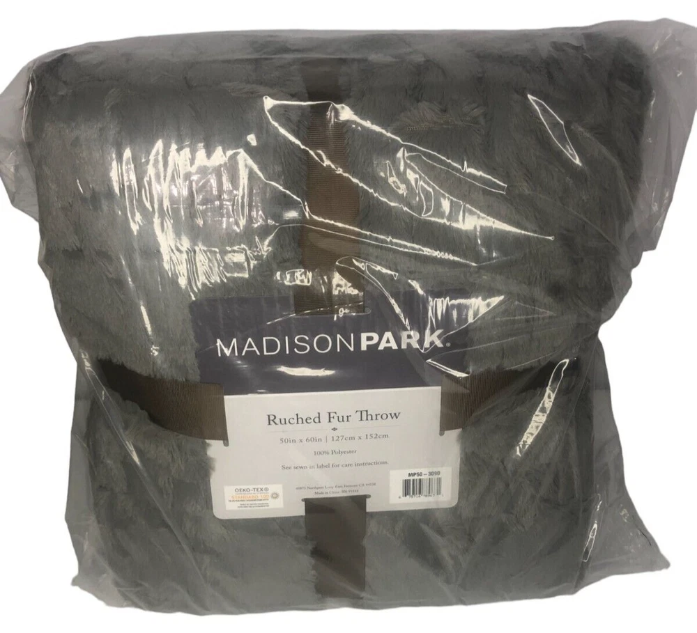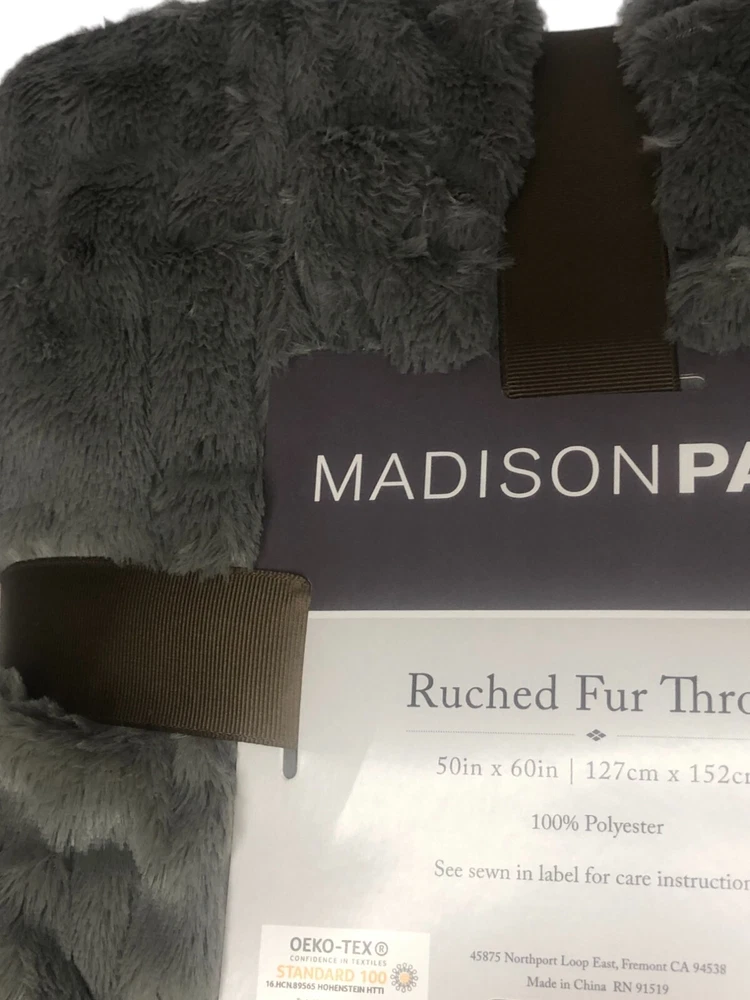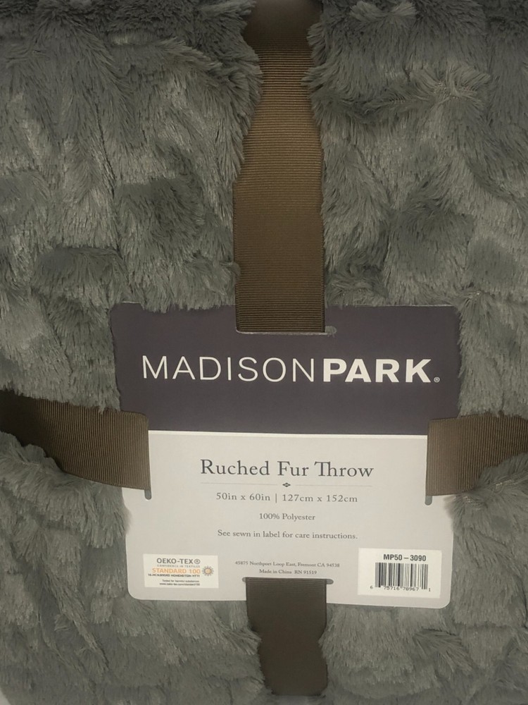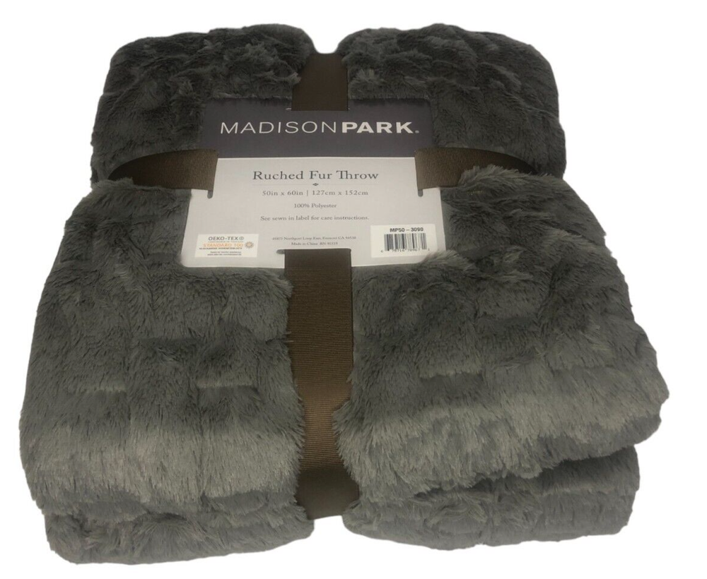 Madison Park GRAY Ultra Soft Ruched Faux Fur Throw Blanket New with Tags! FEATURES 50" x 60" Ruched design Ultra soft faux mink reverse Fluffy and luxurious Coordinating Madison Park ruched faux fur euro throw pillow sold separately CONSTRUCTION & CARE Polyester Machine wash Imported Actual item Photos. Don't hesitate to contact us before purchasing if you have questions about the item's condition and shipping cost. If you receive an item with a noticeable flaw not shown in the photos, please contact us before leaving feedback. We strive to describe all items thoroughly and accurately. Please ask any questions you have before offering or buying. We will do our best to return your messages within 24 hours. Happy Shopping!