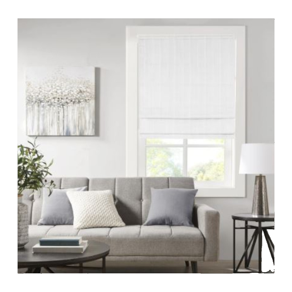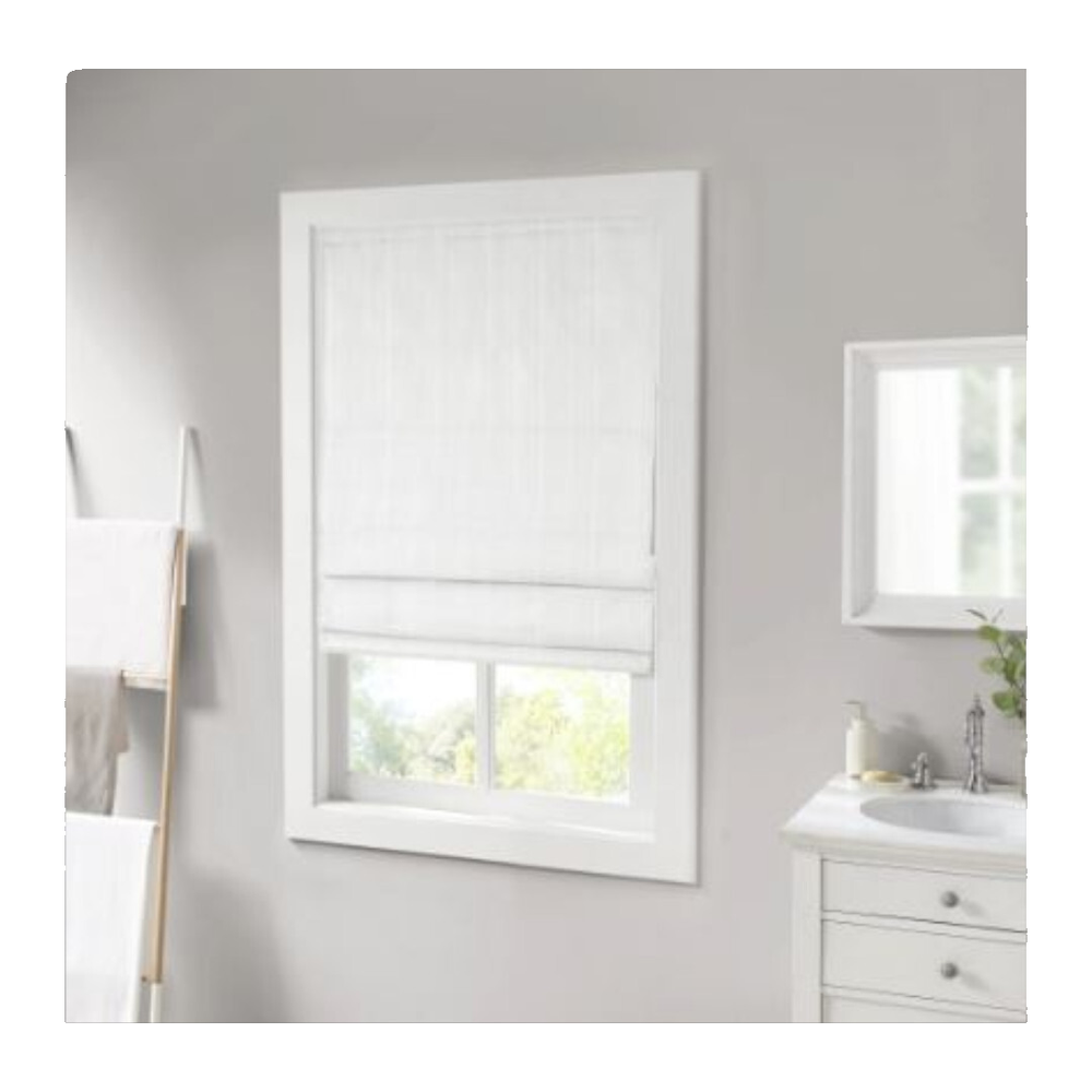 The Madison Park Galen Basket Weave Room Darkening Roman Shade offers a simple and convenient update to your home decor. This white roman shade features a basket weave texture base fabric that creates a natural look and feel. A thermal foam backing on the reverse provides energy efficiency and enhanced privacy. The cordless retraction mechanism makes it easy to open and close the window shade throughout the day, while the detachable fabric face allows for easier assembly and cleaning by lightly shaking or dusting. Though detachable from the hook and loop fastener, the top face fabric is NOT fully removable. Ready to install right out of the packaging, this roman shade can be hung inside or above the window pane allowing you to find the perfect fit for your home decor. Each shade is also OEKO-TEX certified, meaning it does not contain any harmful substances or chemicals to ensure quality comfort and wellness. Shade measures 64-inches in length and comes in 8 width options to suit multiple standard window sizes. Assembly is required.. Features Foamback thermal technology reverse for room darkening, energy efficient, and added privacy; The cordless retraction mechanism makes it easy to open and close; Weighted hem to keep shade more secure and in place; Top face fabric is detachable, but not fully removable; The Roman shade is true to size with no deductions; Outside mount - please choose size with at least 2" added onto your actual window width for maximum coverage, minimum of 3" above window required; Material/Fabrication: Face: 100% Polyester; Flocking: 100% Rayon; Care Instruction: Spot cleaning by dusting or detach face fabric to lightly shake. Top face fabric is detachable, but not fully removable.; Specifications Pattern Name: Galen; Primary Color: White; Primary Life Style: Casual; 1 Roman Shade: 23"W x 64"L; Slat Depth - Front to back: 1.5"; Recommended Mounting Depth: 3"; Head Rail: 23"W x 1.5"D x 2.5"H; Product Height: 0.13"; Product Width: 23"; Product Length: 64"; Weight: 3.05 lbs