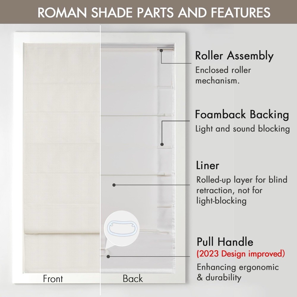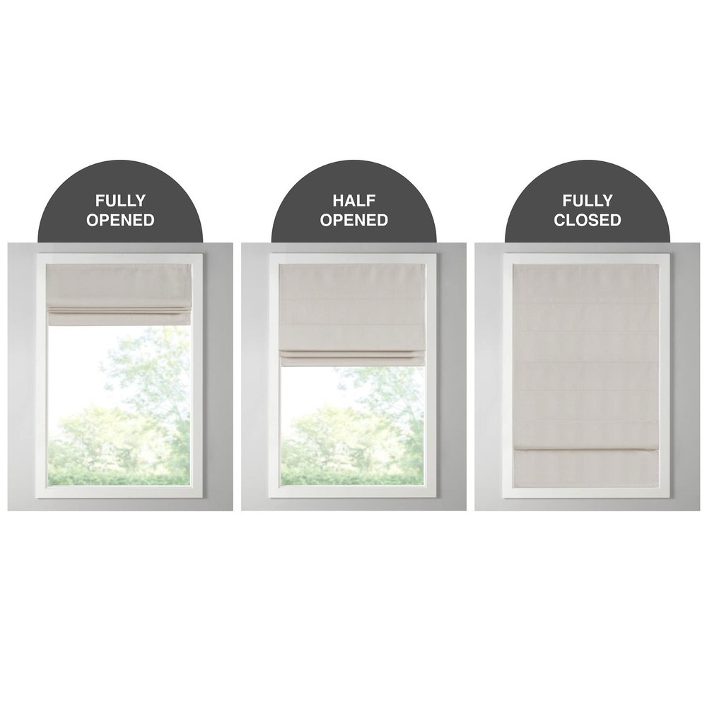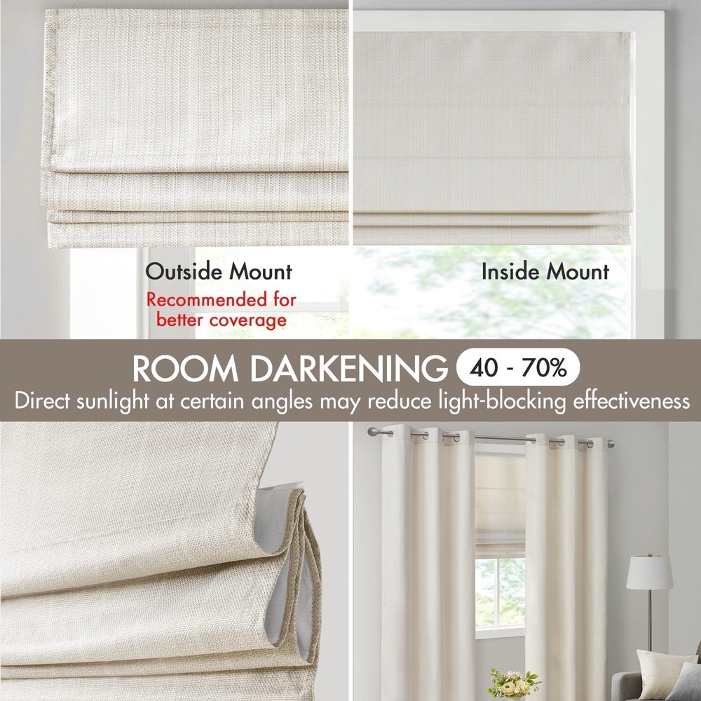 The Madison Park Galen Cordless Roman Shade in Basketweave Ivory is a modern and stylish window treatment that provides privacy and light control. Made of fabric, this Roman shade features a solid pattern and is designed for inside mounting. With a cordless operation, it is easy to use and maintain. Ideal for any room, this shade is perfect for those looking for a contemporary and versatile window treatment option.