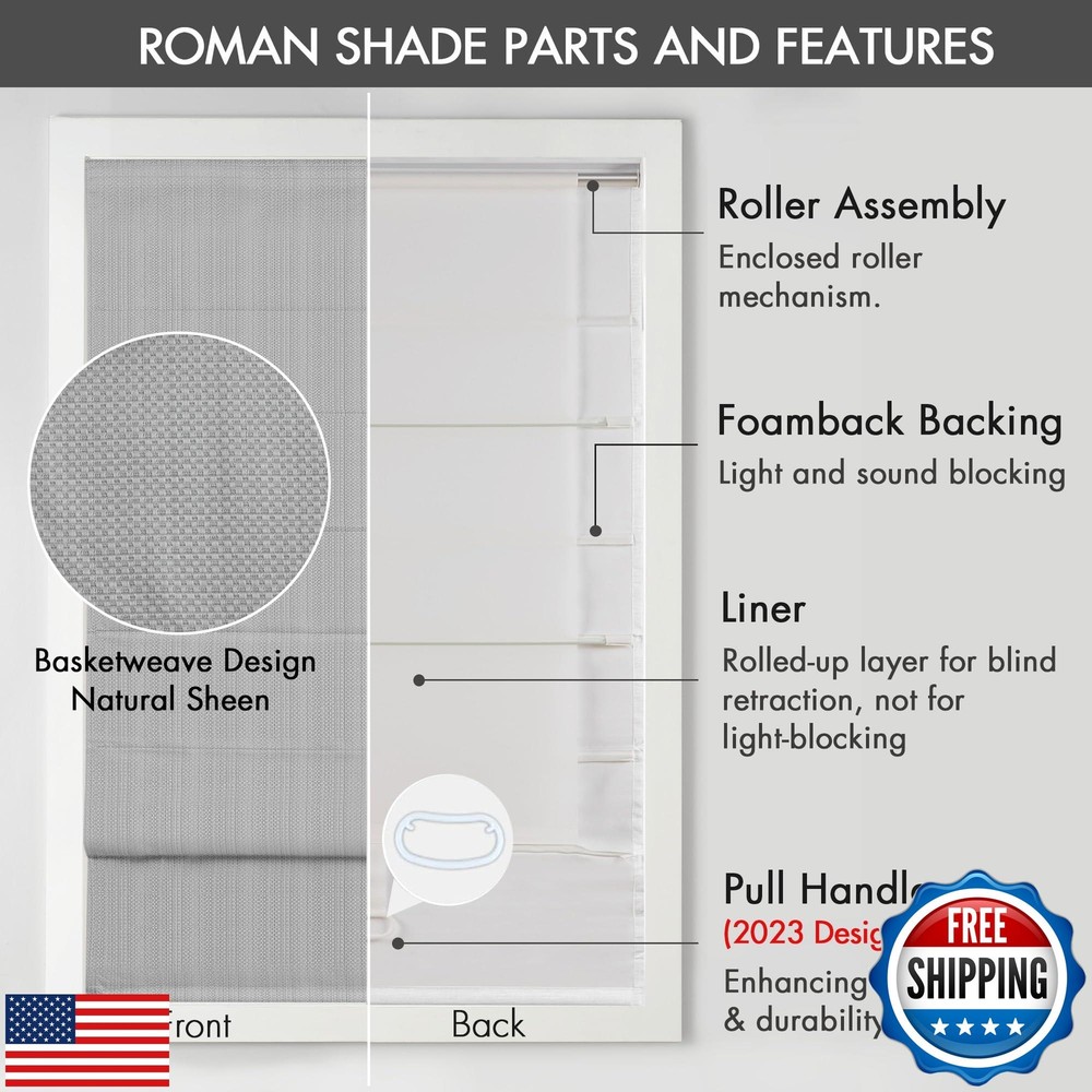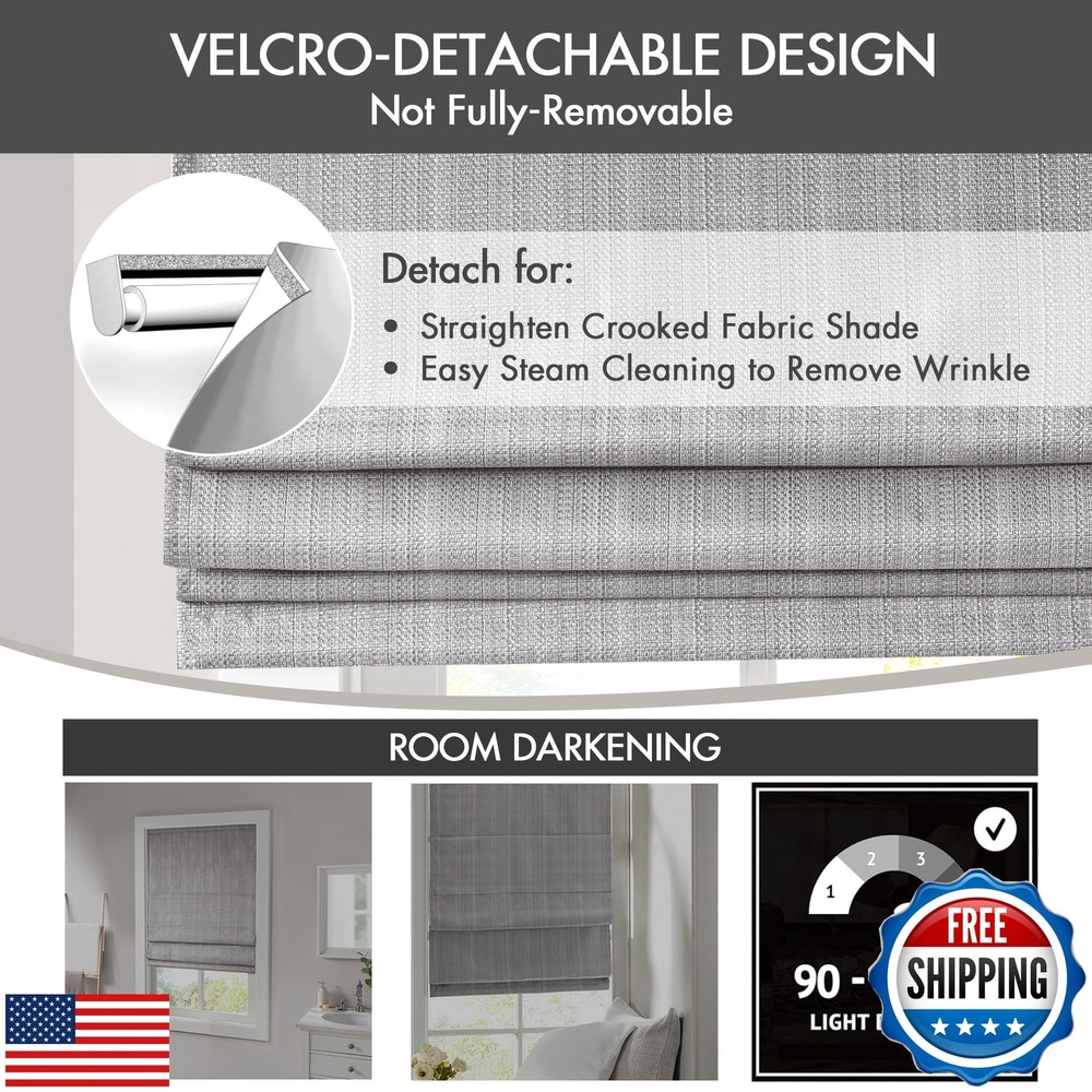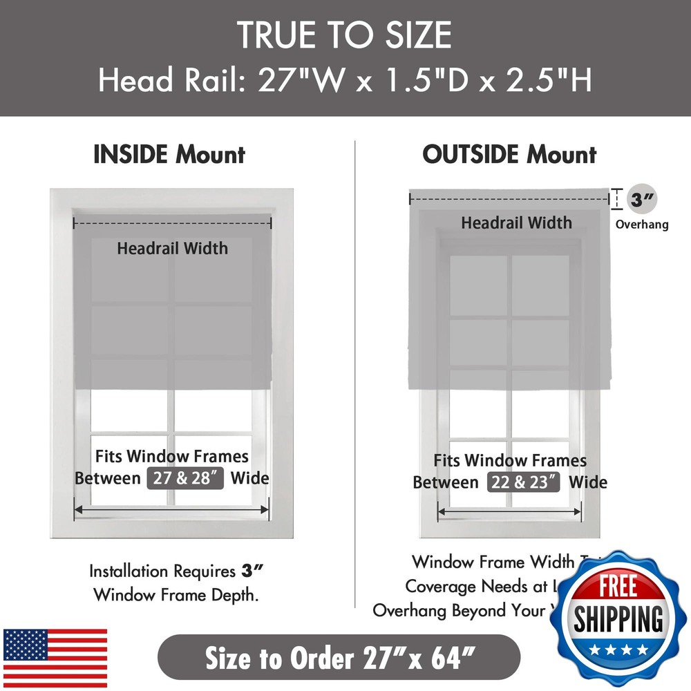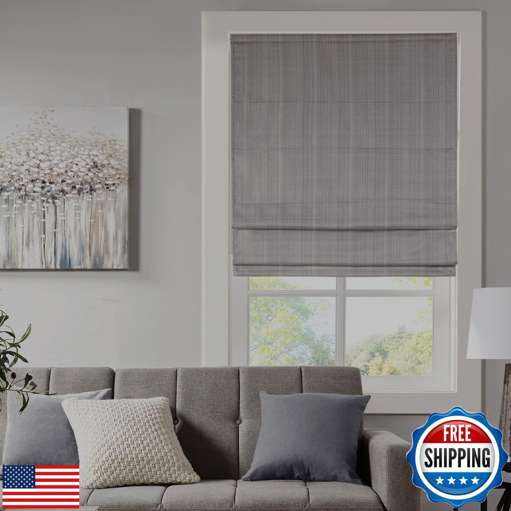Madison Park Galen Cordless Roman Shades - Fabric Privacy Single Panel Total Blackout, Energy Efficient, Thermal Insulated Window Blind Treatment, for Bedroom, Living Room Decor, 27" W x 64" L, Grey Features True to size - Refer to our sizing guide image for your perfect fit. SIZE: 27"W x 64"L. Inside mount requires shade 0.5" shorter in width, while outside mount requires shade 3" wider than your window size Our Madison Park Galen basketweave Total Blackout Cordless Roman Shade offers a modern and convenient update to your home décor. Current shipment will include new and improved bracket and puller design that enhances both the longevity of the product and its ease of use A thermal foambacking on the reverse impedes 90 - 100% light and provides energy efficiency and a total blackout effect. Lightweight design for installation ease. Complete your window decor with matching window curtain (sold separately) The cordless retraction mechanism makes it easy to open and close with weighted hem to keep it in place. Oeko-Tex Certified, our product adheres to high-quality standards, ensuring it is free from any harmful substances or chemicals CARE: The top face fabric is velcro-detachable but not fully removable. Detach the top layer to shake off dust and straighten as needed. For wrinkles, gently steam on a LOW setting. Detach the fabric before steaming to avoid touching the liner Shipping Free & Fast Shipping: We offer free shipping to most of the USA with a normal delivery time of 3-7 days. However, due to the current situation, additional delivery time (up to 3 weeks) may be required for some items. Alternative Carriers: We may use alternative carriers (e.g., USPS, FedEx, UPS) to ensure your package arrives safely and on time. Due to the use of multiple carriers, we are unable to provide a tracking number automatically. Handling Time: Orders are processed and shipped within 1-2 business days of receiving cleared payment. Shipping Restrictions: Shipping to Alaska, Hawaii, Puerto Rico, Guam, and other US territories may incur shipping charges or delivery restrictions. Please contact us before ordering, or your order can be refunded/cancelled. State Restrictions: Certain items may not be shipped to California due to state regulations. Contact for Tracking Updates: If you require tracking updates or have any concerns about the delivery of your order, please feel free to contact us, and we will be happy to assist you. Return Policy 30-Day Hassle-Free Returns: If you are not completely satisfied with your purchase, you can return the item for free within 30 days of receiving it for a full refund or exchange. Easy Return Process: Contact us, and we will provide you with a prepaid return shipping label and detailed instructions. No Restocking Fee: There are no restocking fees for returns. However, the buyer is responsible for return shipping costs if the return is not due to a seller's error. Refund Processing: Refunds will be processed within 1 business day of receiving the returned item in its original condition. Payment We accept all major credit cards, PayPal, and Apple Pay for your convenience. Your payment information is secure and encrypted to ensure a safe and seamless transaction. Please complete your payment within 3 days of purchase to avoid any delays in shipping. Feedback Your feedback is extremely important to us. We strive to provide the best products and customer service possible. If you are satisfied with your purchase, please take a moment to leave us a positive review. If you have any concerns or issues with your order, please contact us before leaving negative feedback. We are committed to resolving any problems and ensuring your satisfaction. Contact Us If you have any questions or concerns, please feel free to reach out to our customer support team. You can contact us through the eBay messaging system. We are available Monday to Friday, 9:00 am to 5:00 pm EST, and we will do our best to respond to your inquiry within 24 hours. Thank you for supporting our small family business!