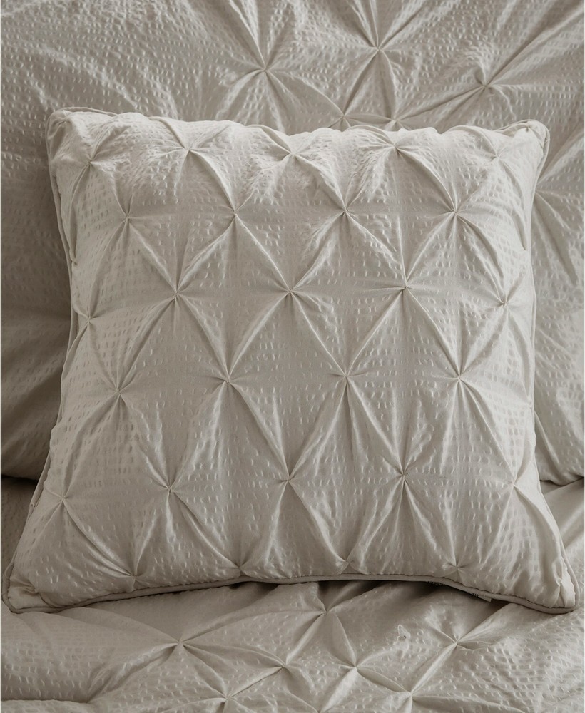 Color: Grey Size: King / California King The Madison Park Giselle 4 Piece Tufted Seersucker Comforter Set offers a soft shabby chic update for your bedroom. Soft, comfortable, and showcasing a shabby chic aesthetic, this tufted seersucker comforter set is machine washable for easy care. Dimensions: Comforter: 104" x 92", 2 King Shams: 20" x 36", Decorative Pillow: 16" x 16" Set includes: Comforter, 2 King Shams, Decorative Pillow Hypoallergenic filling in the comforter and decorative pillow provides exceptional warmth and comfort. Comforter/shams: polyester seersucker, Comforter with polyester filling; Decorative pillow: polyester seersucker cover with polyester filling Machine washable Imported