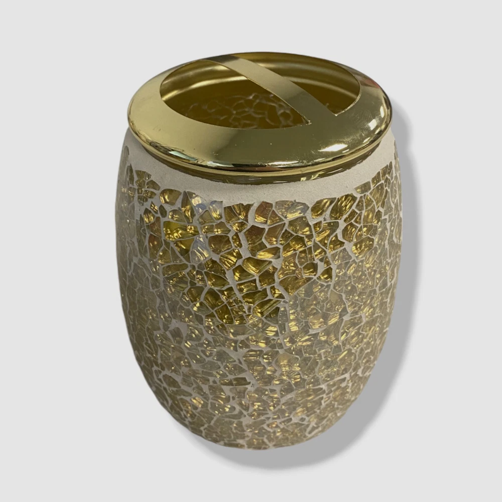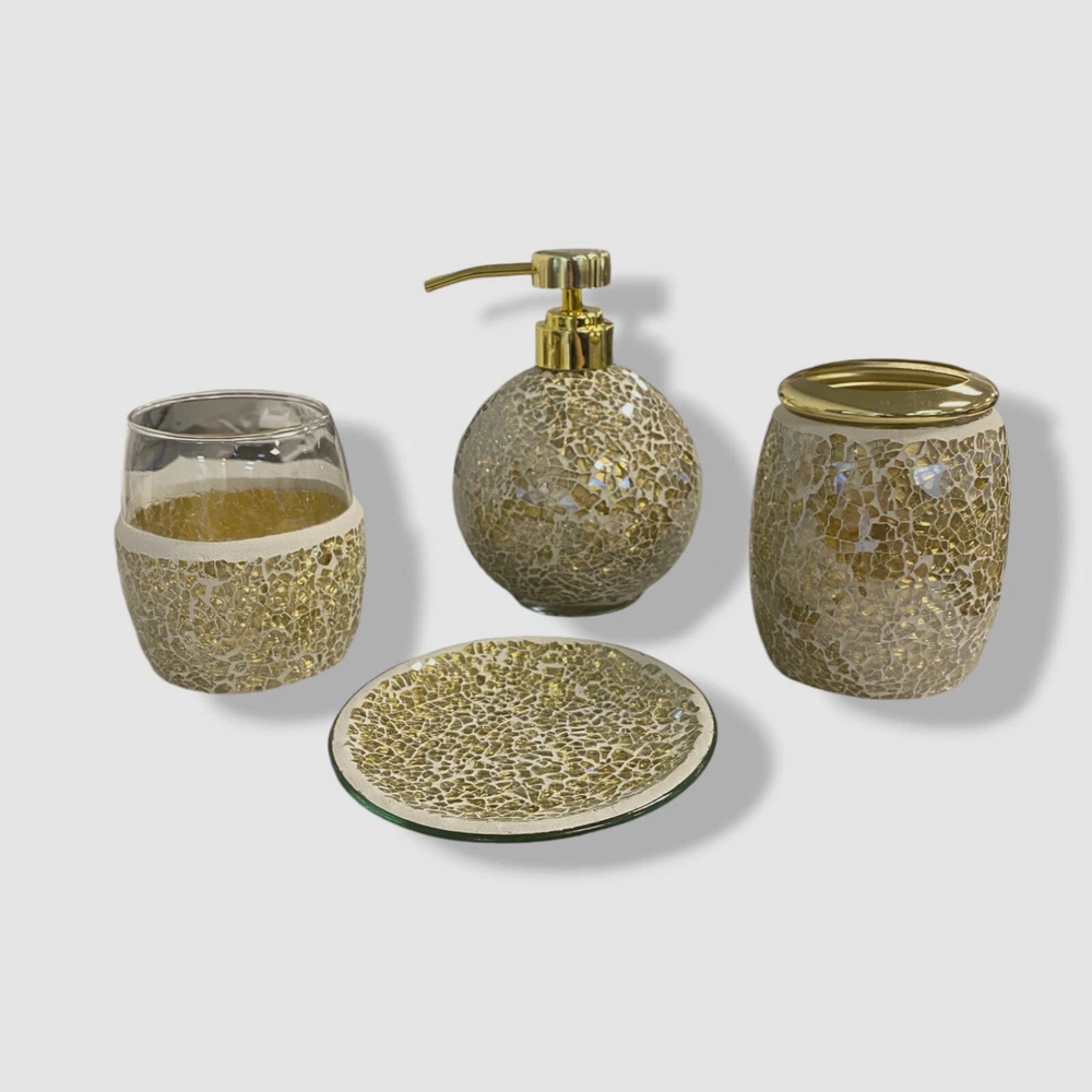 Madison Park Golden Glass Mosaic 4-Piece Bath Accessory Set Description Crackle glass mosaic 4-piece set INCLUDED: Soap Dispenser: 4.33"W x 4.33"L x 6.5"H Toothbrush Holder: 3.54"W x 3.54"L x 4.13"H Tumbler: 3.54"W x 3.54"L x 3.86"H Ring Tray: 4.92"W x 4.92"L x 0.59"H Mosaic glass Wipe clean Imported About Us We sell only 100% authentic clothing from new with tags to gently used. We have a 100% authentic or money back guarantee on every item we sell. Items are listed daily so make sure to put us on your favorite! We have been in business for over 10 years selling tens of thousands of designer items. We strive to meet your designer needs at a quality price! Payment Shipping Returns Payment accepted via paypal, credit/debit card. Shipping is usually within 24 hours of purchase (M-F). Super fast service. Tracked delivery. 100% satisfaction guaranteed. Please review our eBay return policy for more details.