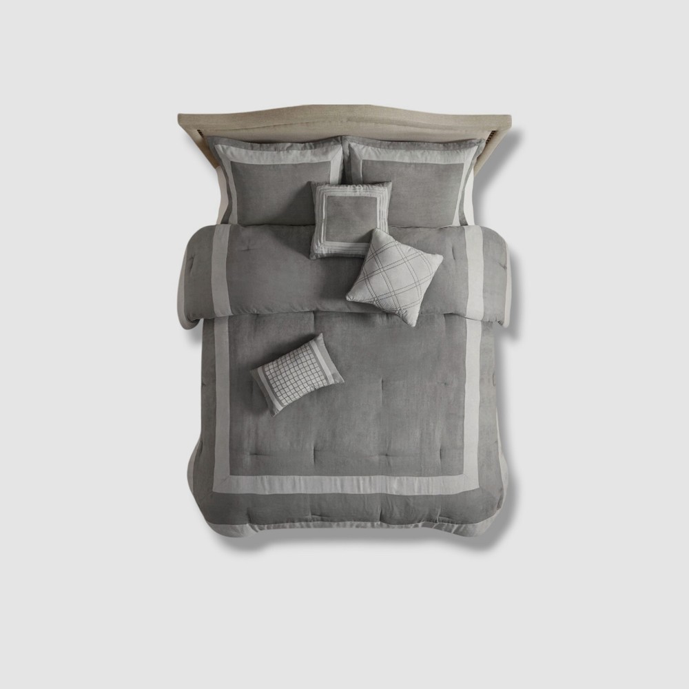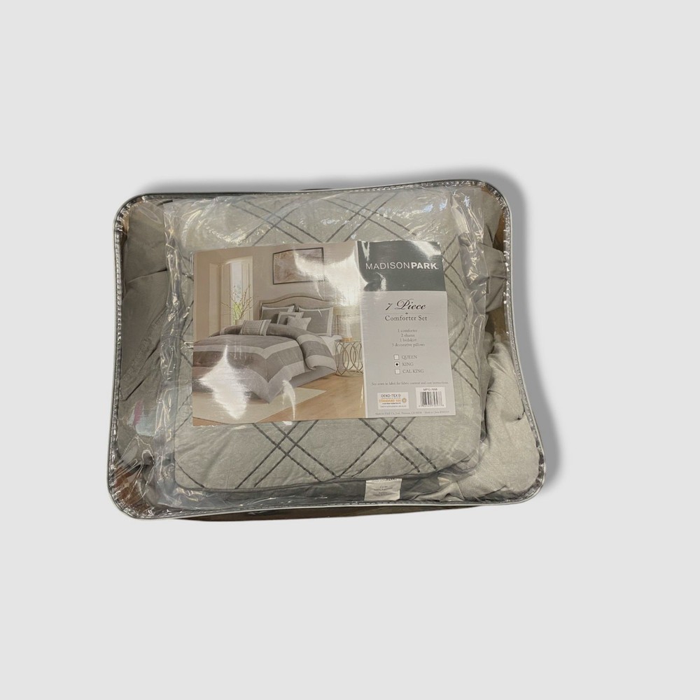 Madison Park Gray 7pc King Noah Microsuede Comforter Set Description Product size- king Comforter dimensions- 104" W x 92" L King sham dimensions- 20" W x 36" L Bed skirt dimensions- 78" W x 80" L + 15" D Decorative pillow 1 dimensions- 16" W x 16" L Decorative pillow 2 dimensions- 12" W x 18" L Decorative pillow 3 dimensions- 18" W x 18" L Product weight- 12.11 lbs Set includes- 1 comforter, 2 king shams, bed skirt, 3 decorative pillows Transitional style Relatively unlikely to cause allergic reaction polyester filling in the comforter and pillows 15" drop bedskirt in solid color To fluff- tumble dry on low heat for 15-20 minutes, to clean- machine wash cold on gentle cycle, tumble dry on low heat, do not bleach, spot clean pillow Comforter, Sham, Bedskirt, Pillow- Polyester, Comforter, Pillow (Fill)- Polyester Machine Washable Imported About Us We sell only 100% authentic clothing from new with tags to gently used. We have a 100% authentic or money back guarantee on every item we sell. Items are listed daily so make sure to put us on your favorite! We have been in business for over 10 years selling tens of thousands of designer items. We strive to meet your designer needs at a quality price! Payment Shipping Returns Payment accepted via paypal, credit/debit card. Shipping is usually within 24 hours of purchase (M-F). Super fast service. Tracked delivery. 100% satisfaction guaranteed. Please review our eBay return policy for more details.