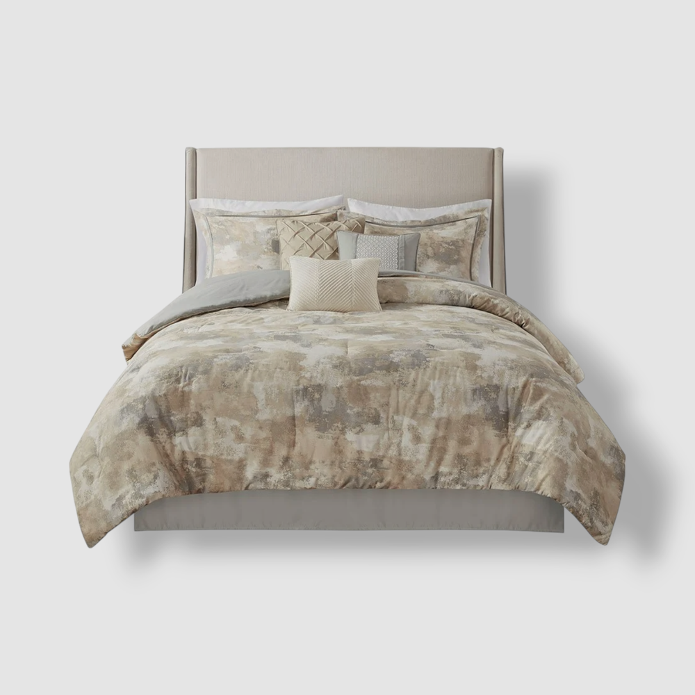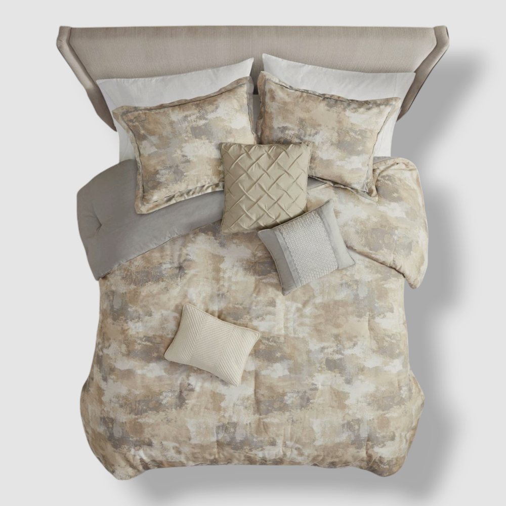Madison Park Gray Beacon 7-Pc. Comforter Set, King Size Description Bed size- king Product dimension- comforter- 104" L x 92" W, 2 king shams- 20" L x 36" W + 2" W, bed skirt- 78" L x 80" W + 15" drop, 3 decorative pillows- 18" L x 18" W, 12" L x 18" W and 16" L x 16" W Set includes- 1 comforter, 2 king shams, 1 bed skirt, 3 decorative pillows Free from allergies polyester filling in the comforter and decorative pillow Asian American & Pacific Islander Owned, Woman Owned Comforter, Sham- Cotton and Polyester with Polyester Filling, Bed skirt- Polyester and Cotton Drop, Pillow- Polyester and Cotton Cover with Polyester Filling Machine Washable Imported About Us We sell only 100% authentic clothing from new with tags to gently used. We have a 100% authentic or money back guarantee on every item we sell. Items are listed daily so make sure to put us on your favorite! We have been in business for over 10 years selling tens of thousands of designer items. We strive to meet your designer needs at a quality price! Payment Shipping Returns Payment accepted via paypal, credit/debit card. Shipping is usually within 24 hours of purchase (M-F). Super fast service. Tracked delivery. 100% satisfaction guaranteed. Please review our eBay return policy for more details.