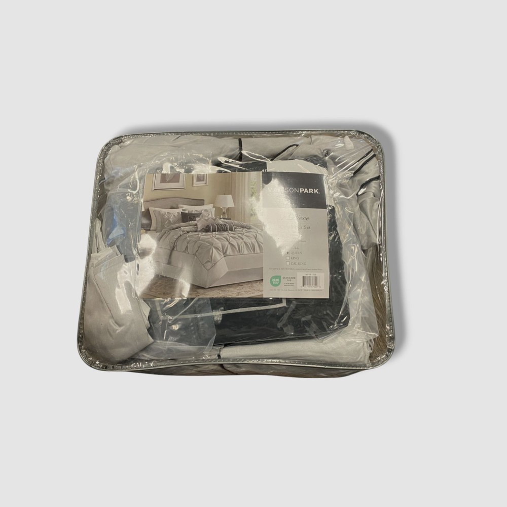 Madison Park Gray Laurel 7-pc. Comforter Set-Queen Description Set includes: comforter (90" x 90"), bed skirt (60" x 80" + 15"), two standard shams (20" x 26") and three decorative pillows (18" x 18", 12" x 18", 6.5" x 18") Pleated designs Comforter: polyester; polyester fill Sham: polyester Bed skirt: polyester Pillow: polyester cover; polyester fill Polyester Machine washable Imported About Us We sell only 100% authentic clothing from new with tags to gently used. We have a 100% authentic or money back guarantee on every item we sell. Items are listed daily so make sure to put us on your favorite! We have been in business for over 10 years selling tens of thousands of designer items. We strive to meet your designer needs at a quality price! Payment Shipping Returns Payment accepted via paypal, credit/debit card. Shipping is usually within 24 hours of purchase (M-F). Super fast service. Tracked delivery. 100% satisfaction guaranteed. Please review our eBay return policy for more details.