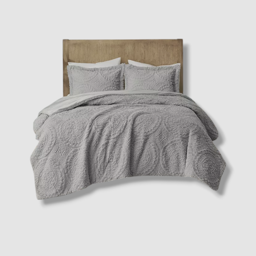 Madison Park Gray Medallion Faux Fur 3-Pc. Comforter Set, King/Cal King Description Dimensions: 1 Comforter: 104"W x 90"L, 2 King Shams: 20"W x 36"L + 2"D Includes: 1 Comforter, 2 King Shams Faux fur comforter features an embroidered medallion pattern Reverse is a soft faux mink Hypoallergenic fill for comfort and wellness Machine wash separately in large capacity washer with cold water on gentle cycle, do not use fabric softener or bleach Tumble dry separately in large capacity dryer on low heat Minor shedding is expected with faux fur material and should subside after 3-4 washes For best result before first use, put the product in dry with setting "no heat" of "air fluff" to remove loose fibers and reduce shedding Comforter/Sham -100% Polyester 240GSM Embroidered Long Fur On Face, 100% Polyester Solid 180GSM Mink On Back, Comforter Fill - 260GSM Polyester Machine Washable Imported About Us We sell only 100% authentic clothing from new with tags to gently used. We have a 100% authentic or money back guarantee on every item we sell. Items are listed daily so make sure to put us on your favorite! We have been in business for over 10 years selling tens of thousands of designer items. We strive to meet your designer needs at a quality price! Payment Shipping Returns Payment accepted via paypal, credit/debit card. Shipping is usually within 24 hours of purchase (M-F). Super fast service. Tracked delivery. 100% satisfaction guaranteed. Please review our eBay return policy for more details.