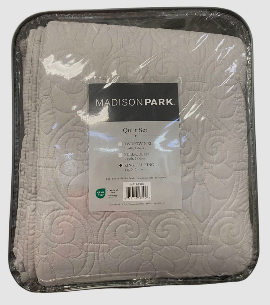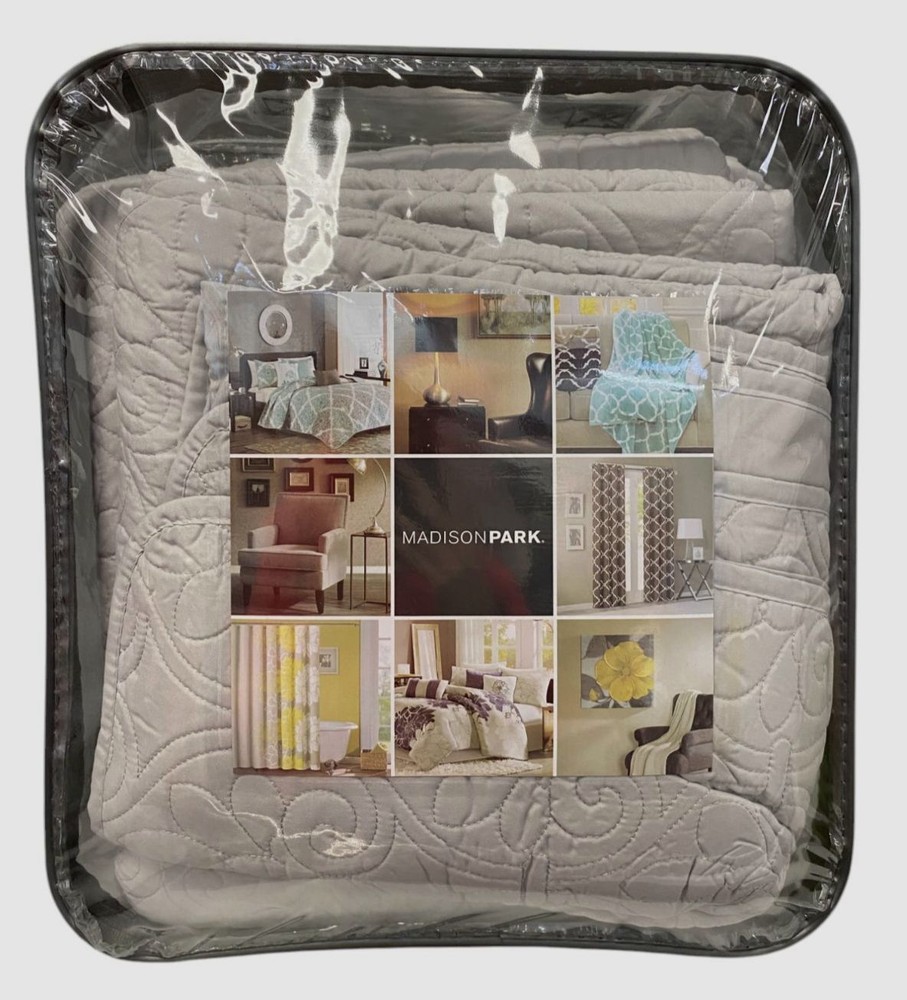 Madison Park Gray Quebec 3-Pc. Quilt Set Size| King/California King Description Dimensions: coverlet 104" x 94", king shams 20" x 36" Set includes: 1 coverlet and 2 king shams Polyester with cotton fill Machine washable Imported About Us We sell only 100% authentic clothing from new with tags to gently used. We have a 100% authentic or money back guarantee on every item we sell. Items are listed daily so make sure to put us on your favorite! We have been in business for over 10 years selling tens of thousands of designer items. We strive to meet your designer needs at a quality price! Payment Shipping Returns Payment accepted via paypal, credit/debit card. Shipping is usually within 24 hours of purchase (M-F). Super fast service. Tracked delivery. 100% satisfaction guaranteed. Please review our eBay return policy for more details.