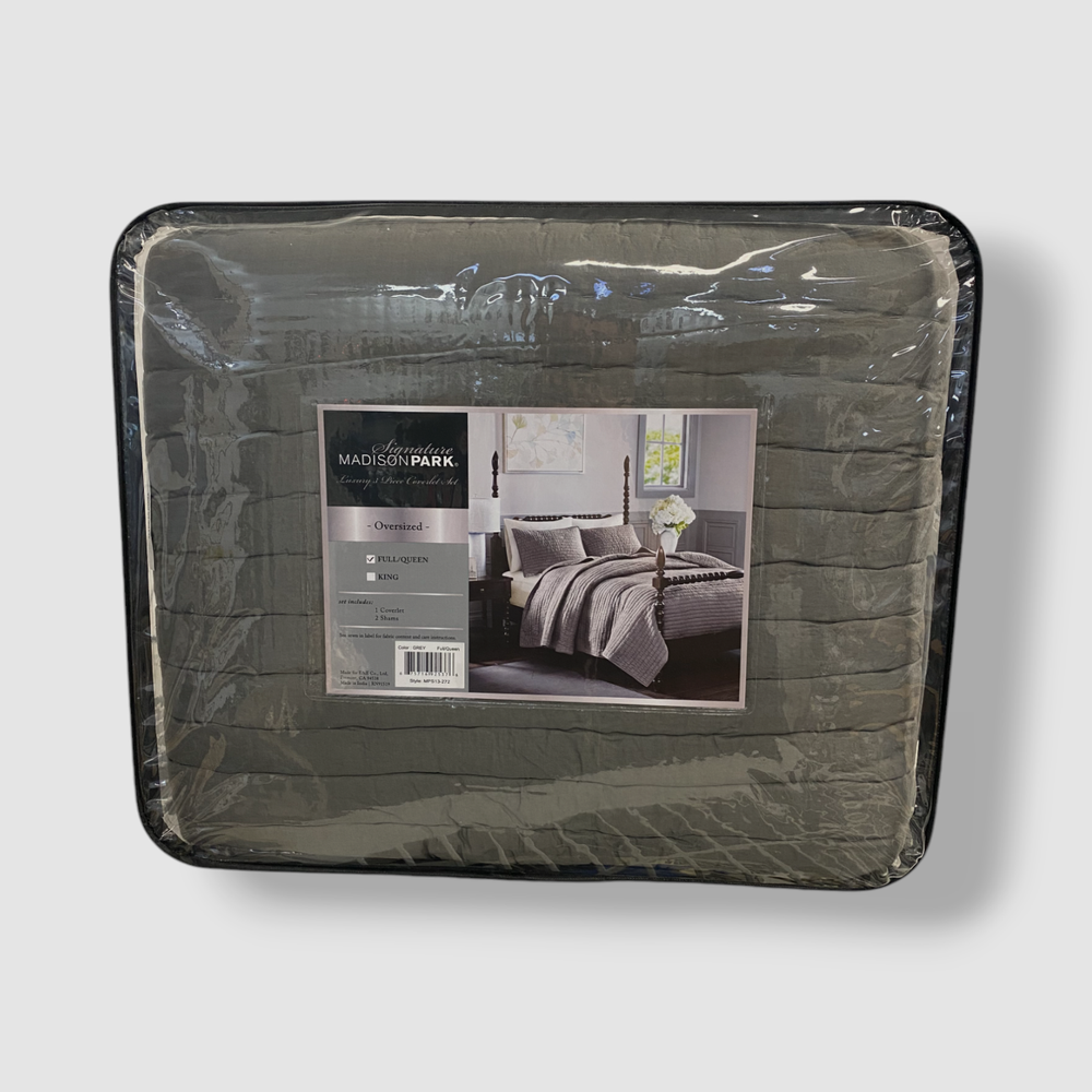 Madison Park Gray Signature Serene Hand Quilted 3-Pc. Quilt Set, Full/Queen Size Description Coverlet - 92" x 96", 2 Shams - 20" x 26" Includes - Coverlet, 2 Shams Bedding is oversized for better draping coverage in high depth mattress Fabric Pattern - Solid Coverlet/Sham - 100% Cotton Volie, Coverlet Fill - 250Gram 100% Cotton Machine Washable Imported About Us We sell only 100% authentic clothing from new with tags to gently used. We have a 100% authentic or money back guarantee on every item we sell. Items are listed daily so make sure to put us on your favorite! We have been in business for over 10 years selling tens of thousands of designer items. We strive to meet your designer needs at a quality price! Payment Shipping Returns Payment accepted via paypal, credit/debit card. Shipping is usually within 24 hours of purchase (M-F). Super fast service. Tracked delivery. 100% satisfaction guaranteed. Please review our eBay return policy for more details.