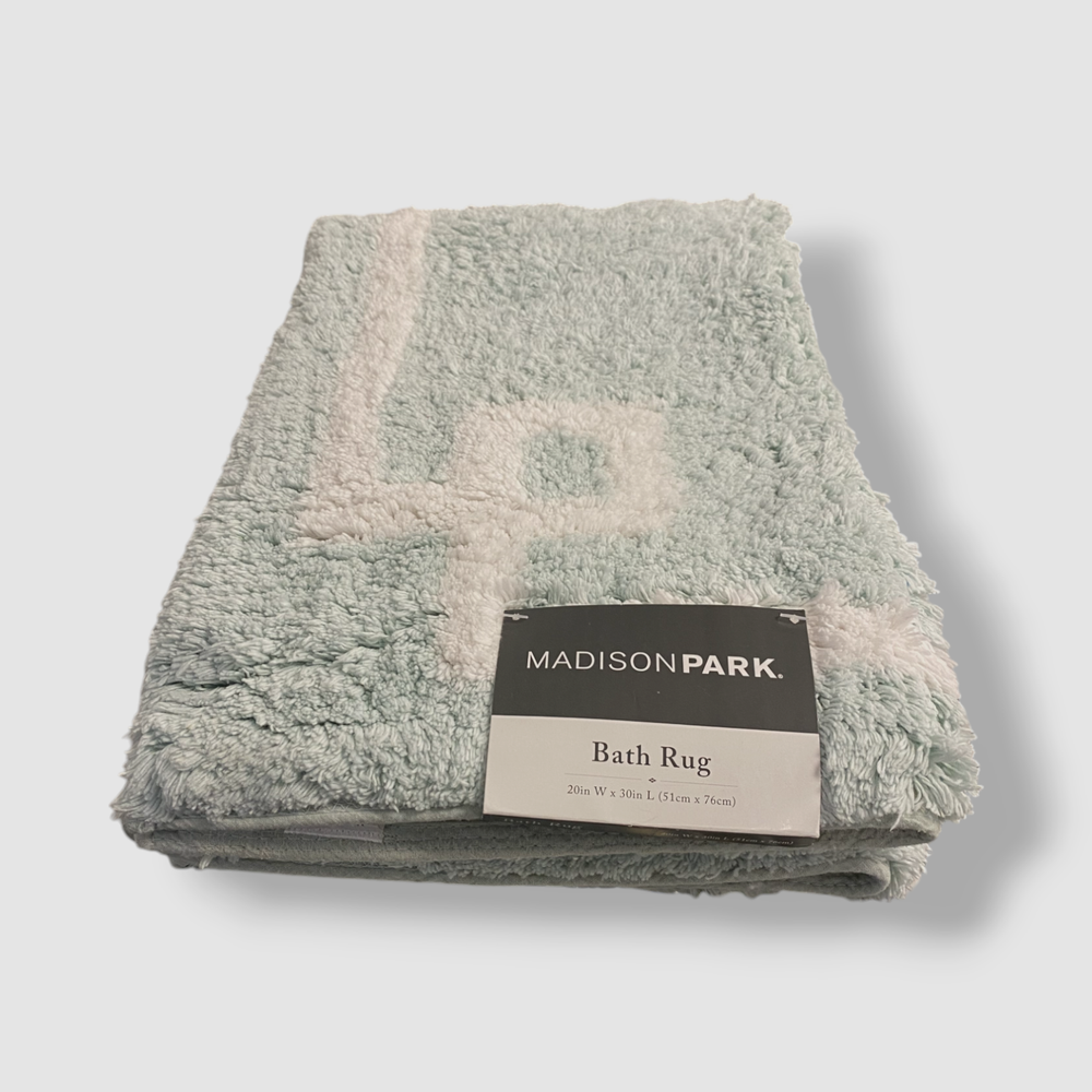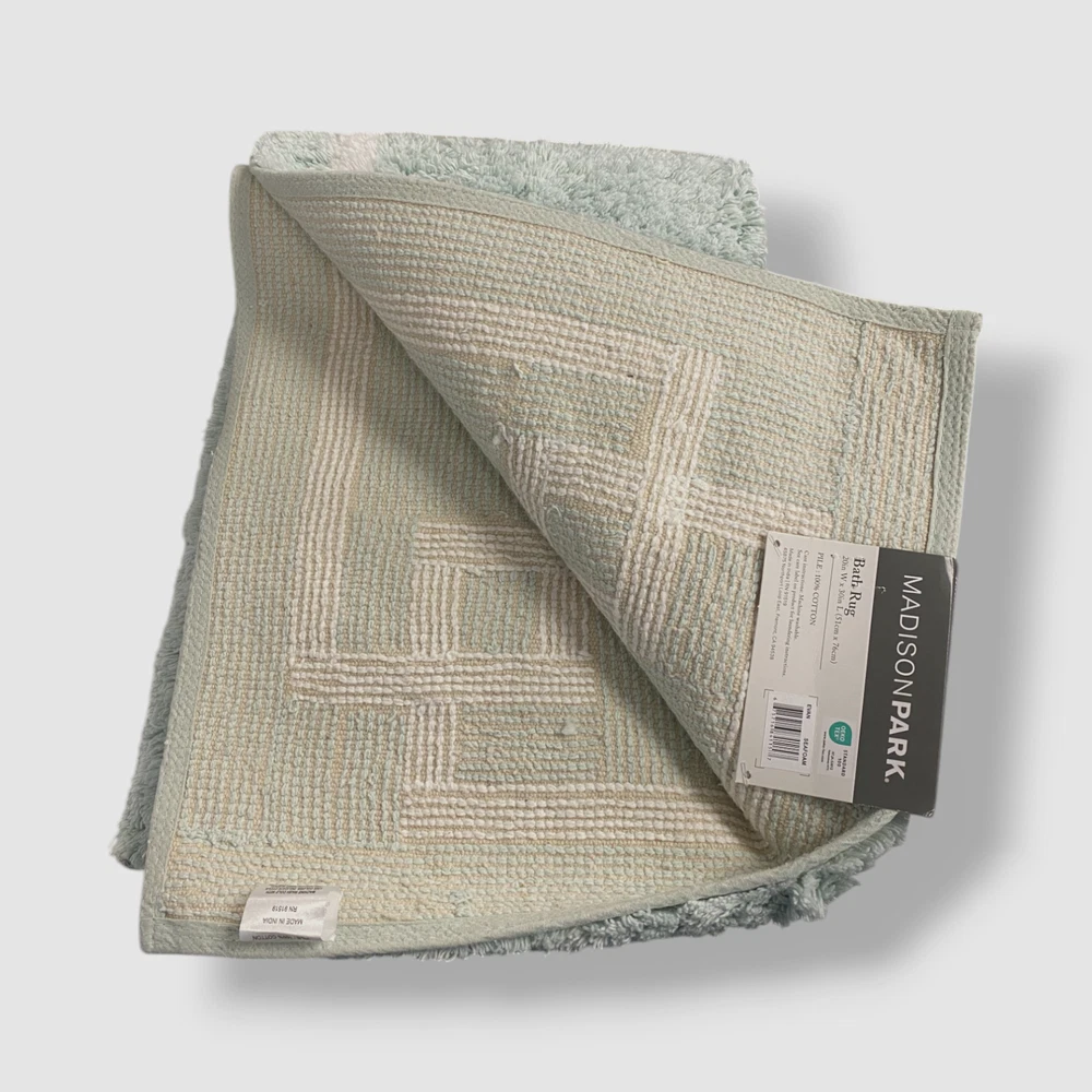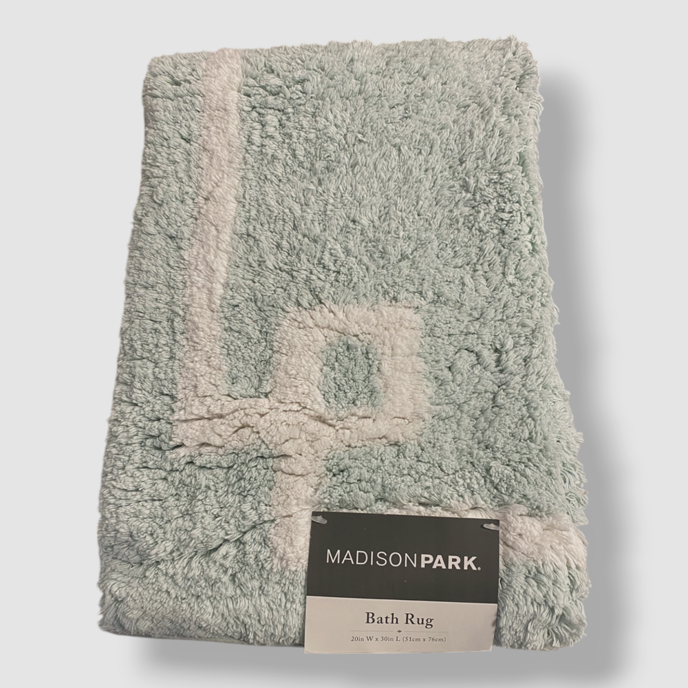 Madison Park Green Seafoam Geometric Cotton Tufted Bath Rug. Description Sold individually 20" x 30" STANDARD 100 by OEKO-TEX® certified All cotton Machine Washable Imported About Us We sell only 100% authentic clothing from new with tags to gently used. We have a 100% authentic or money back guarantee on every item we sell. Items are listed daily so make sure to put us on your favorite! We have been in business for over 10 years selling tens of thousands of designer items. We strive to meet your designer needs at a quality price! Payment Shipping Returns Payment accepted via paypal, credit/debit card. Shipping is usually within 24 hours of purchase (M-F). Super fast service. Tracked delivery. 100% satisfaction guaranteed. Please review our eBay return policy for more details.