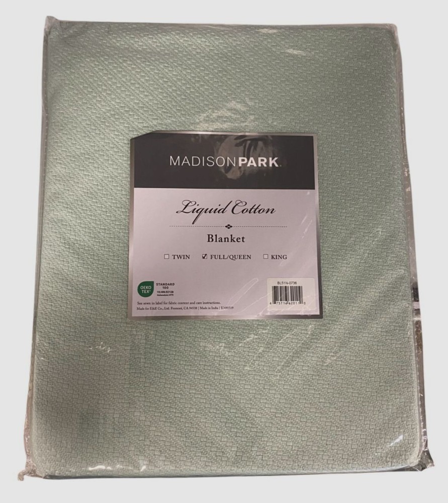 Madison Park Green Solid Liquid Lightweight Blanket Size Full/Queen Description Dimensions: 90" x 90" 100% quality cotton yarn spin and woven into smooth patterned blanket Eliminates pilling, snagging and shrinkage Durable and long lasting blanket for many years to come Use it alone or layer it on a comforter for extra warmth 100% cotton Machine washable Imported About Us We sell only 100% authentic clothing from new with tags to gently used. We have a 100% authentic or money back guarantee on every item we sell. Items are listed daily so make sure to put us on your favorite! We have been in business for over 10 years selling tens of thousands of designer items. We strive to meet your designer needs at a quality price! Payment Shipping Returns Payment accepted via paypal, credit/debit card. Shipping is usually within 24 hours of purchase (M-F). Super fast service. Tracked delivery. 100% satisfaction guaranteed. Please review our eBay return policy for more details.