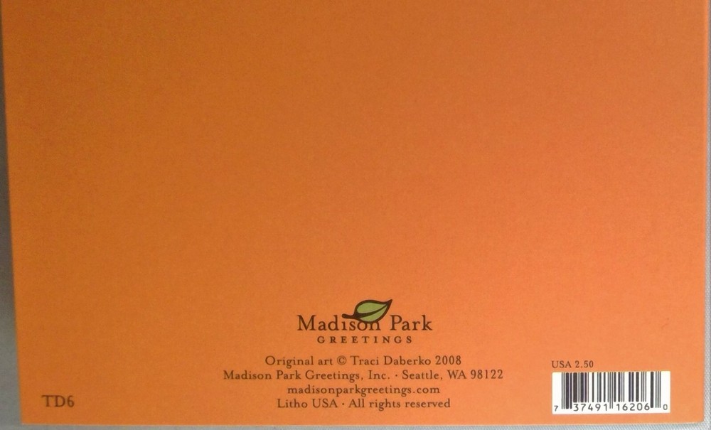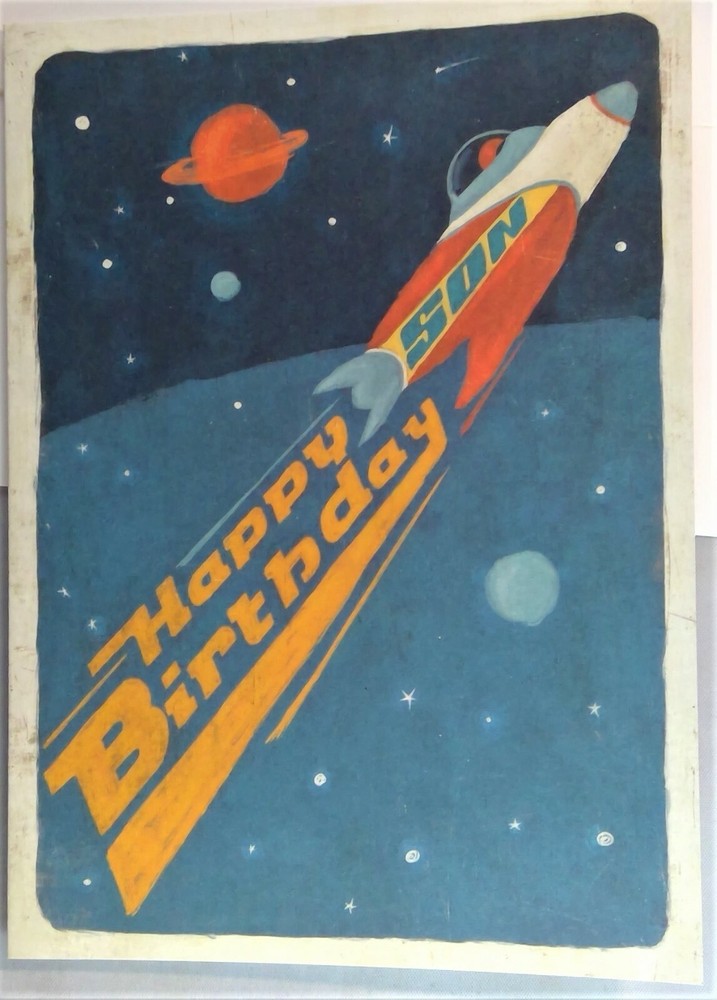 Madison Park Greetings card, and envelope, 'Happy Birthday Son', and a rocket ship on the exterior. 'Have a SUPER GALACTIC Year', on the interior. Original art by Traci Daberko, 2008. Please email questions. Thank you for your interest. We do combine shipping. Have a great day!
