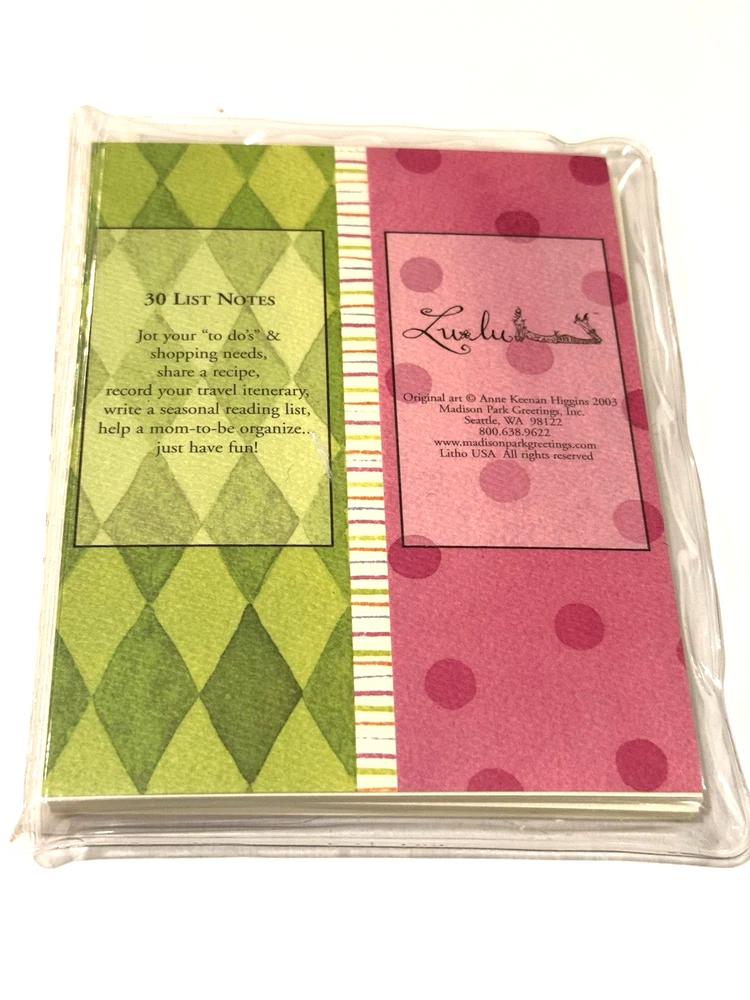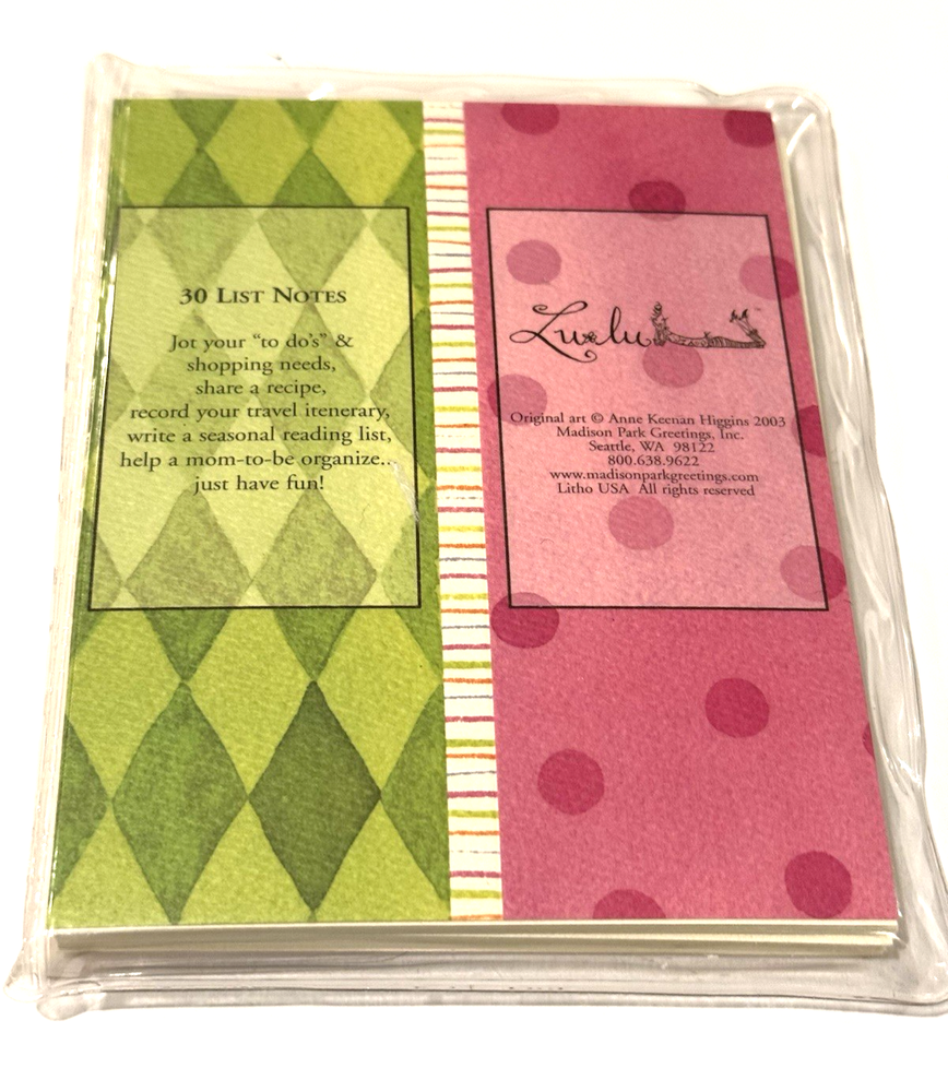 Madison Park Greetings Lulu List Notes To Do Shopping Recipe Kitchen Lined 30 CT Madison Park Greetings Lulu List Notes To Do / Shopping List / Recipes / & more! Kitchen Theme Original Art by Anne Keenan Higgins Lined 30 Count (in Package) Approximately 5.5" Tall / 4.25"-4.5" Wide Made in USA Open package. Unused. 30 count. Smoke free and pet free home. Please see pictures to assess condition and use the enlargement (zoom) feature for added detail. Thank you for your interest. Enjoy!