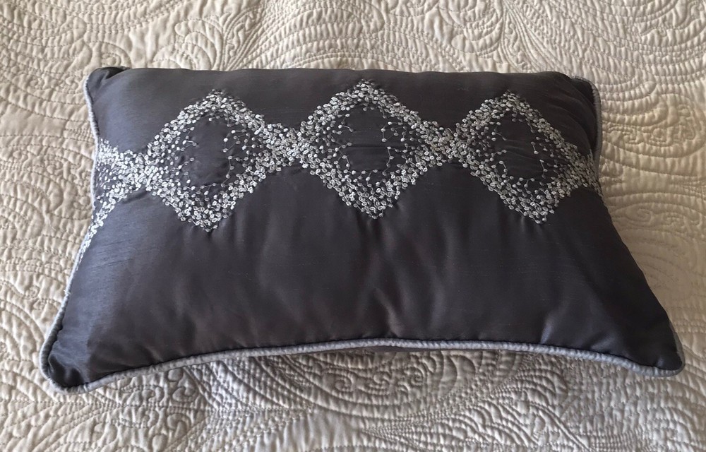 Up for auction is this smaller size accent decorator pillow. 11” x 17”. In good, used condition. No damage. An upraised , stitched pattern makes this pillow a real beauty. The Madison Park tag has been cut off, as you can see in the last picture. Thanks for looking and your bid. Note: Please be advised that we ship most economical. Not necessarily per the shipping policy.