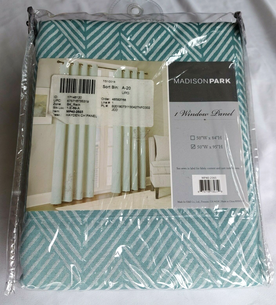 Madison Park Grommet Hayden Jacquard Chevron Single Panel 50x95 in. Seafoam Blue...