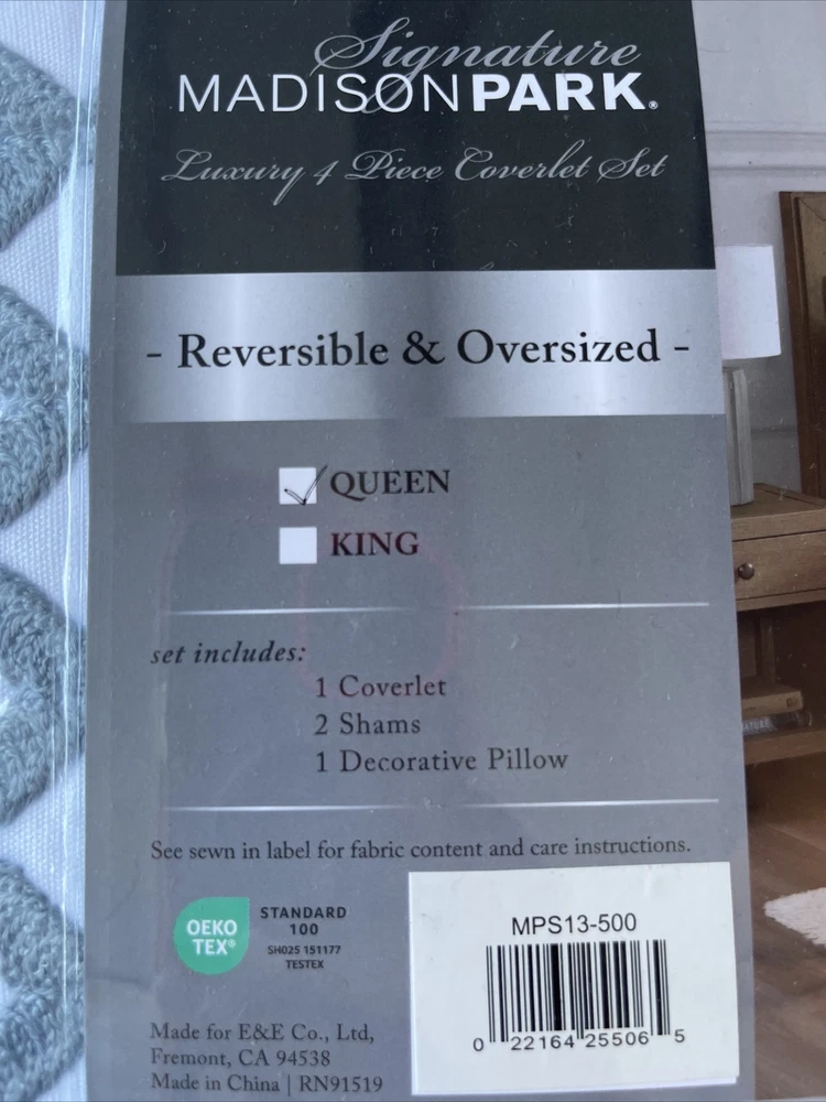 Add a touch of elegance to your bedroom with the Madison Park Harmony 4 Piece Oversized Reversible Matelasse Coverlet Set in a beautiful blue botanical pattern. This set includes a queen-sized quilt and pillow shams, all made with a soft and cozy blend of polyester and cotton materials. The coverlet set is hypoallergenic and STANDARD 100 by OEKO-TEX certified, making it a perfect choice for those with allergies. The contemporary style and all-season theme of this coverlet set make it a great addition to any bedroom. Machine wash care instructions make it easy to maintain. This Madison Park Signature set is perfect for teens, adults, and kids alike. Get ready to transform your bedroom into a luxurious haven with this stunning coverlet set.