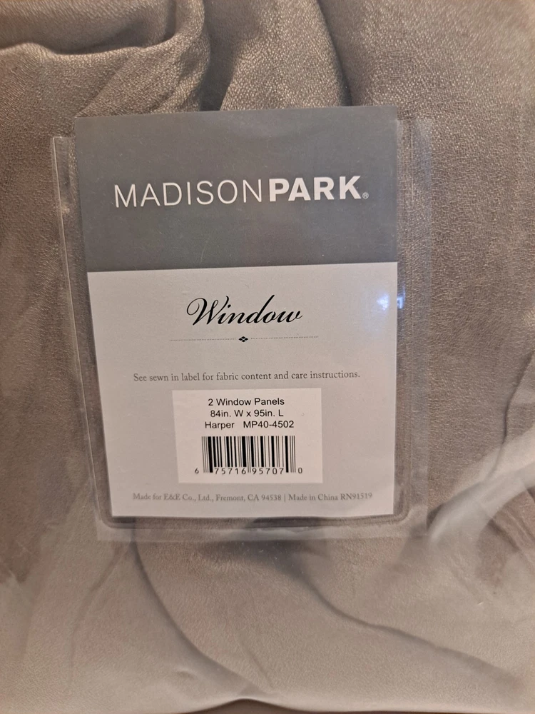 Madison Park window panels. Set of 2. "Harper" sheer with hidden rod holders. 84Wx95 inches in length. MP40-4502. Please look at all pictures, as they are a part of my description. Please let me know if you need any more information or pictures. Please ask any questions BEFORE purchase. NO REFUNDS! Be sure to check out my store for other great trinkets and treasures. I add new items almost daily. Have a blessed day!